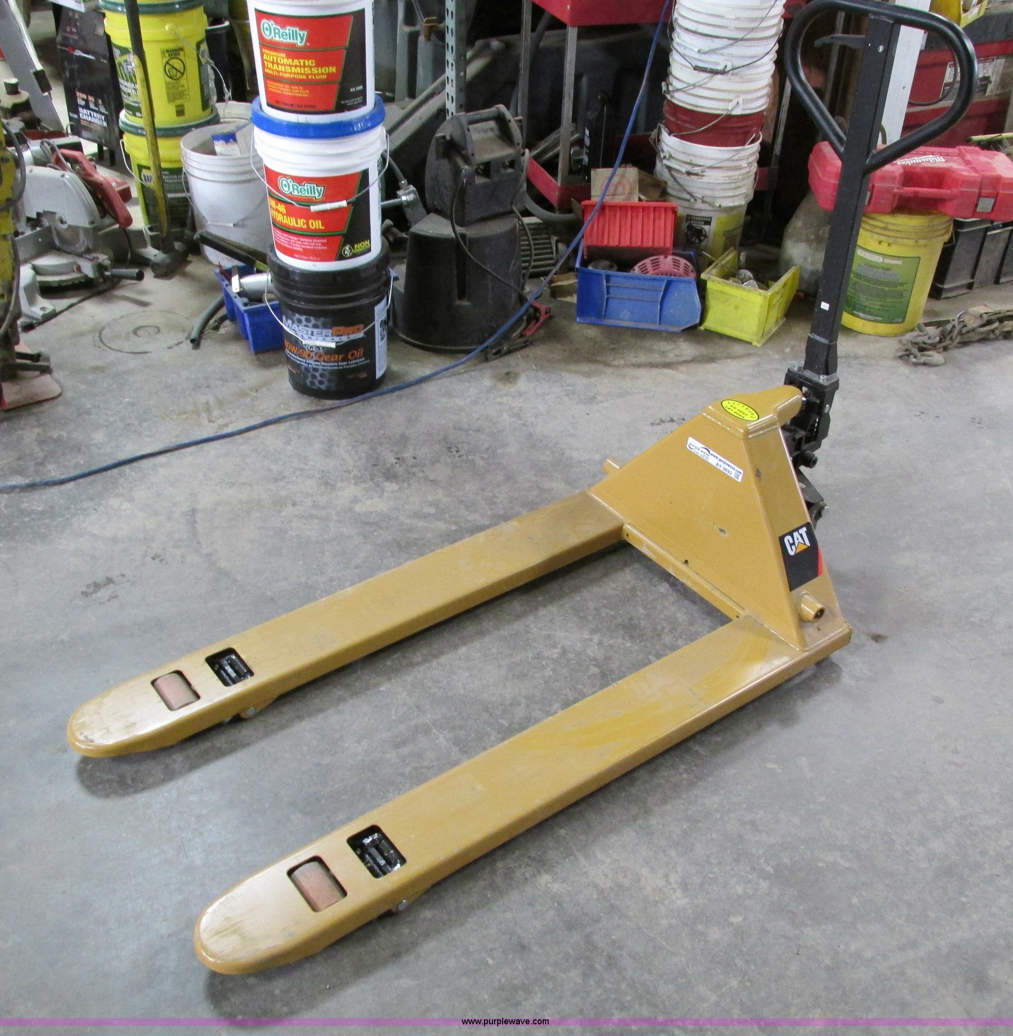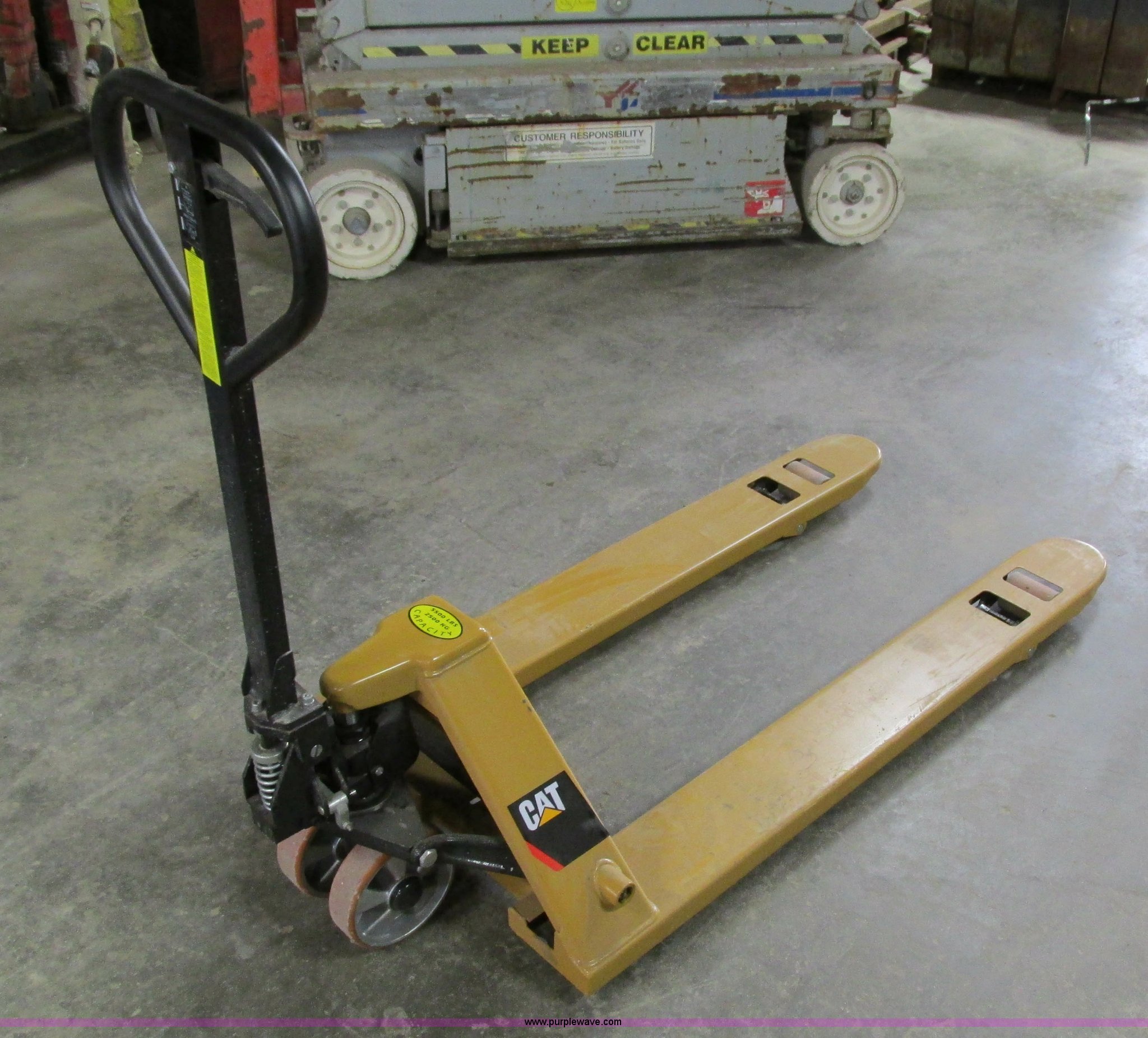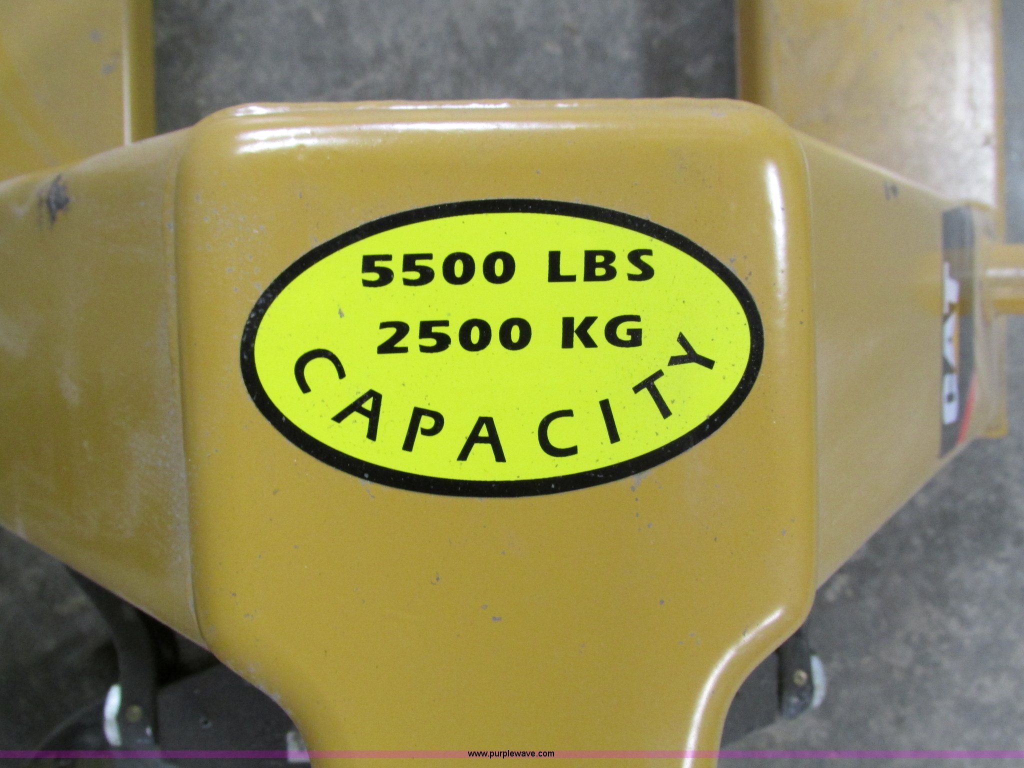 Purple Wave is selling a used Tools in Iowa. This item is a Caterpillar pallet jack with the following: 48"L, 5,500 lbs capacity, Unused