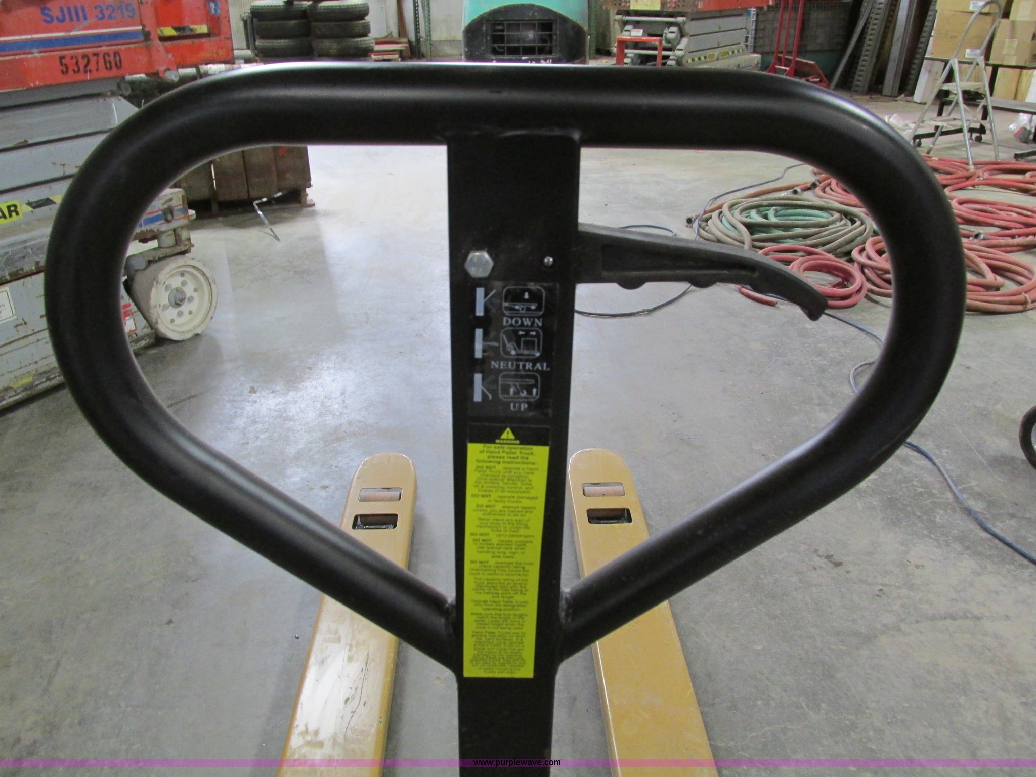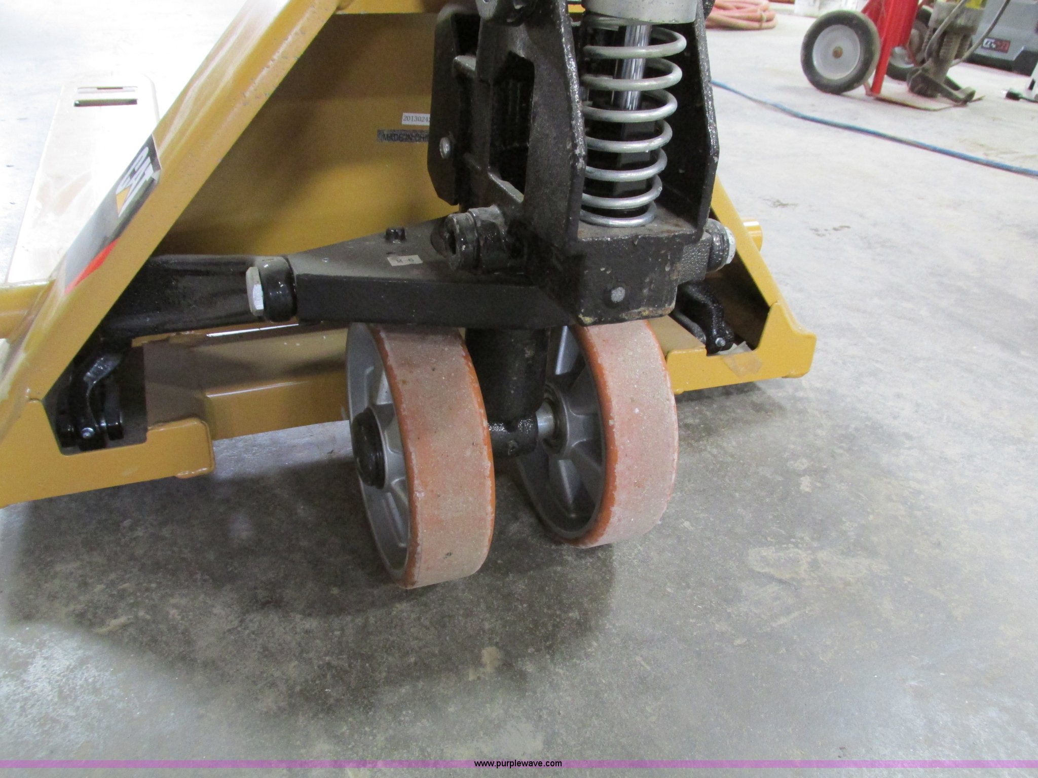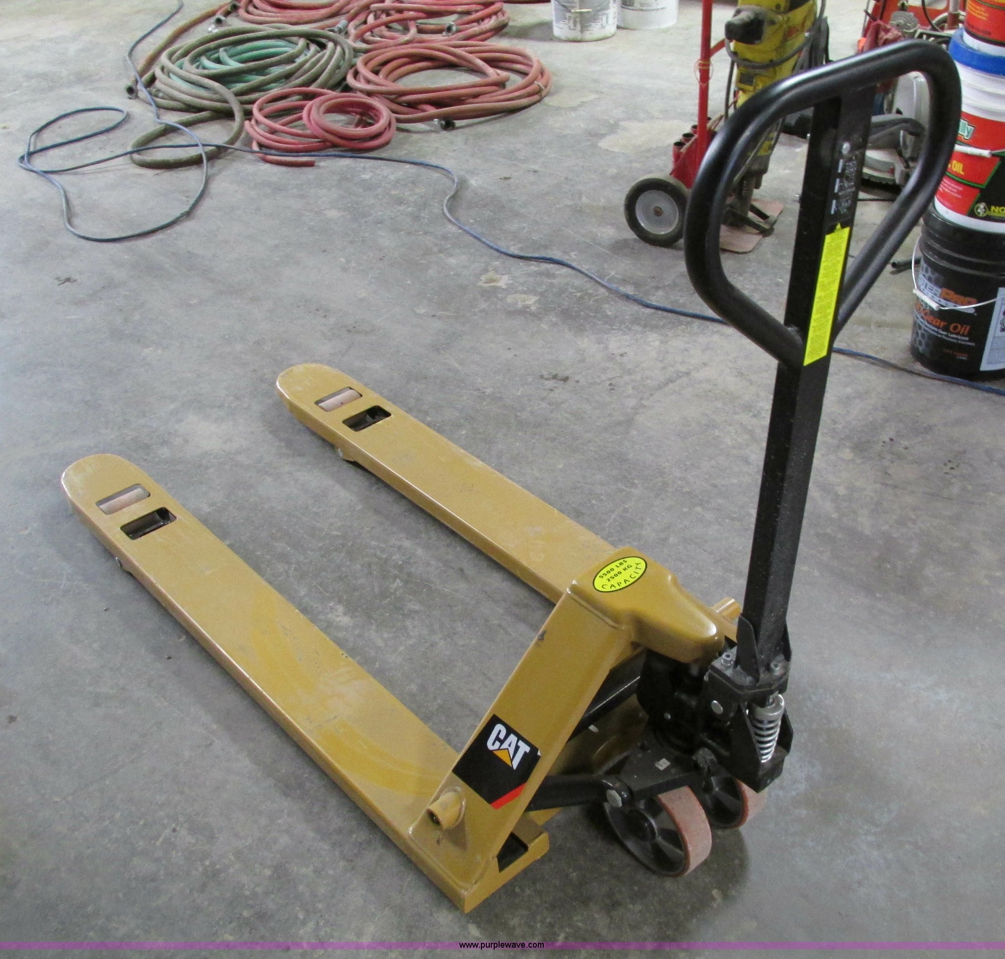 Purple Wave is selling a used Tools in Iowa. This item is a Caterpillar pallet jack with the following: 48"L, 5,500 lbs capacity, Unused
