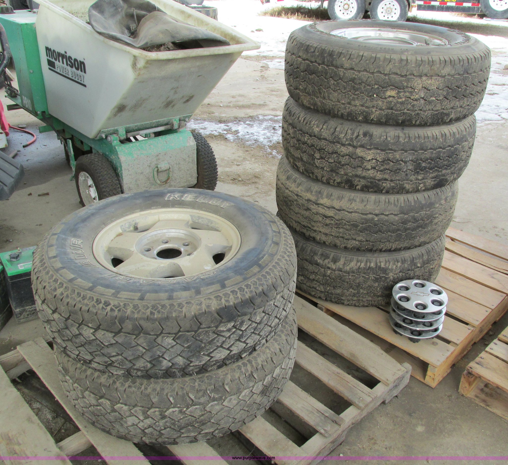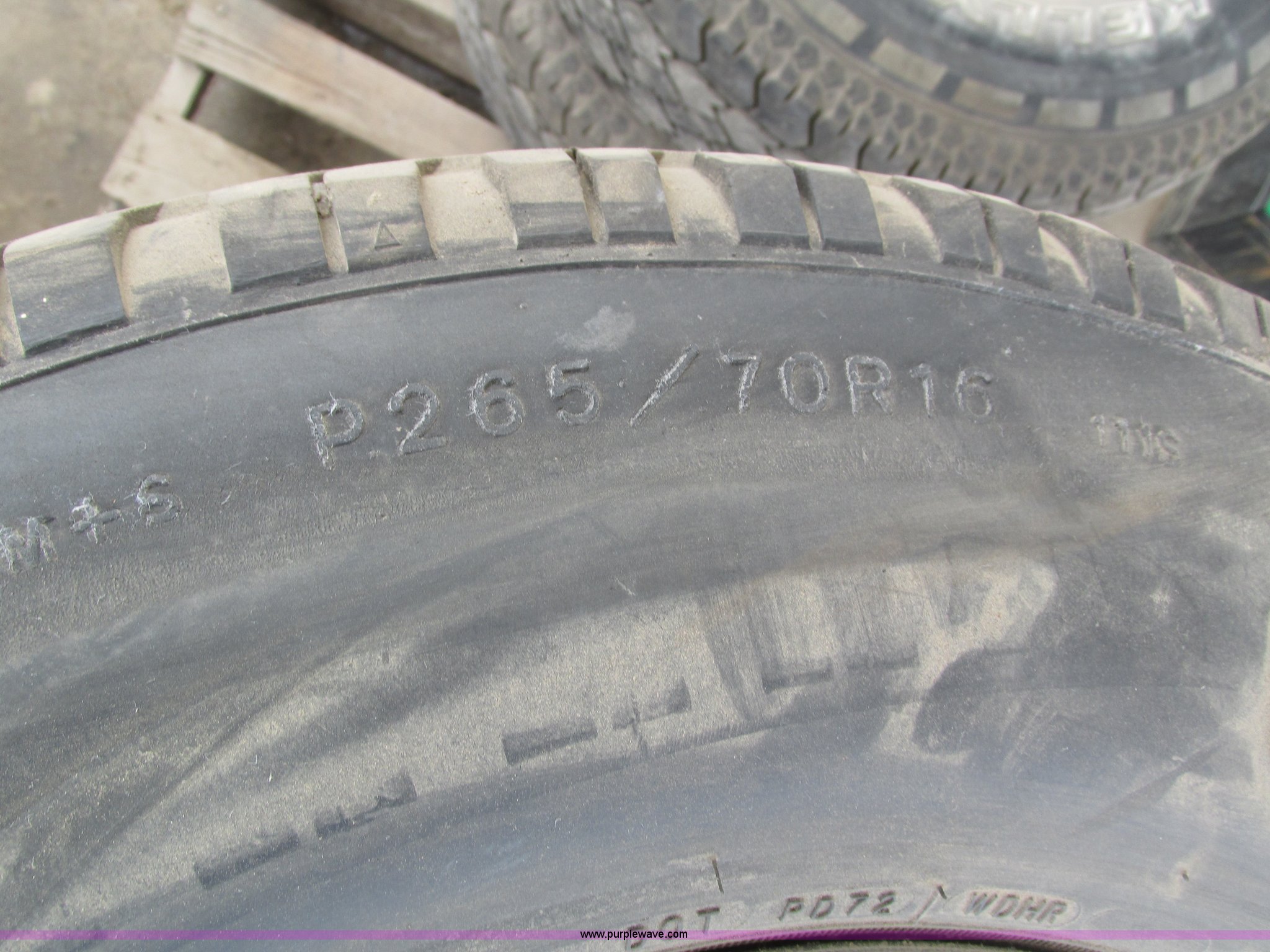 Purple Wave is selling a used Fleet Tires in Iowa. This item is a (6) tires and wheels with the following: (4) P265/70R16 tires, (2) P265/75R16 tires, (4) lug nut covers