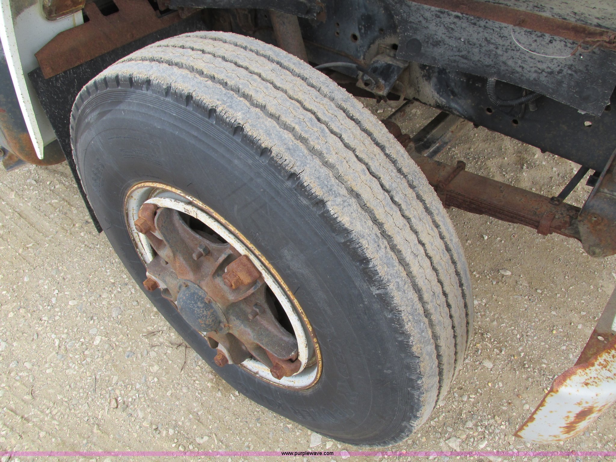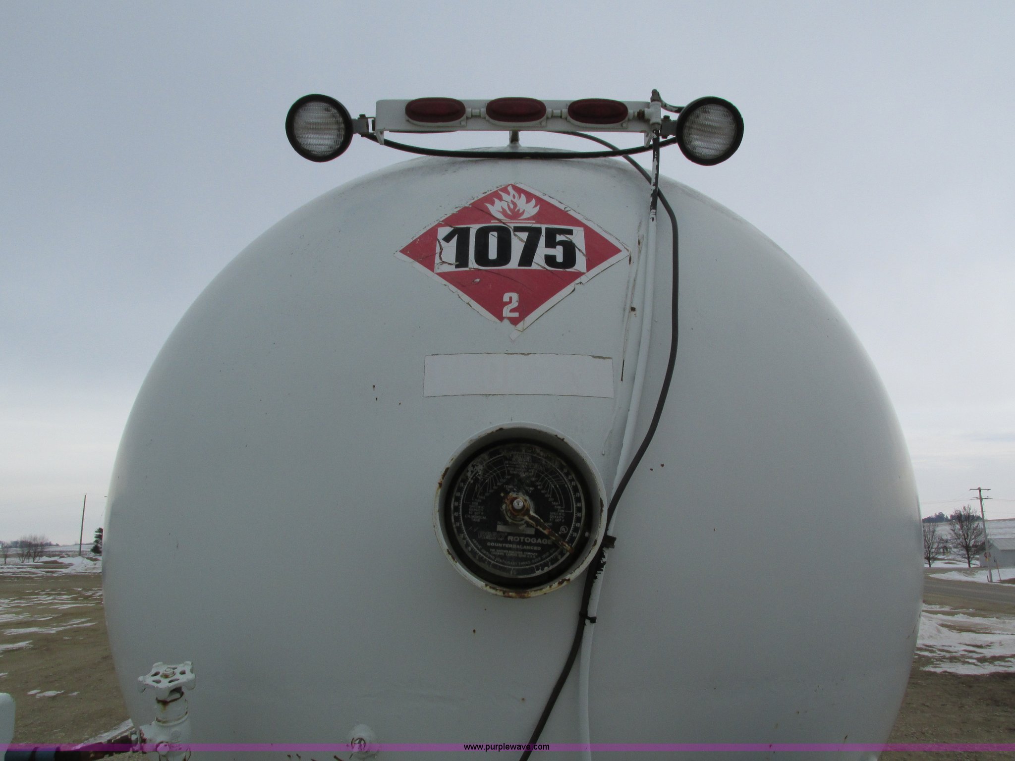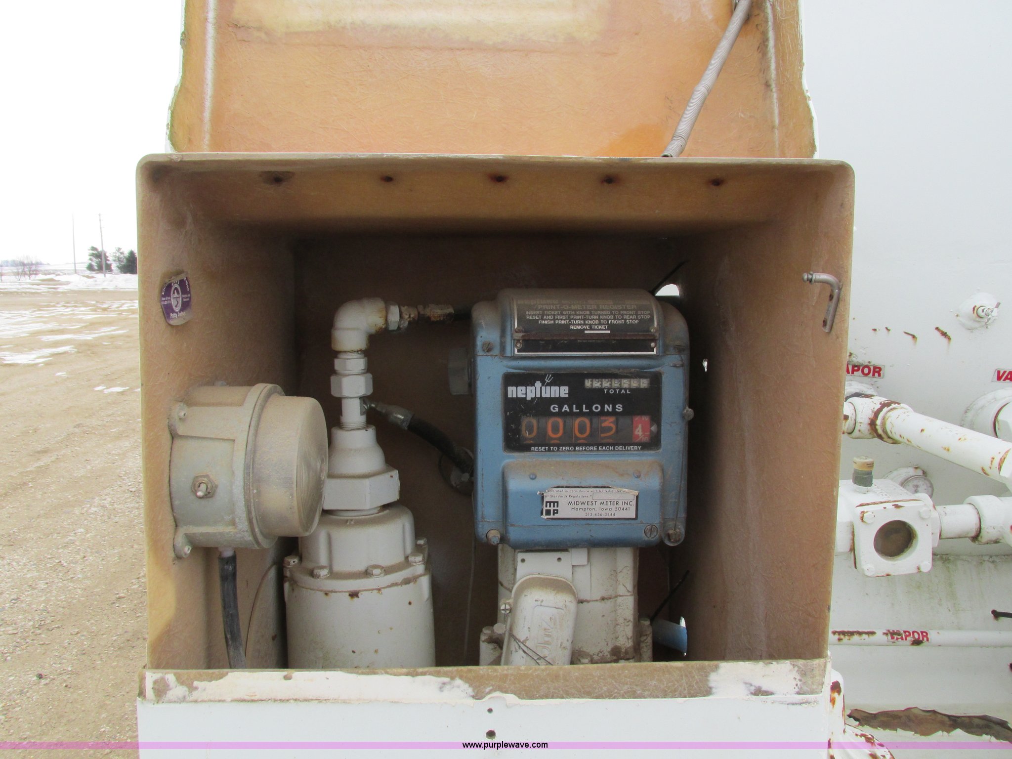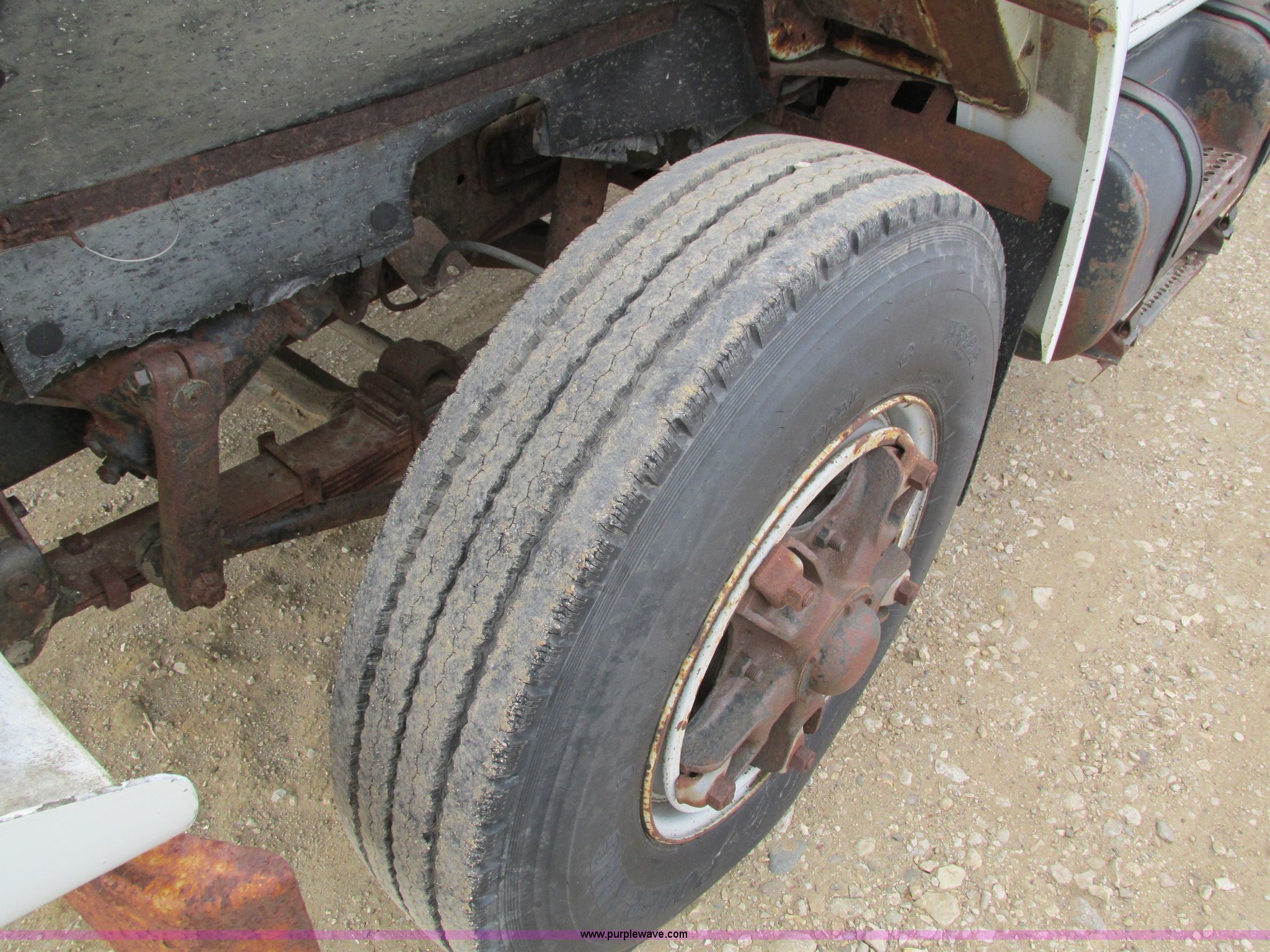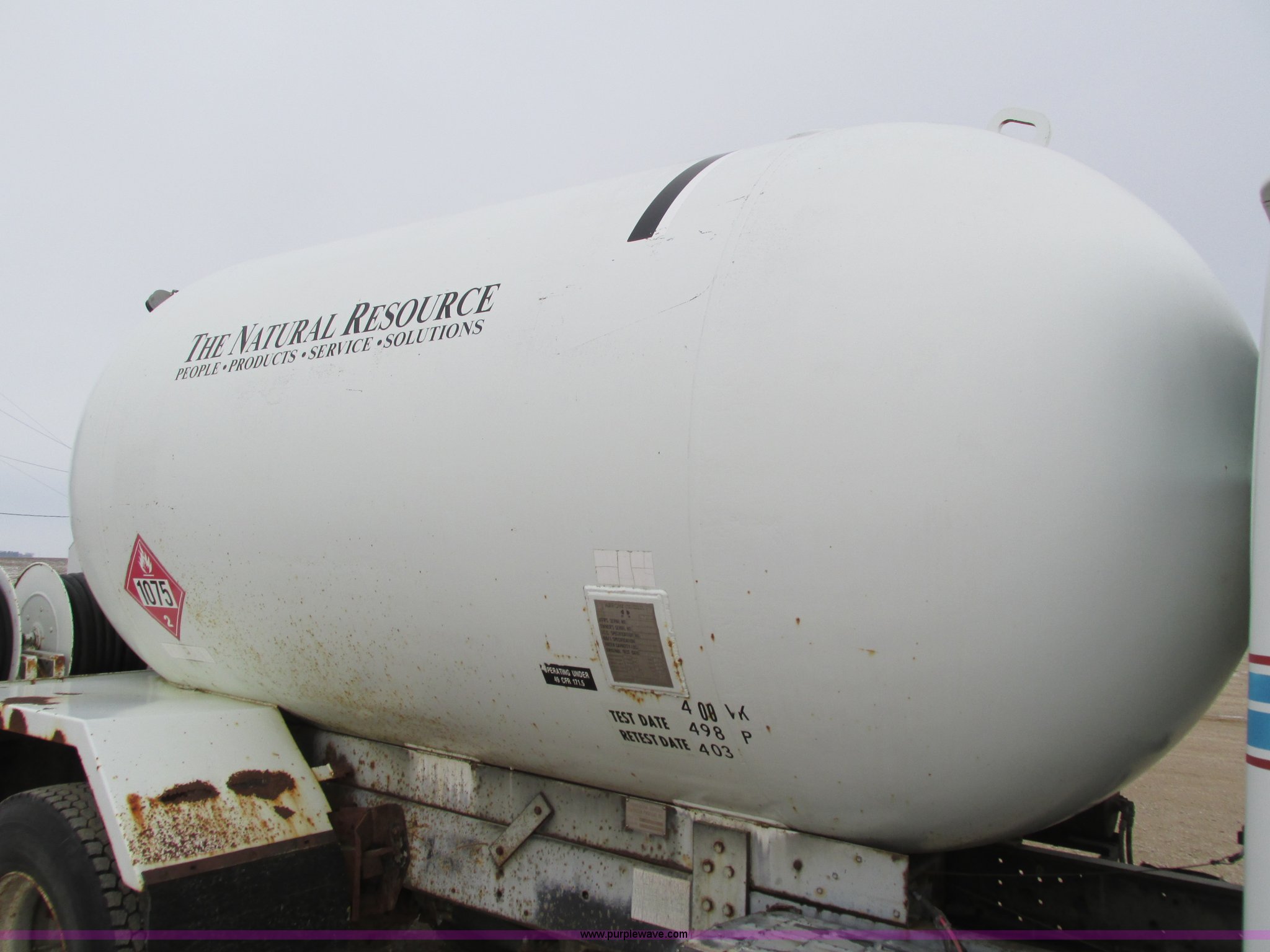 Purple Wave is selling a used Fuel Truck in Iowa. This item is a 1986 International 1754 propane delivery truck with the following: 134,000 miles on odometer, International eight cylinder diesel engine, Spcier Double Duty D five speed manual transmission, Two speed rear end, Heat, AM, Spring suspension seat, Arrow propane tank, 2,500 gallon capacity, (2) hose reels, Approx. 50 gallon fuel tank, PTO, Spring suspension, Hydraulic brakes, 11R22.5 tires, GVWR 28,000 lbs, FAWR 9,000 lbs, RAWR 19,000 lbs