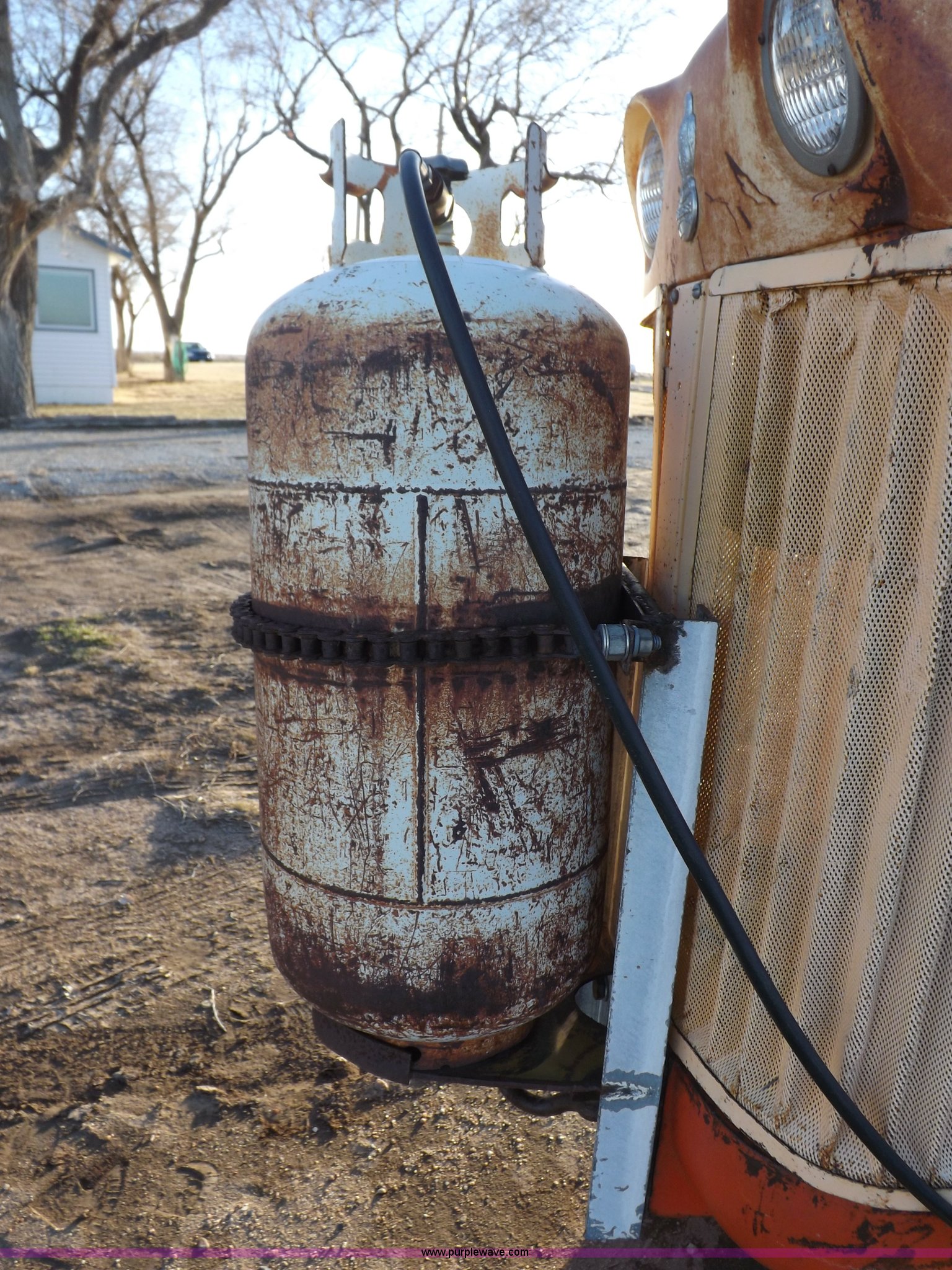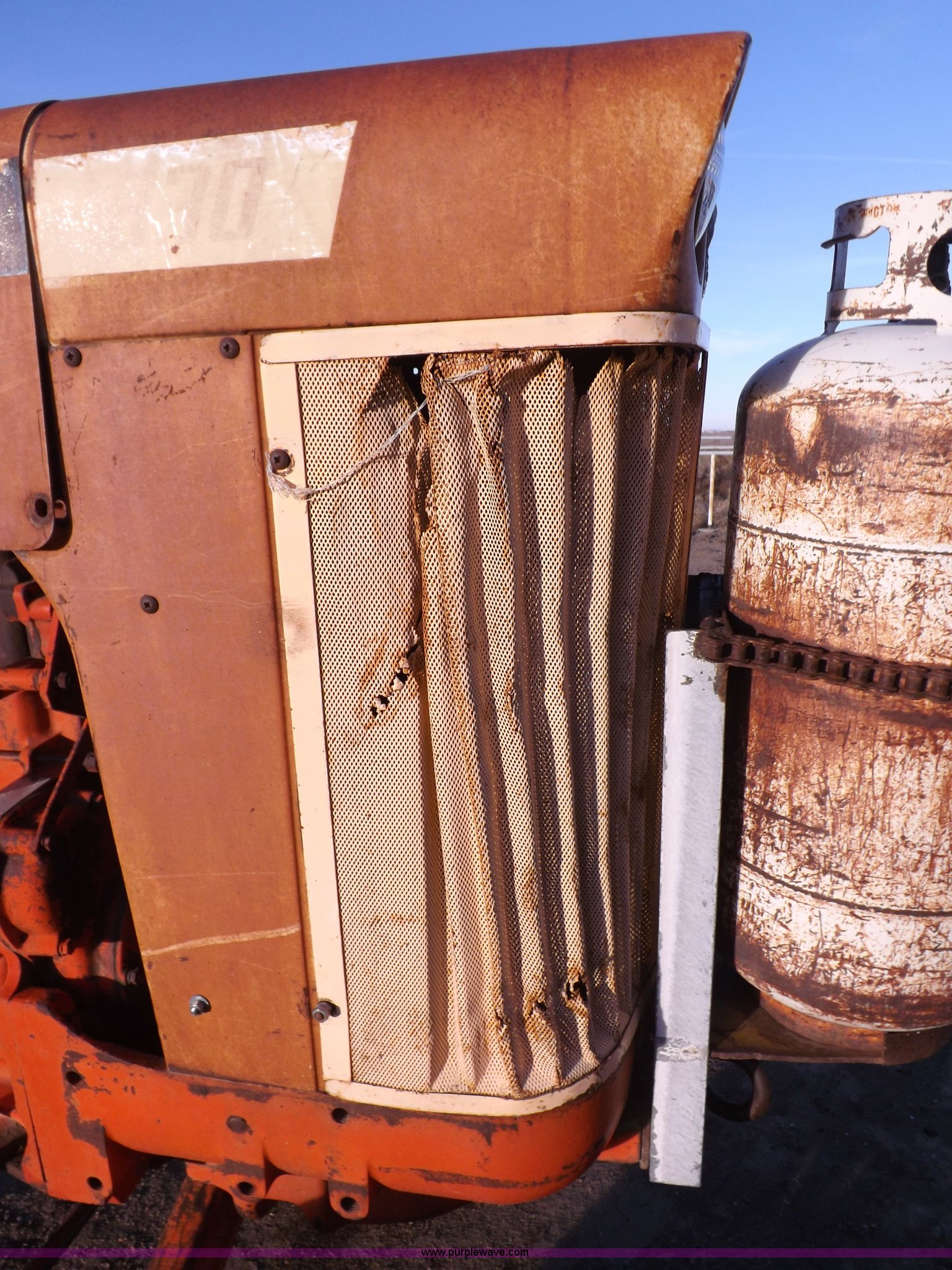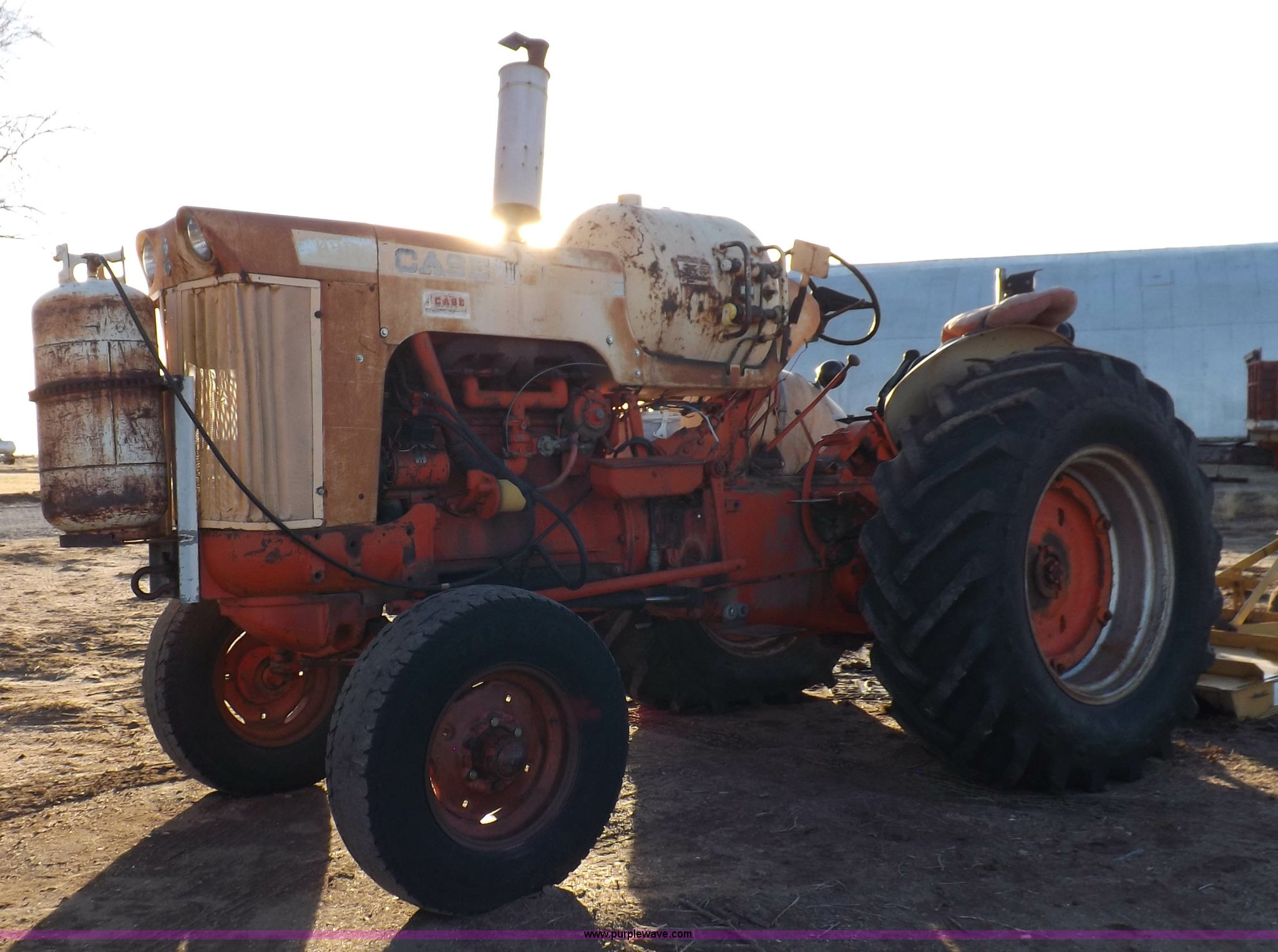 Purple Wave is selling a used Tractor in Kansas. This item is a Case 830 tractor with the following: Case four cylinder propane engine, Manual transmission, 8F-2R gears, Three point, Draw bar, 540 PTO, (2) rear hydraulic remote sets, 80" wheelbase, 235/85R16 front tires, 16.9R30 rear tires, Right rear tire low, Serial 8211321