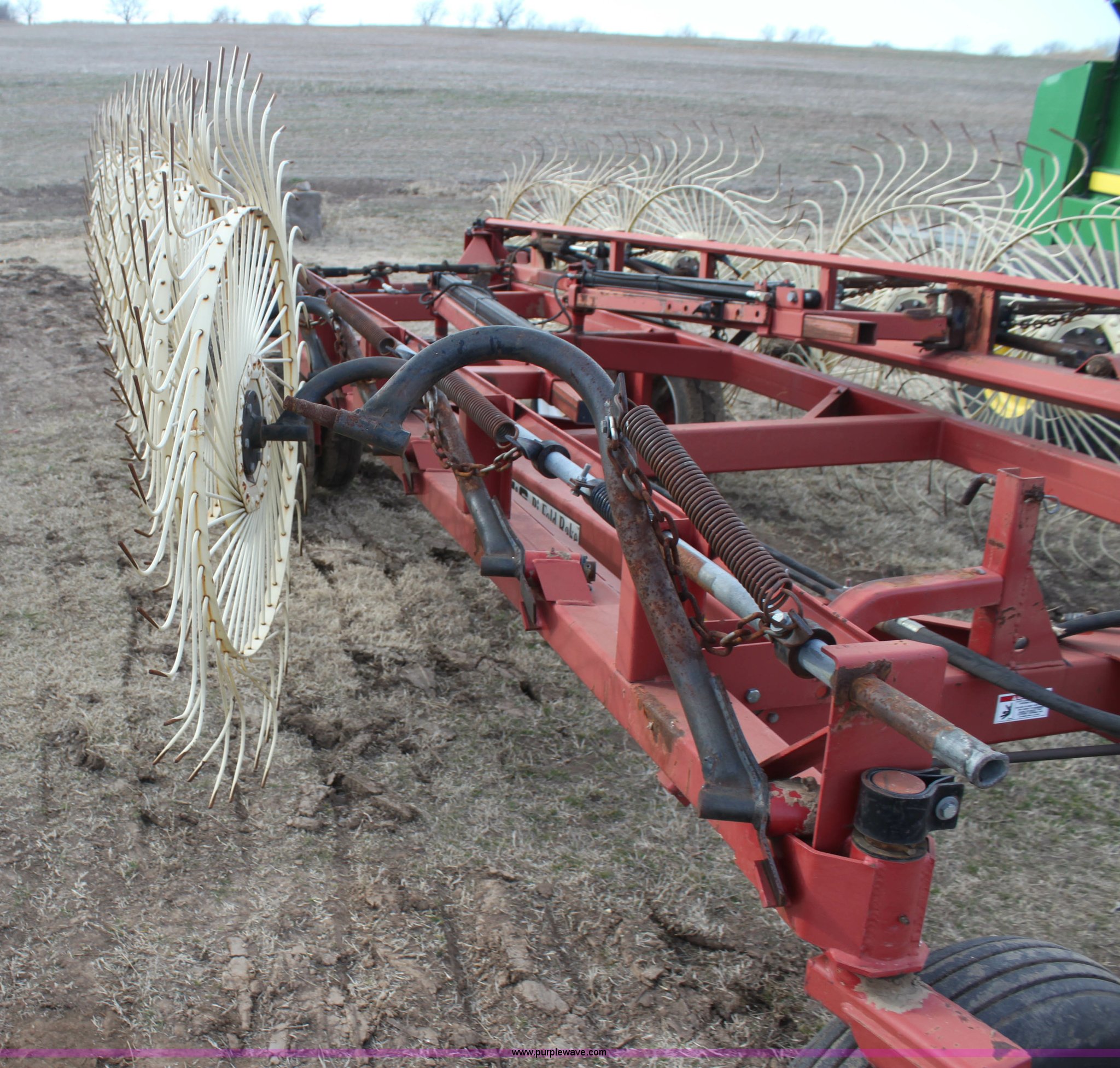 2009 H&S BF16 bi-fold rake. (16) wheels, Hydraulic fold, 15" tires, Serial 700988. Flying L Ranch. Ponca City, OK 74601