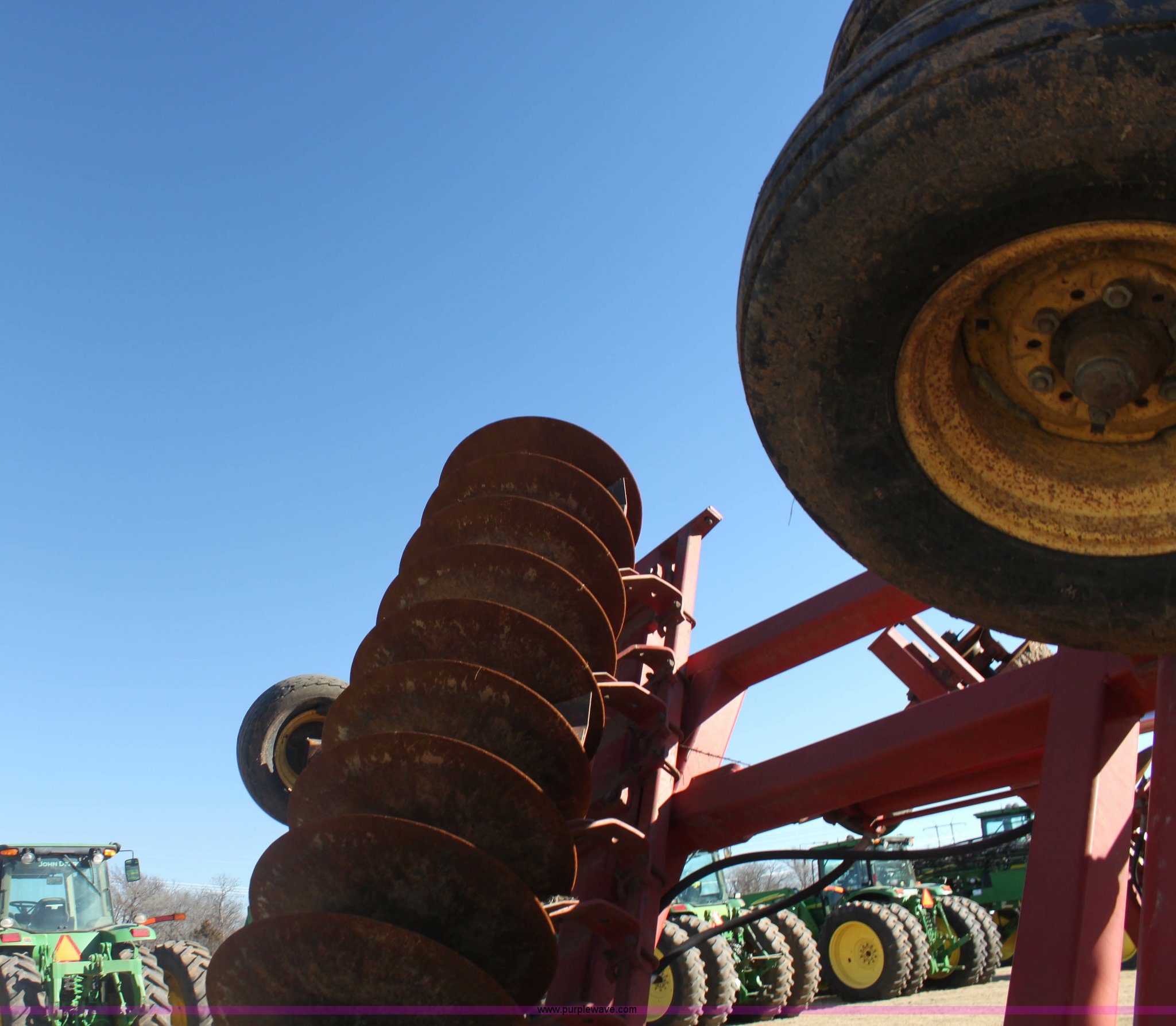 Sunflower 1443 disk. 29'W, 22" front blades, 24" rear blades, C-flex, Hydraulic folding wings, Hydraulic height adjust, Blade cleaners, 12.5-15 transport tires. Flying L Ranch. Ponca City, OK 74601