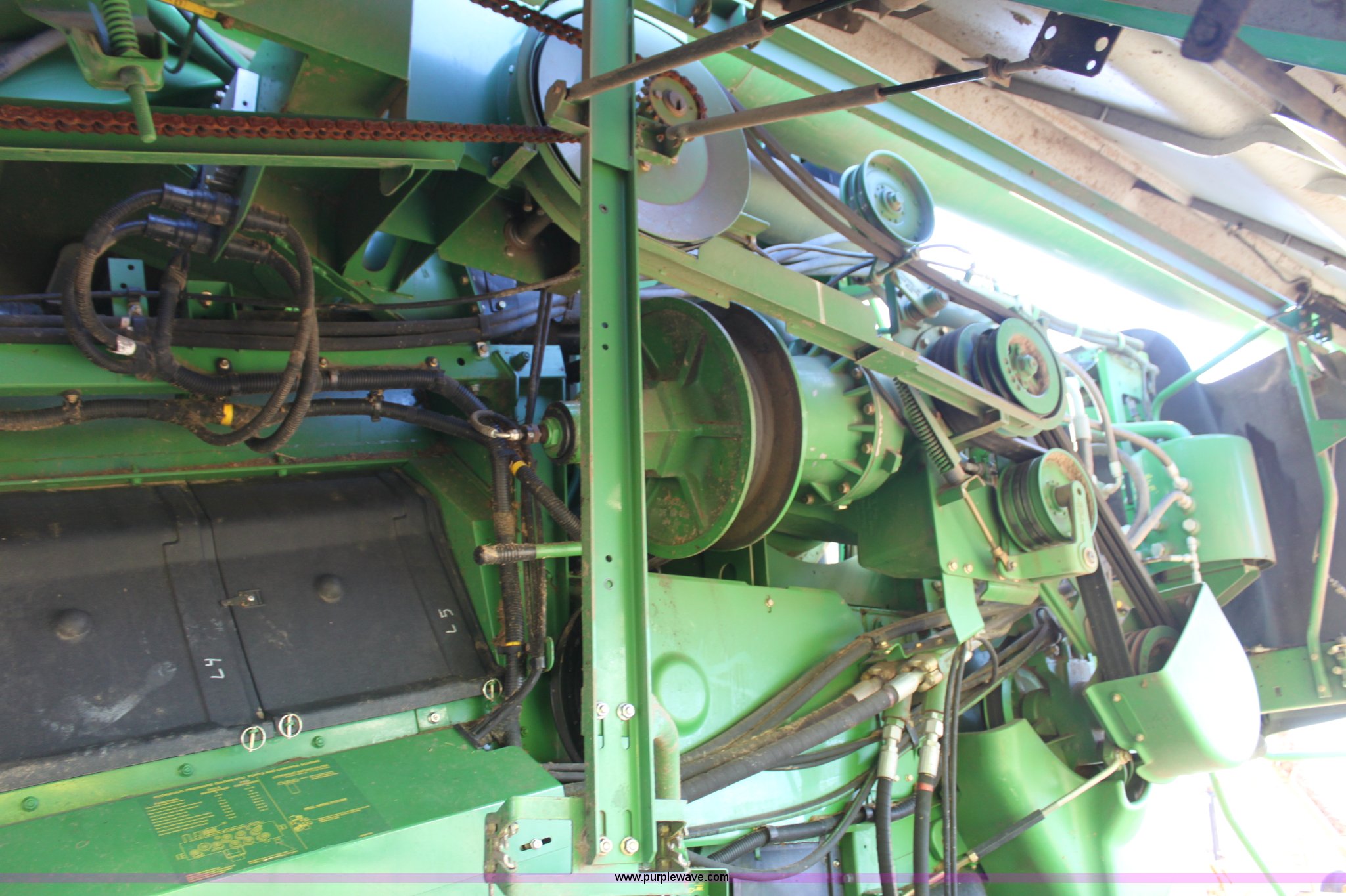Purple Wave is selling a used Combine in Oklahoma. This item is a 2010 John Deere 9770 STS combine with the following: 1,809 engine hours on meter, 1,335 separator hours on meter, John Deere 6090 six cylinder diesel engine, 360 HP, Hydrostatic transmission, Four wheel drive, Contour Master feeder house, Hi-torque, Five speed, Reverser, Hi-capacity lift cylinders, Single point header hookup, Custom Cutter extended wear separator, General purpose chaffer, AC and heat, AM/FM/weatherband, Air suspension seat, Instructor's seat, Tilt steering wheel, John Deere command center, Draper belt speed control, In-cab chaffer and sieve adjustment, Auto header height control, Harvest Smart feed rate control system, John Deere bin extensions, Hi-capacity unloading auger, (2) sets of concaves, Small wire, Round bar, Work lights, GreenStar ready, GS2 2600 monitor included, 10.4" touch screen, Star Fire ITC GPS antenna, Plug and Play GPS, 520/85R42 dual front tires, 750/65R26 rear tires, Serial 1H09970SPA0735989