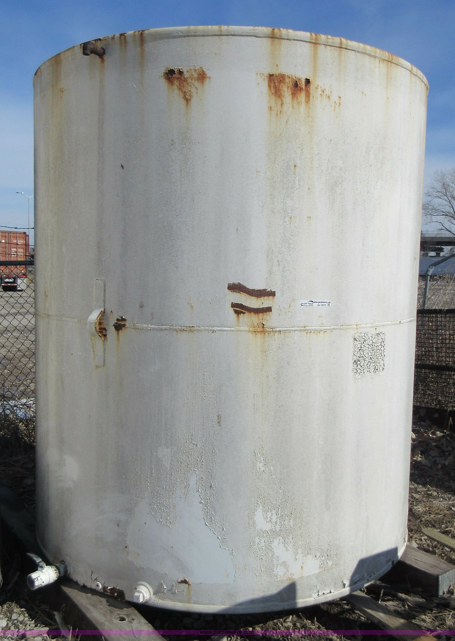 Purple Wave is selling a used Tanks in Missouri. This item is a 8' x 8' steel tank with the following: 3,000 gallon capacity