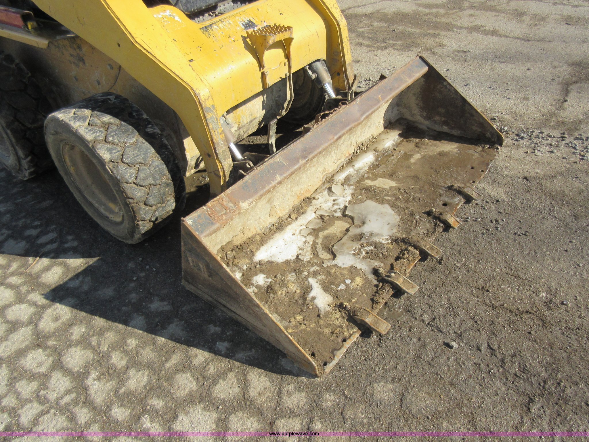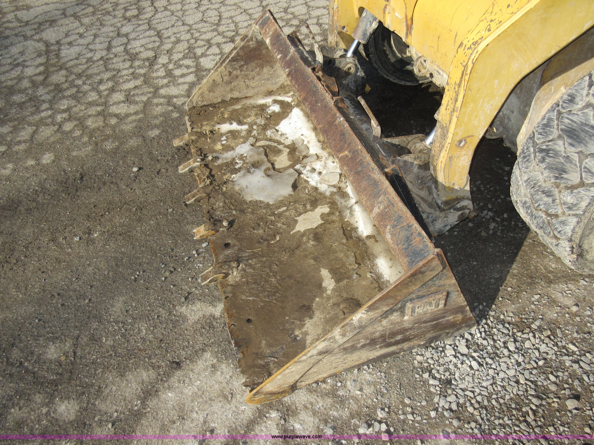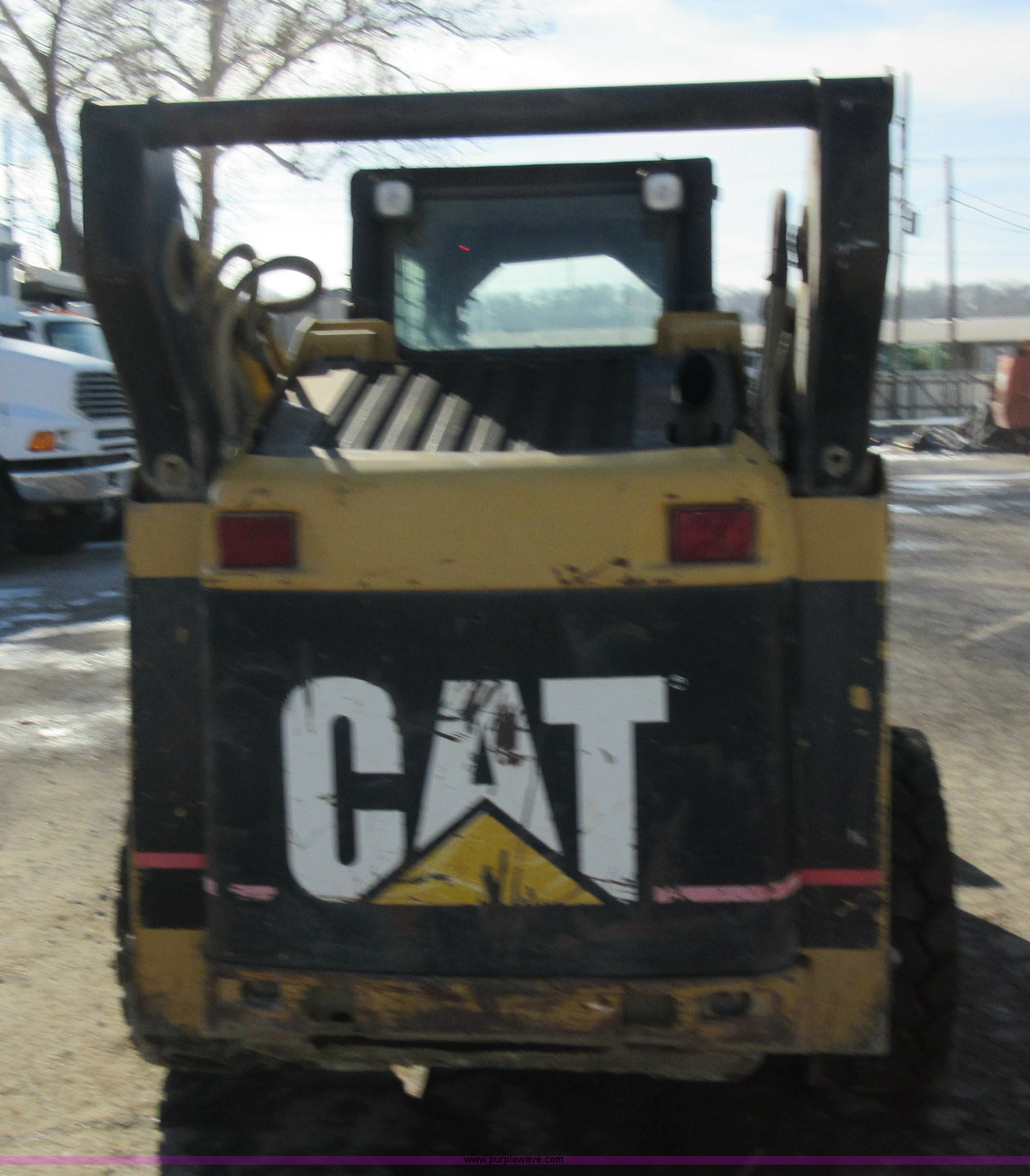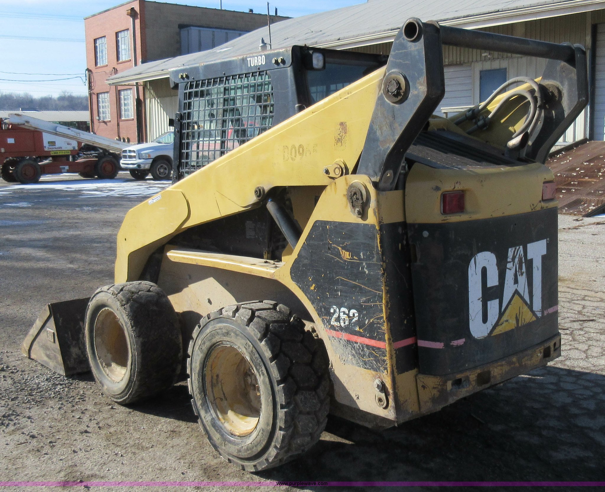 Purple Wave is selling a used Skid Steer Loader in Missouri. This item is a 2003 Caterpillar 262 skid steer with the following: 179 hours on meter, Four cylinder turbo diesel engine, Hydrostatic transmission, Enclosed cab, AC and heat, Bucket joystick controls, 73"W bucket, Bolt-on cutting edge, Auxiliary hydraulics, Front and rear work lights, 12 x 16.5 tires, 7,655 lbs. base operating weight, Front wiper is not installed, Recently replaced rear tires, Serial CAT00262PCED02188