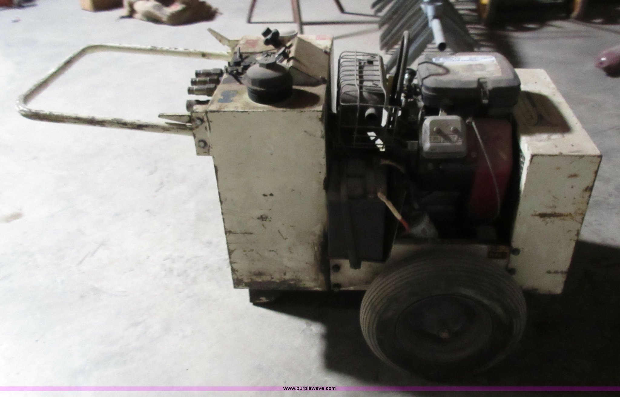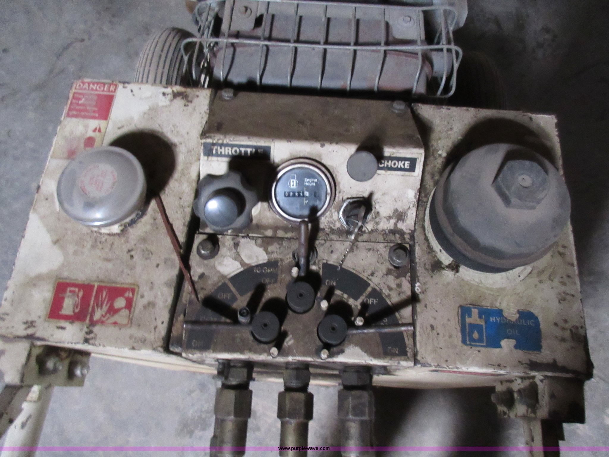 Purple Wave is selling a used Tools in Missouri. This item is a Geismar G18D55-53-W hydraulic power pack with the following: 255 hours on meter, Honda gas engine, Dual five gallon per minute or one 10 gallon per minute output, Serial 94435910
