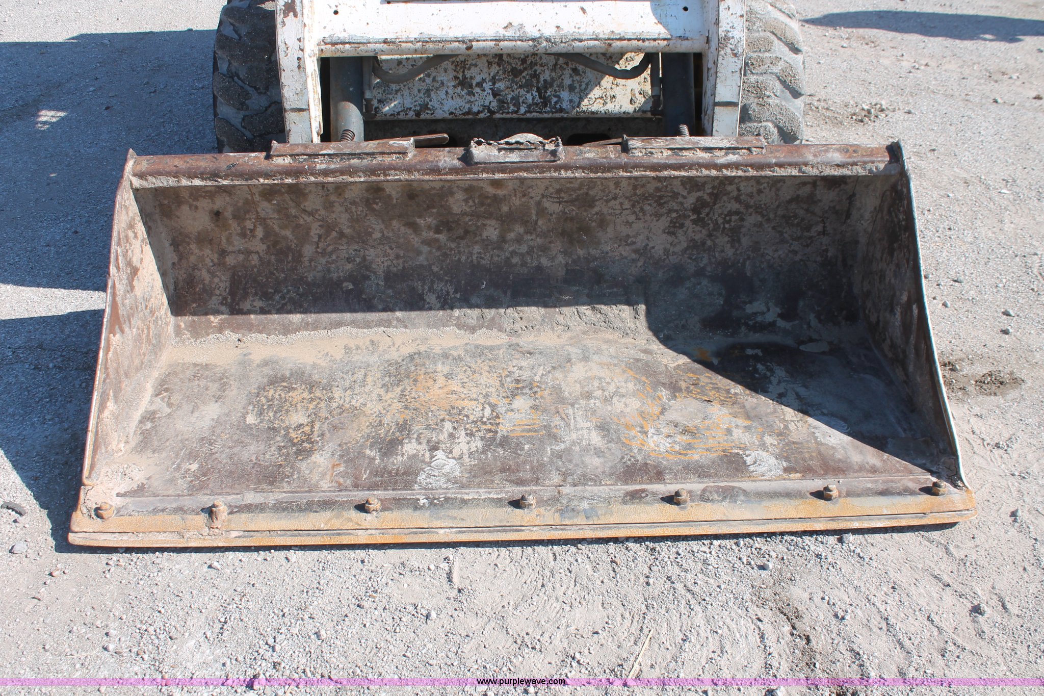 Purple Wave is selling a used Skid Steer Loader in Oklahoma. This item is a 2003 Bobcat S150 skid steer with the following: 2,978 hours on meter, Kubota V2203 2.2L four cylinder diesel engine, 49 HP, Hydrostatic transmission, Rear glass, Hand and foot controls, John Deere Worksite Pro 72"W bucket, Bolt-on cutting edge, Bobtach hydraulic quick attach, High flow auxiliary hydraulics, Front work lights, 24 gallon fuel tank, 1,500 lbs rated operating capacity, 3,000 lbs tipping load, 5,935 lbs. base operating weight, Orange wheel has been replaced with a yellow wheel and tire, Serial 526912404