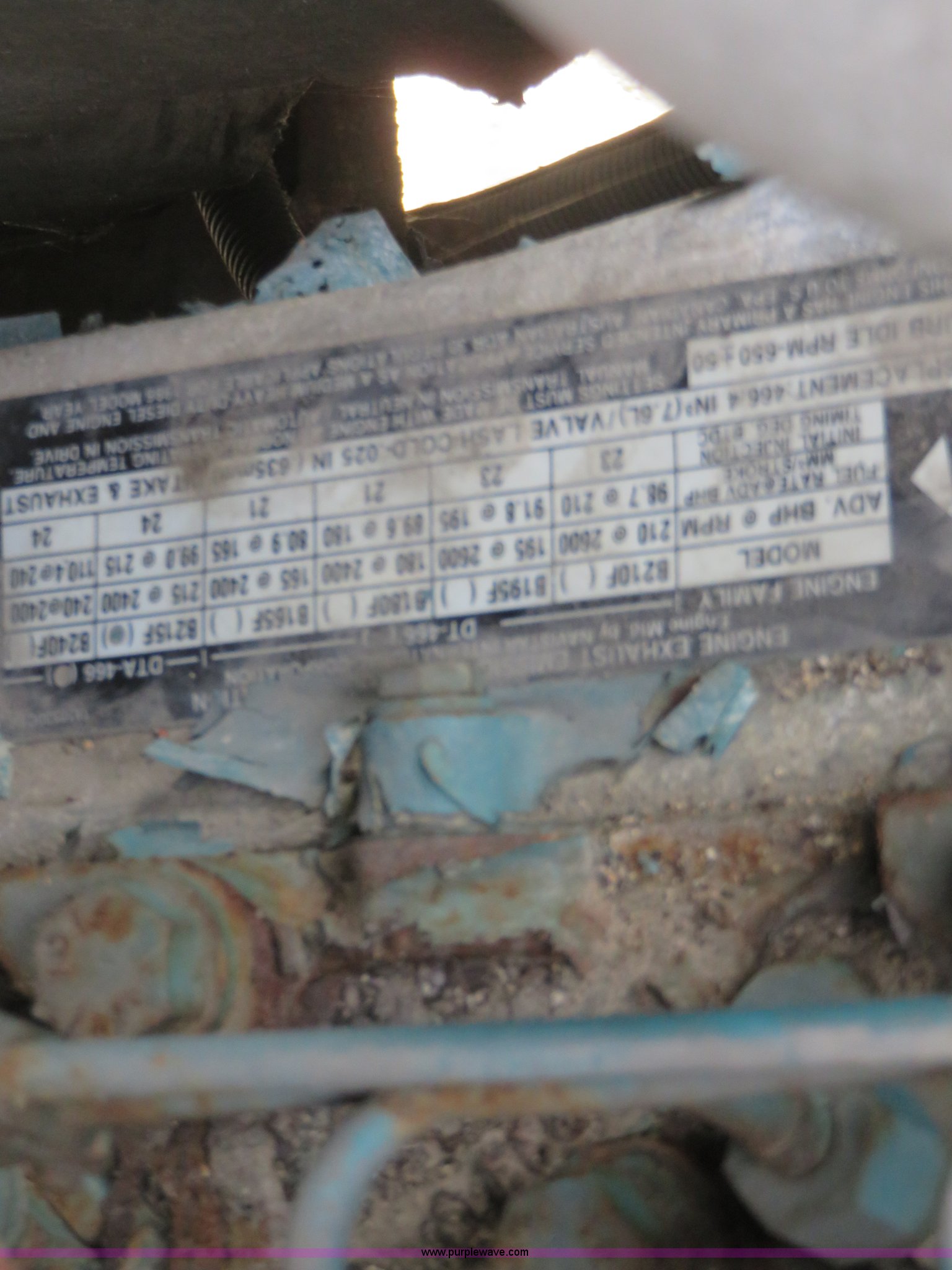 Purple Wave is selling a used Truck Chassis in Kansas. This item is a 1986 International 1954 cab and chassis with the following: 102,298 miles on odometer, International DT466A diesel engine, 215 HP, Five speed manual transmission, Heat, AM/FM, Manual windows and locks, Vinyl interior, Air suspension seat, Dual 50 gallon fuel tanks, Strobe light, 22' from rear of cab to frame, Air up/down tag axle, Spring suspension, Air brakes, 11R22.5 tires