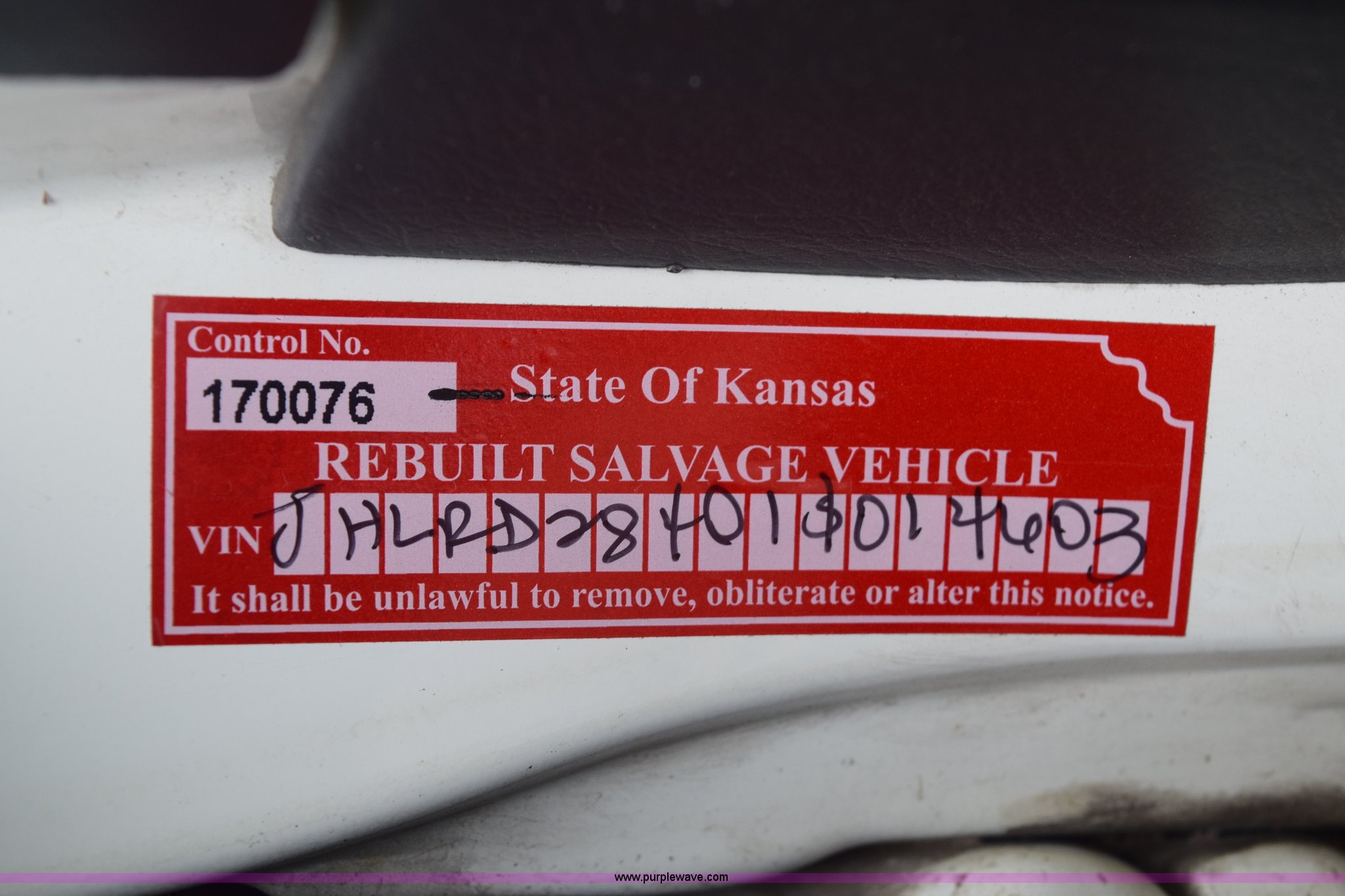 2001 Honda CR-V LX SUV. 113,900 miles on odometer, 2.0L L4 DOHC 16V gas engine, Automatic transmission, AC and heat, AM/FM/CD, Power windows, locks, and mirrors, Cloth interior, 205/70R15 tires, Interior/exterior cosmetic damage, Dents, Paint scratched, Case# 14C082453. Previous rebuilt salvage title. Vehicle is abandoned. Condition and history are unknown. No additional information is available. Vehicle does not have keys unless notated otherwise in the item listing.. View City Of Wichita Terms for title acquisition and item removal requirements.. JHLRD28401S014603. Tow Service Inc.. 3760 South Broadway. Wichita, KS 67216