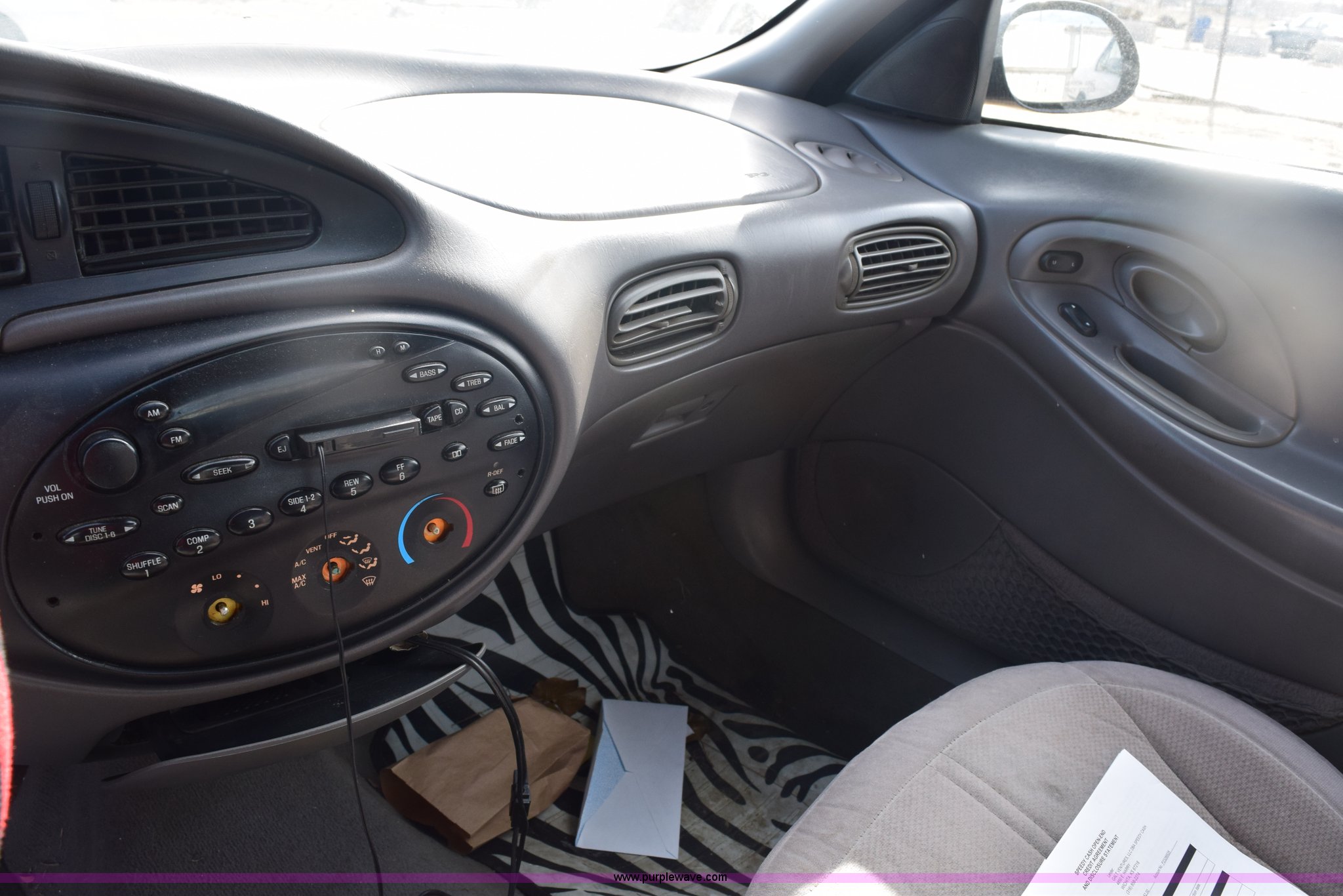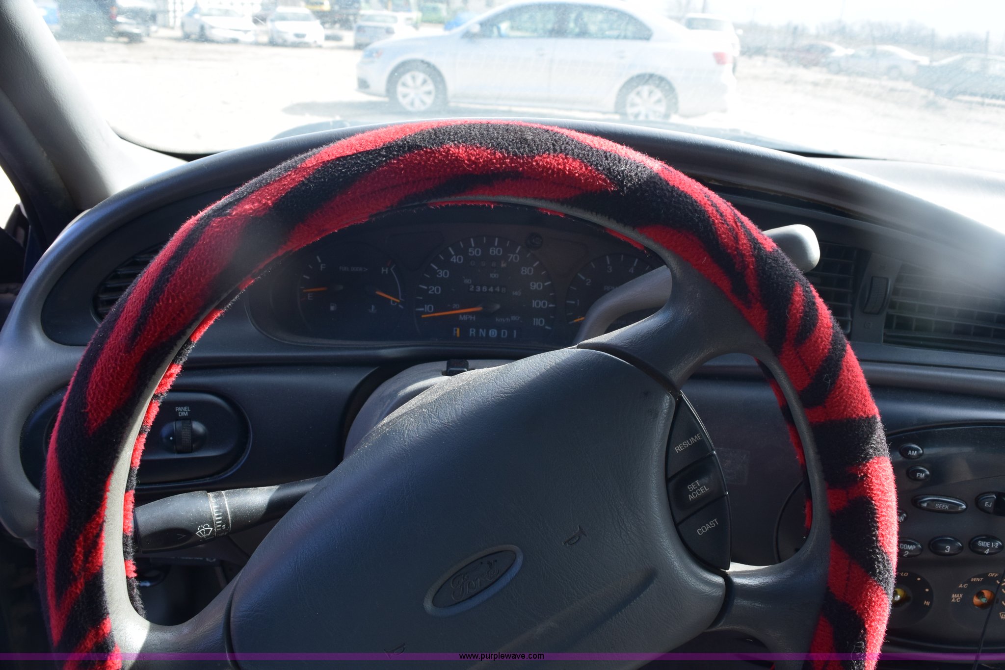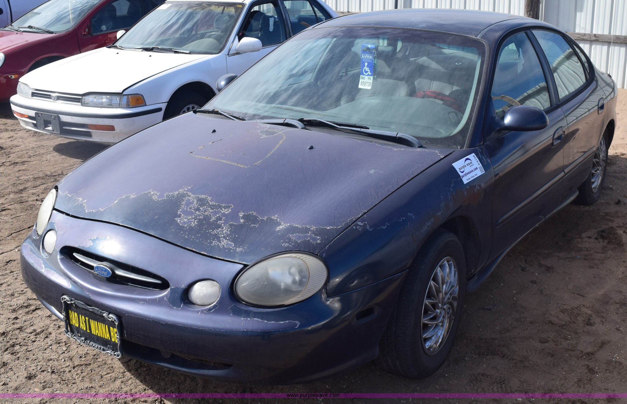 Purple Wave is selling a used Passenger Vehicle in Kansas. This item is a 1998 Ford Taurus LX with the following: 236,448 miles on odometer, 3.0L V6 OHV 12V gas engine, Automatic transmission, AC and heat, AM/FM, Power windows, locks, and mirrors, Cloth interior, Keys, 205/65R15 tires, Contents included, Interior/exterior cosmetic damage, Paint faded, Scratches and dents, Windshield cracked, Climate control knobs missing, Case# 14C089513