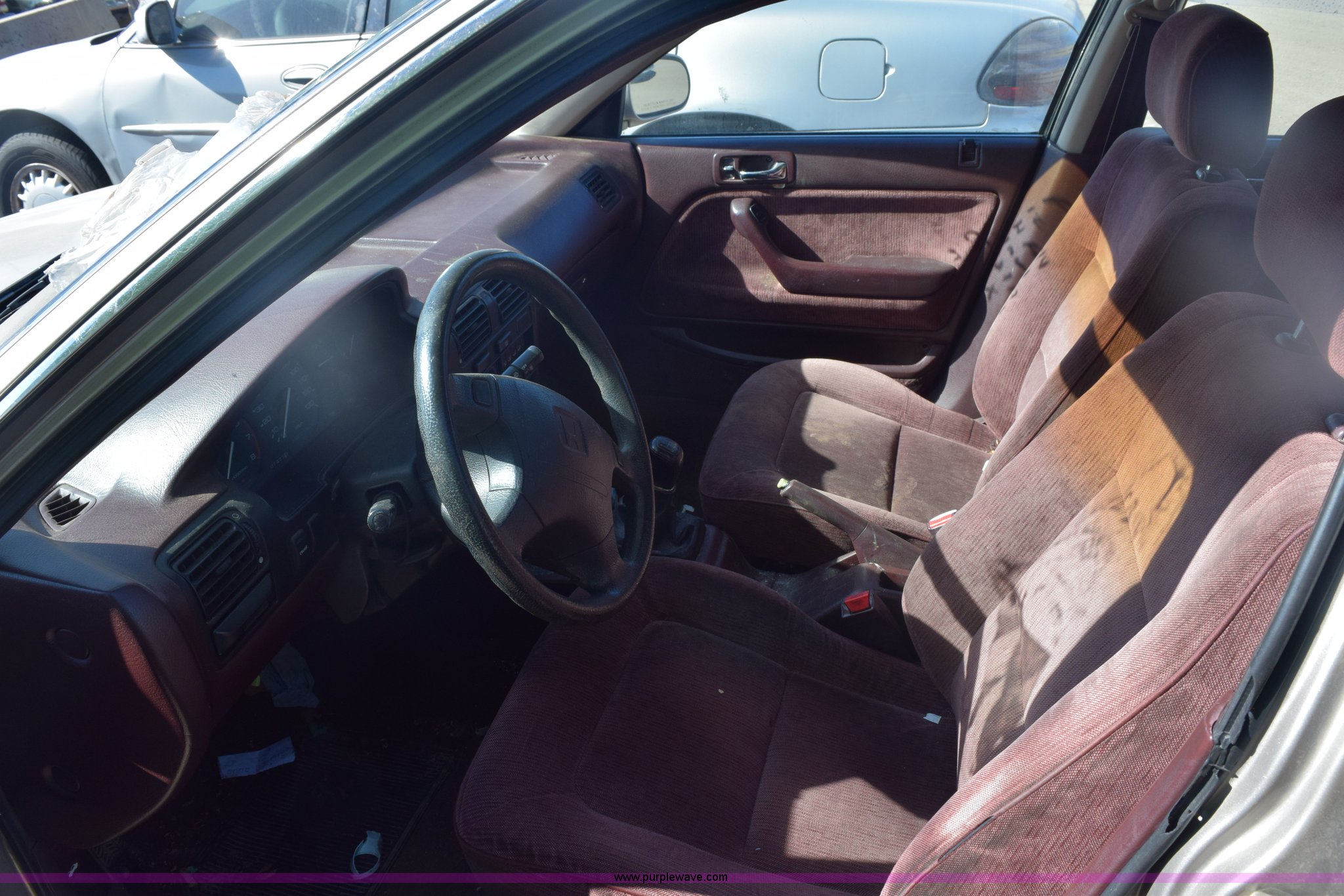 Purple Wave is selling a used Passenger Vehicle in Kansas. This item is a 1993 Honda Accord LX with the following: 207,459 miles on odometer, 2.2L L4 SOHC 16V gas engine, Five speed manual transmission, AC and heat, Cruise, Power windows, locks, and mirrors, Cloth interior, 185/70R14 tires, Contents included, Interior/exterior cosmetic damage, Paint peeling, Paint scratched, Dents and dings, Driver's fender dented, Radio missing, Case# 14C523979