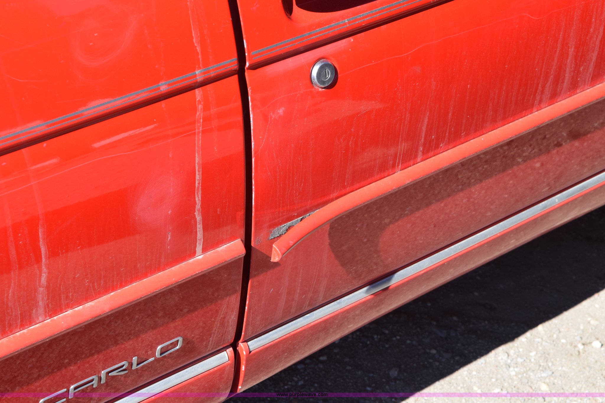 Purple Wave is selling a used Passenger Vehicle in Kansas. This item is a 1998 Chevrolet Monte Carlo LS with the following: 216,611 miles on odometer, 3.1L V6 OHV 12V gas engine, Manual transmission, AC and heat, Cruise, AM/FM/CD, Power windows, locks, and seats, Cloth interior, 205/75R15 tires, Interior/exterior cosmetic damage, Front bumper missing, Headlight damage, Dents, Scratches, Door panel removed, Seat torn, Rust, Driver's door will not open completely, Trim peeling, Cracked windshield, Case# 14C74510