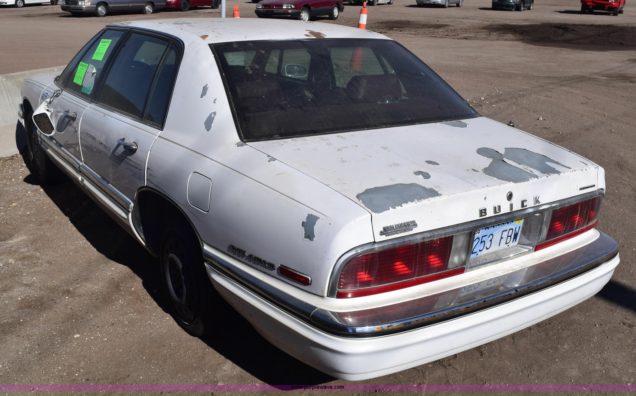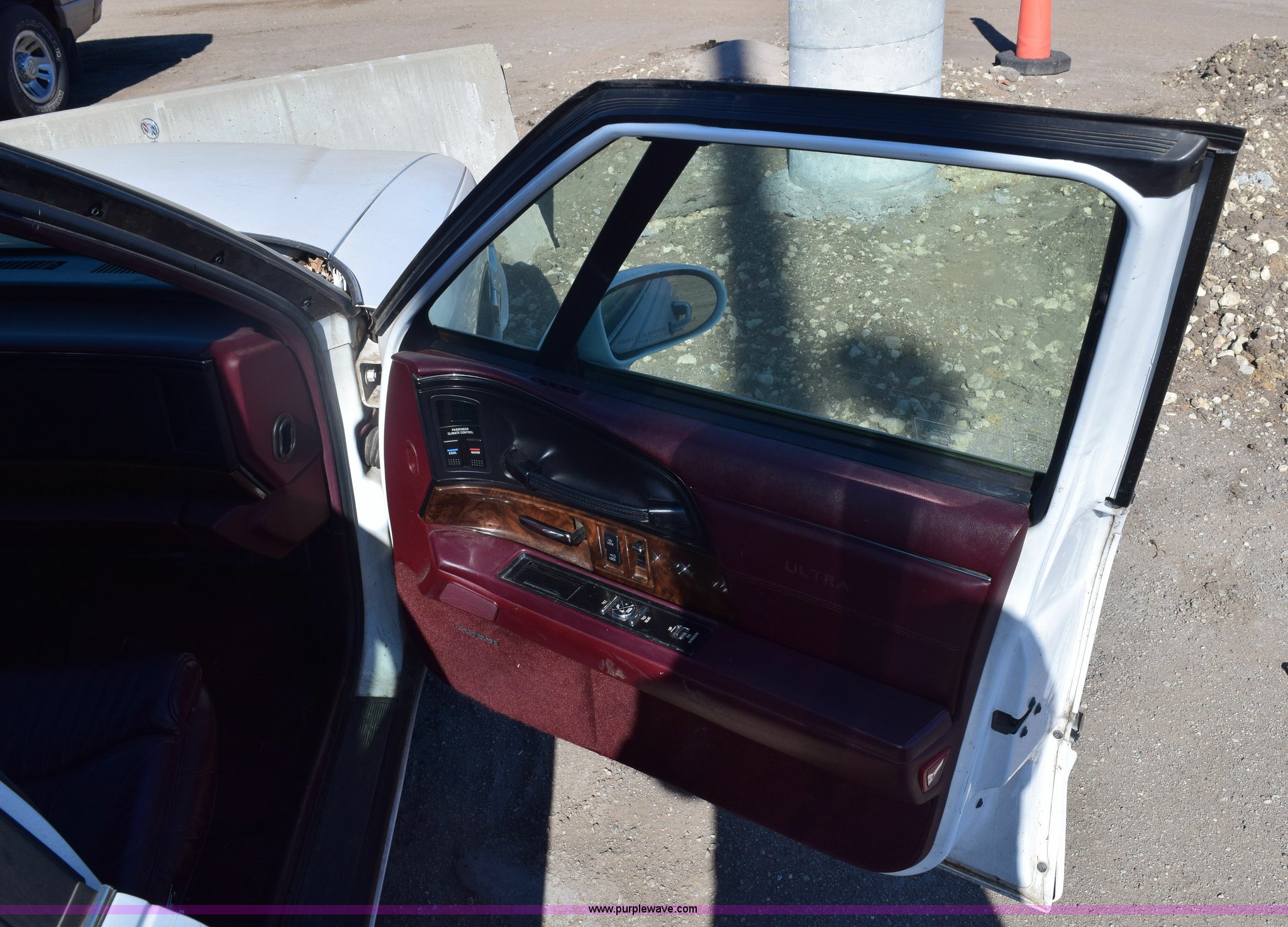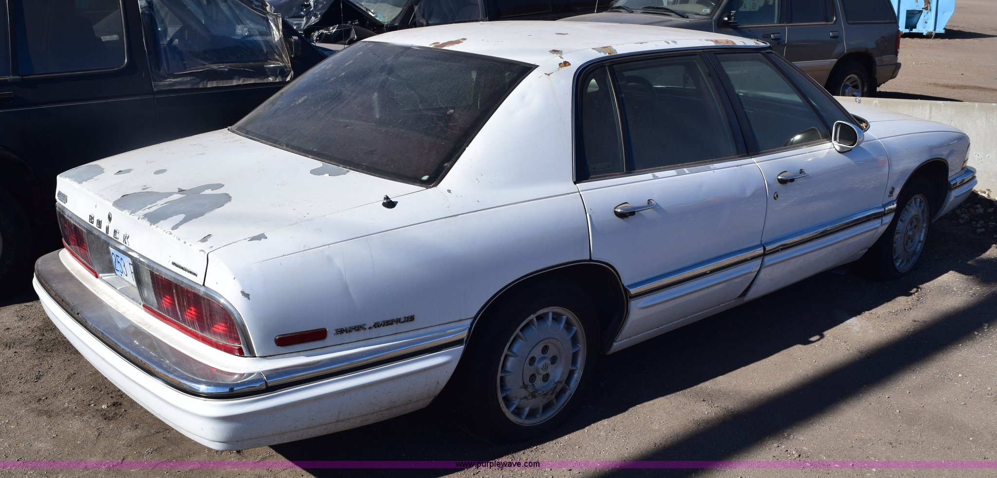 Purple Wave is selling a used Passenger Vehicle in Kansas. This item is a 1994 Buick Park Avenue Ultra with the following: 192,680 miles on odometer, 3.8L V6 OHV 12V gas engine, Automatic transmission, AC and heat, Tilt, Cruise, Power windows, locks, mirrors, and seats, Leather interior, 215/60R16 tires, Interior/exterior cosmetic damage, Paint scratched, Dents, Mirror broken, Radio missing, Spare tire mounted, Case# 15C001223