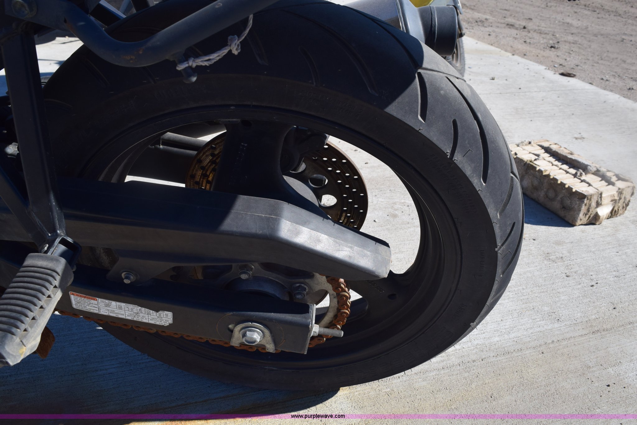 Purple Wave is selling a used Motorcycle in Kansas. This item is a 2006 Suzuki 6s500 motorcycle with the following: 15,585 miles on odometer, Gas engine, 110/70-17 front tire, 130/70-17 rear tire, Left mirror missing, Paint peeling, Seat missing, Case# 14C047350