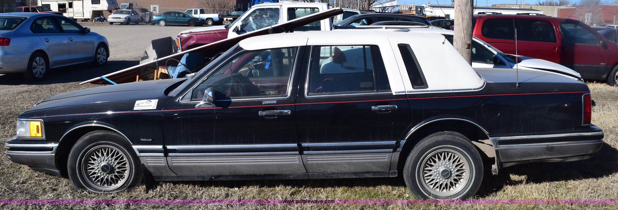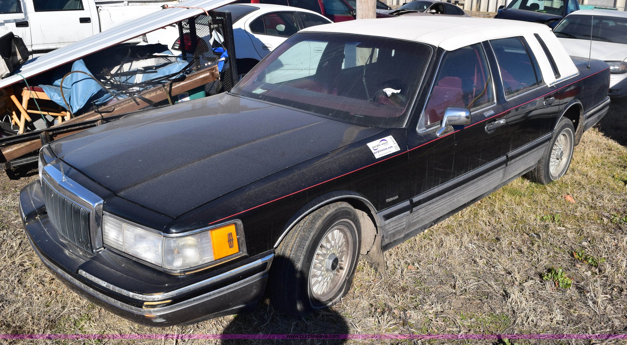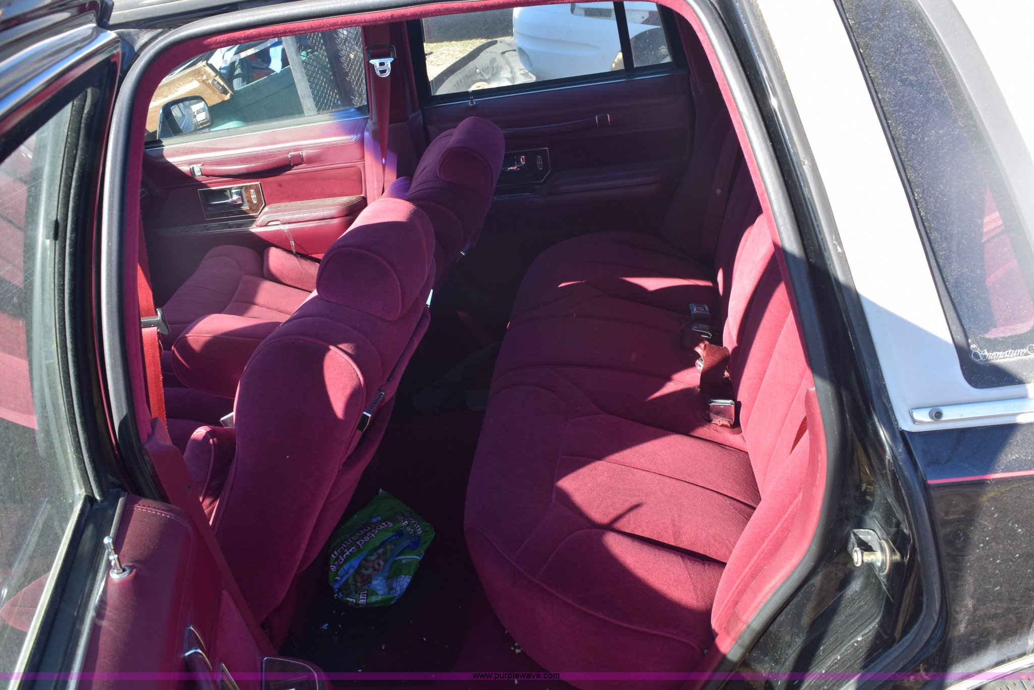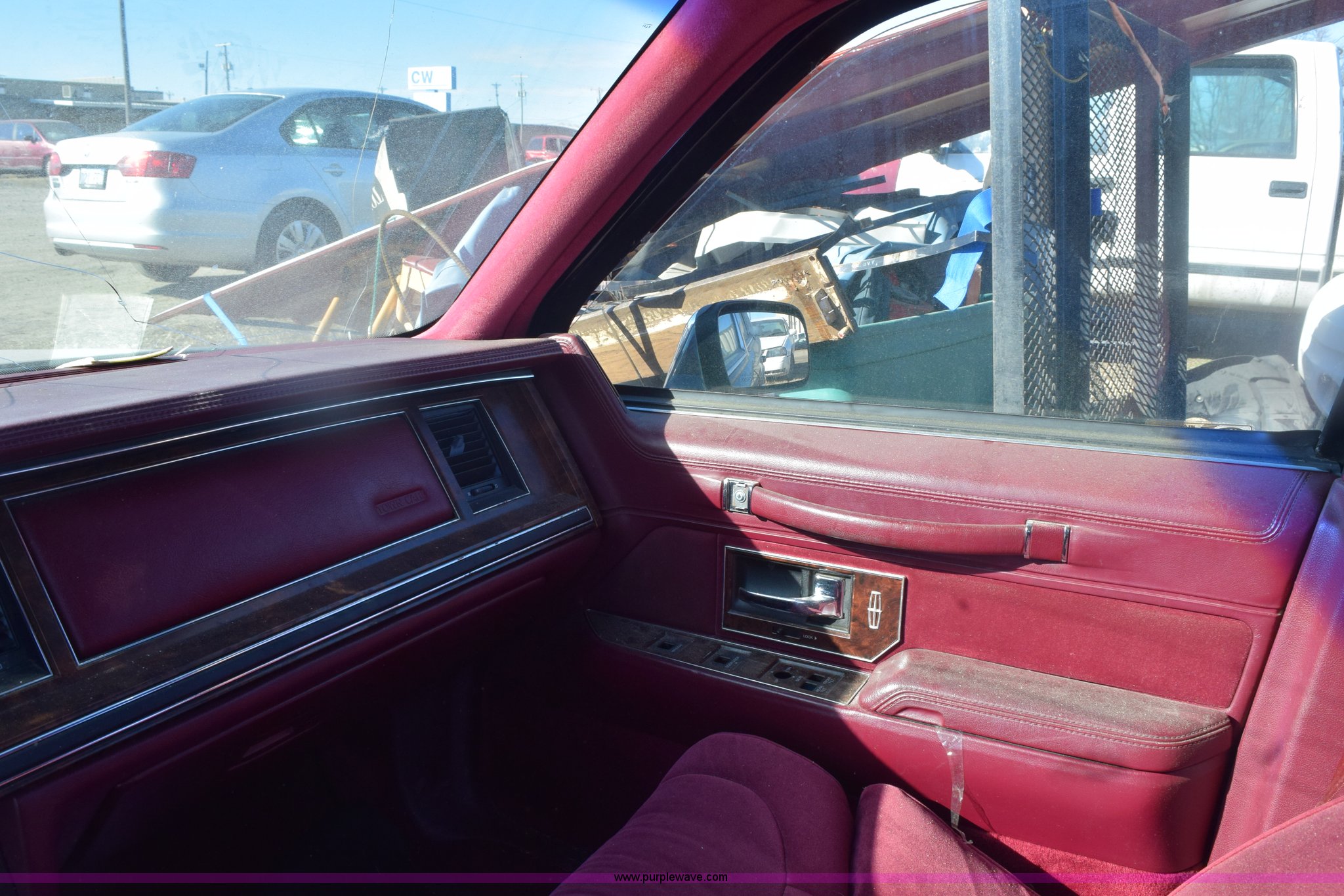 Purple Wave is selling a used Passenger Vehicle in Kansas. This item is a 1991 Lincoln Town Car Signature with the following: Unknown miles on odometer, 4.6L V8 SOHC 16V gas engine, Automatic transmission, AC and heat, Tilt, Cruise, Power windows, locks, mirrors, and seats, Cloth interior, Contents included, 215/70R15 tires, Radio face plate missing, Windshield cracked, Interior/exterior cosmetic damage, Passenger door dented, Dings and dents, Seats burned, Case# 14C81797