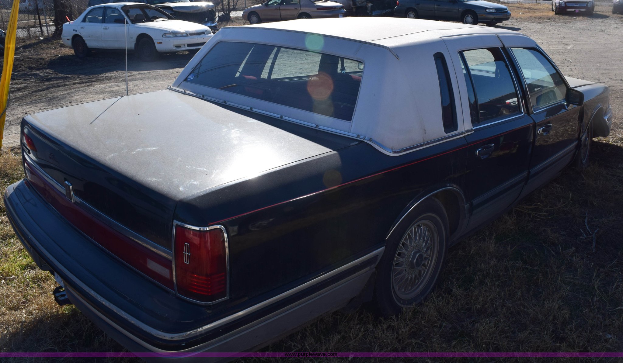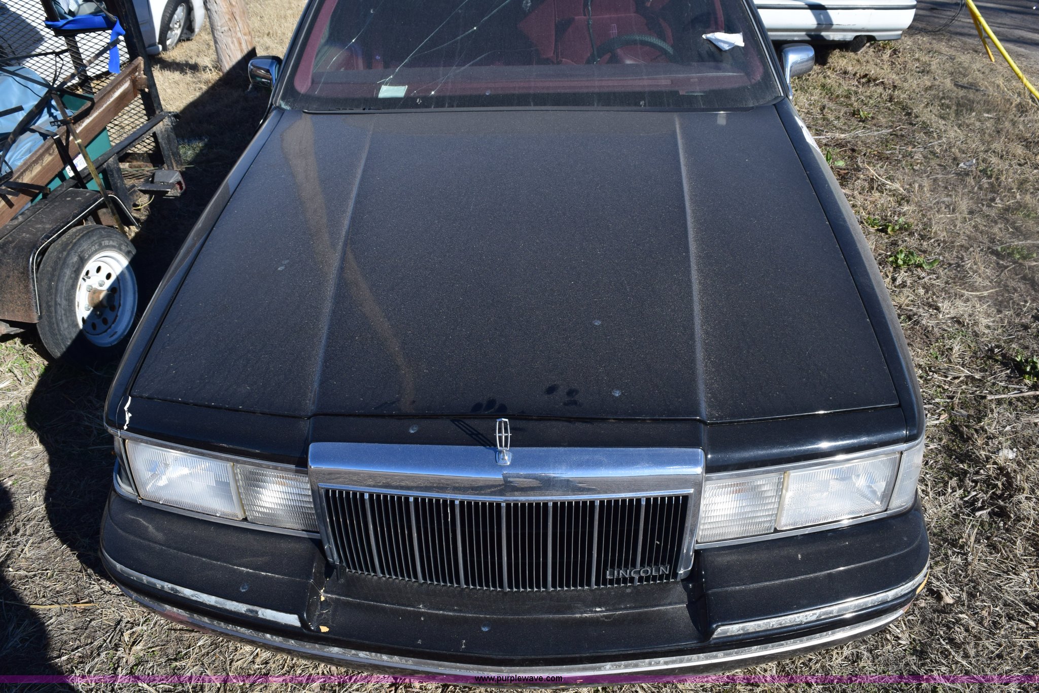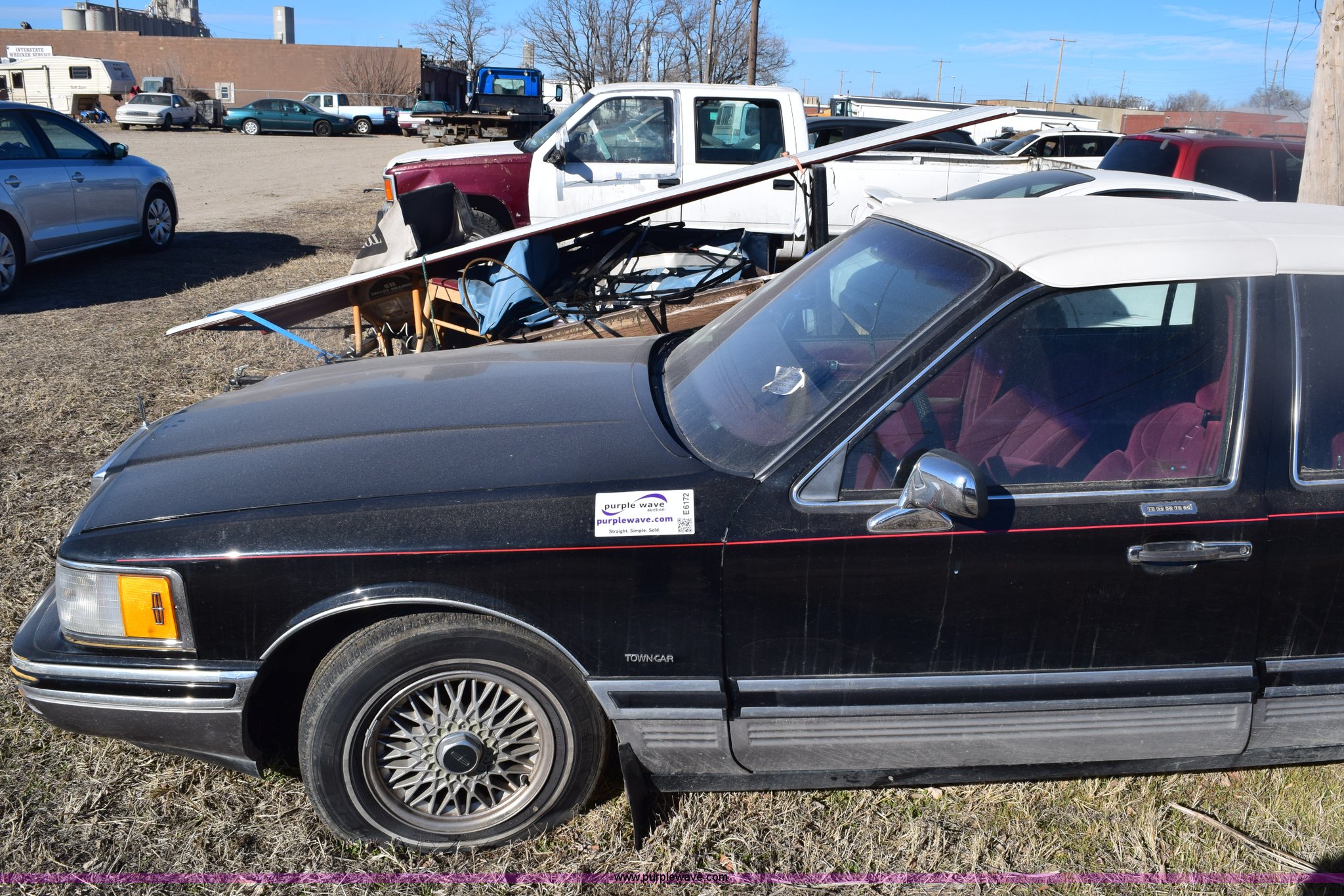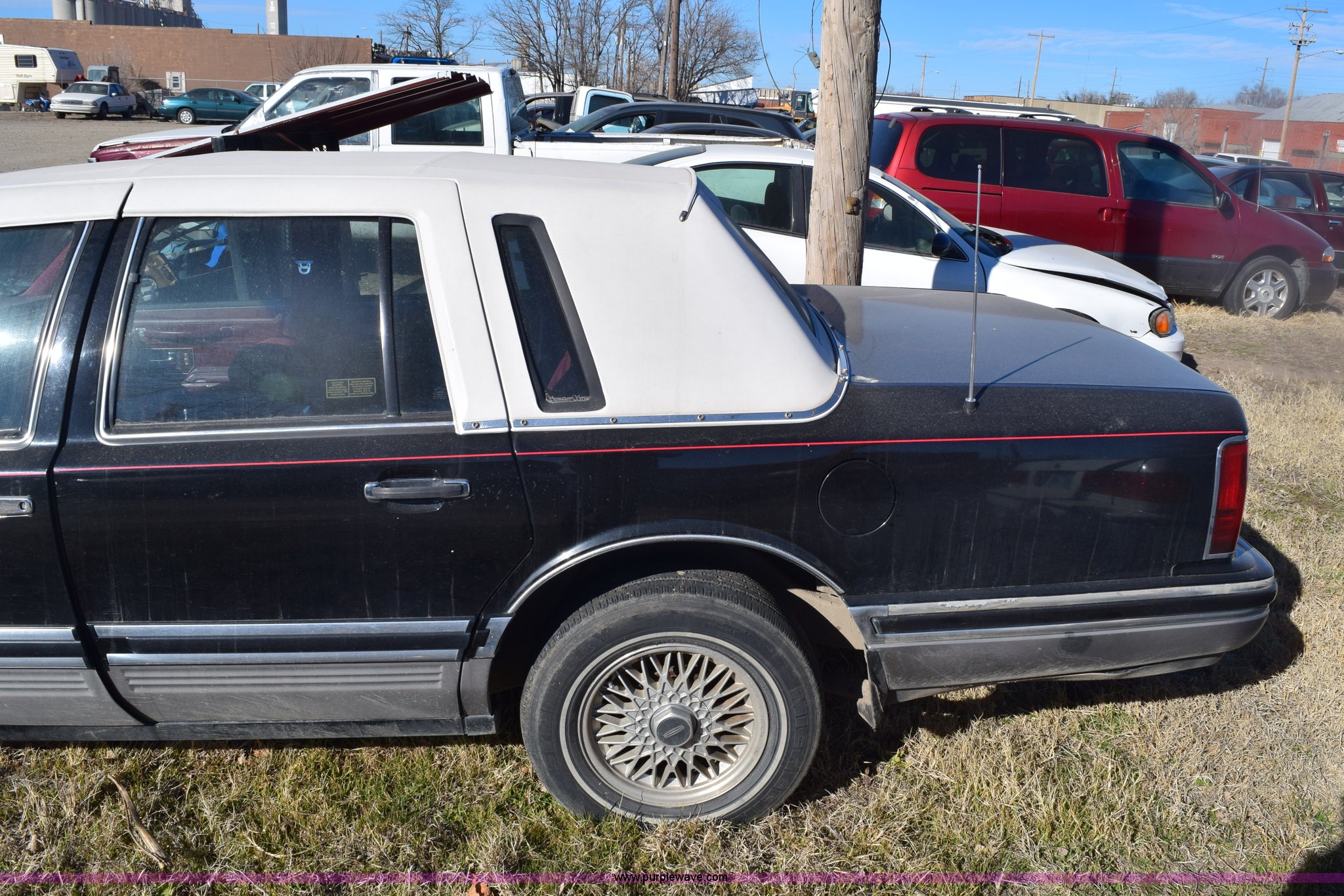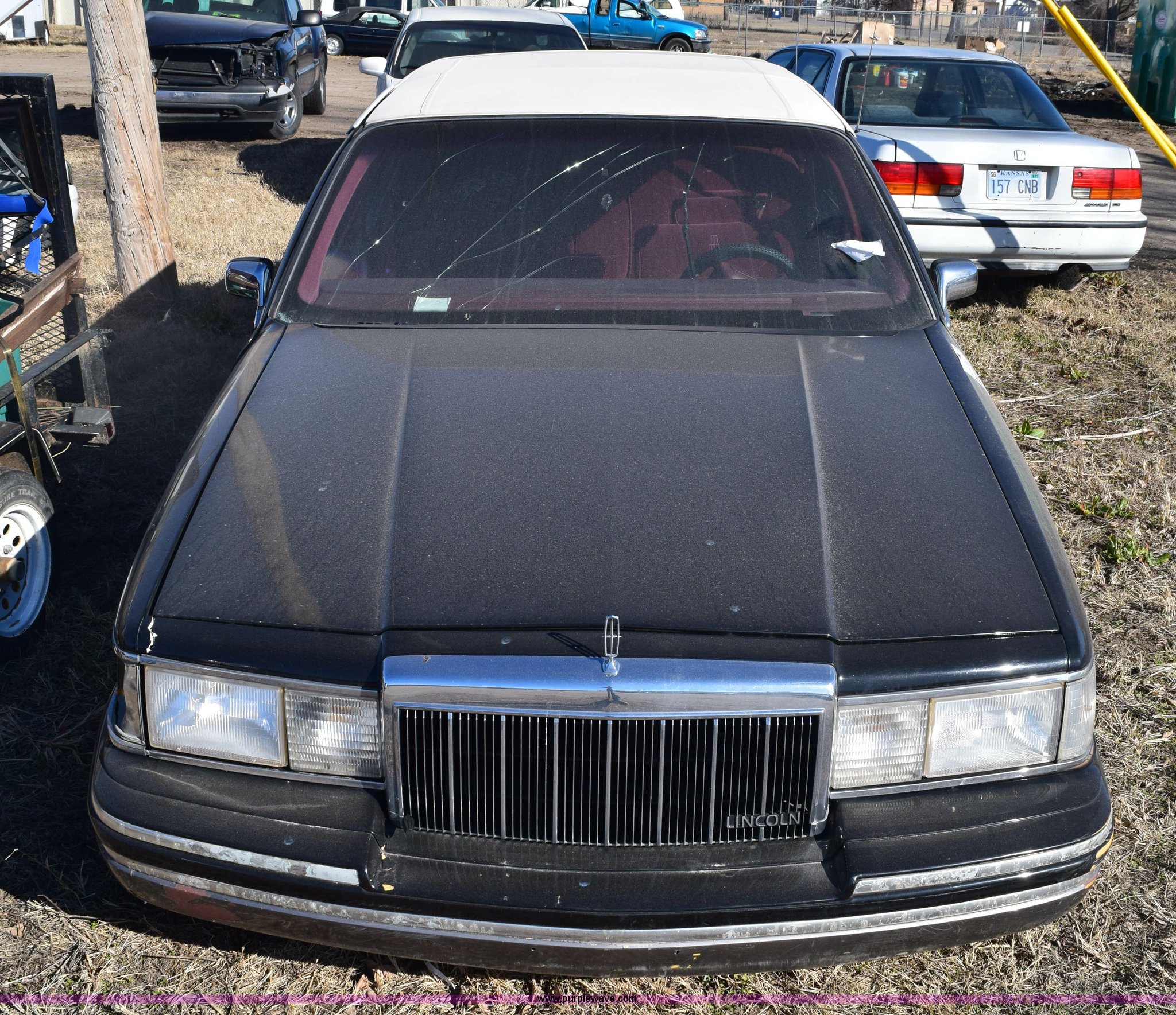Purple Wave is selling a used Passenger Vehicle in Kansas. This item is a 1991 Lincoln Town Car Signature with the following: Unknown miles on odometer, 4.6L V8 SOHC 16V gas engine, Automatic transmission, AC and heat, Tilt, Cruise, Power windows, locks, mirrors, and seats, Cloth interior, Contents included, 215/70R15 tires, Radio face plate missing, Windshield cracked, Interior/exterior cosmetic damage, Passenger door dented, Dings and dents, Seats burned, Case# 14C81797