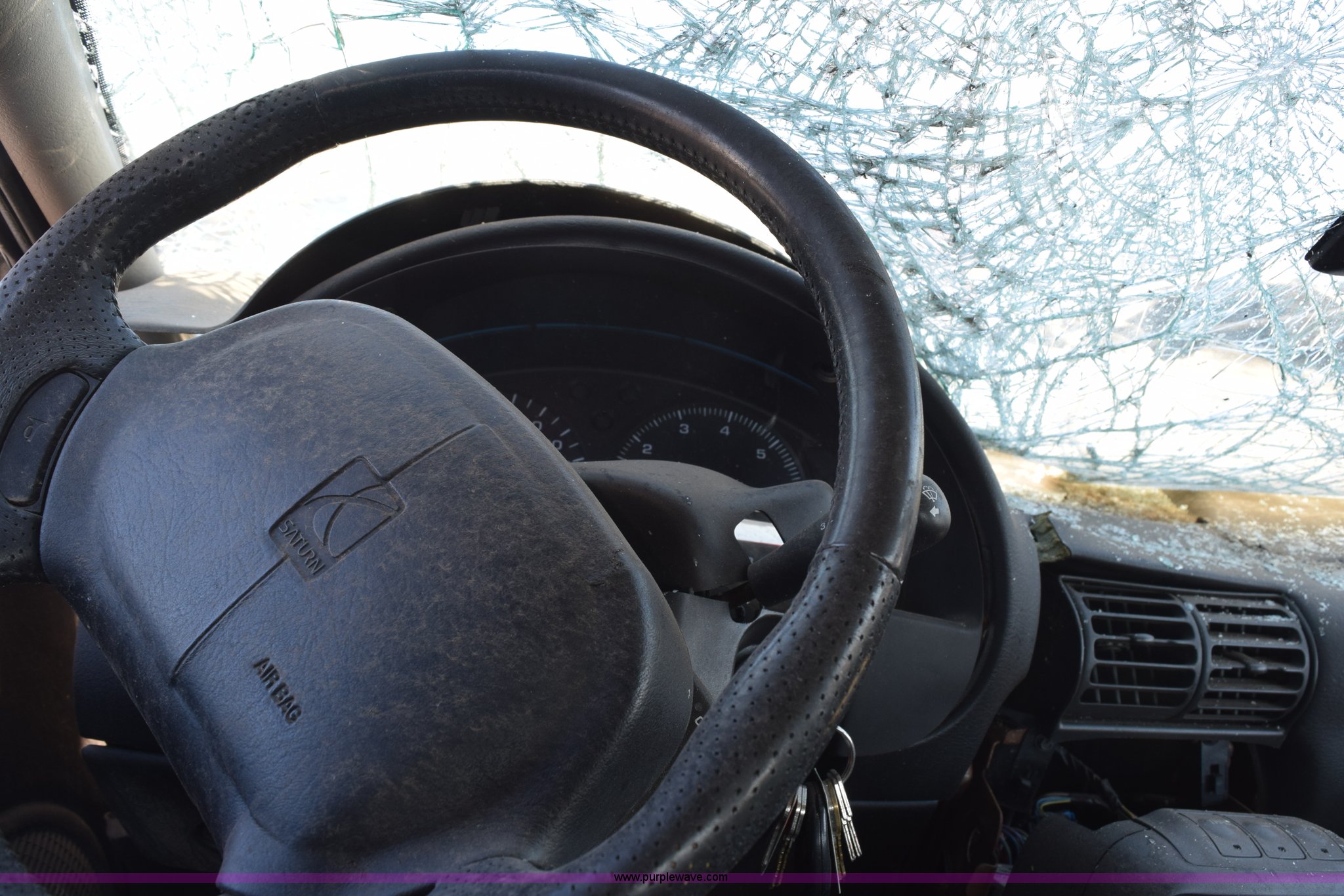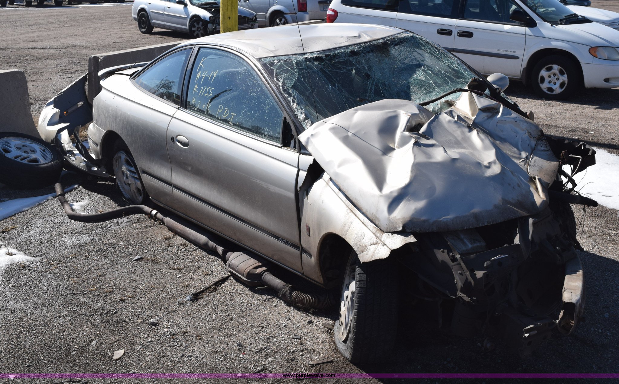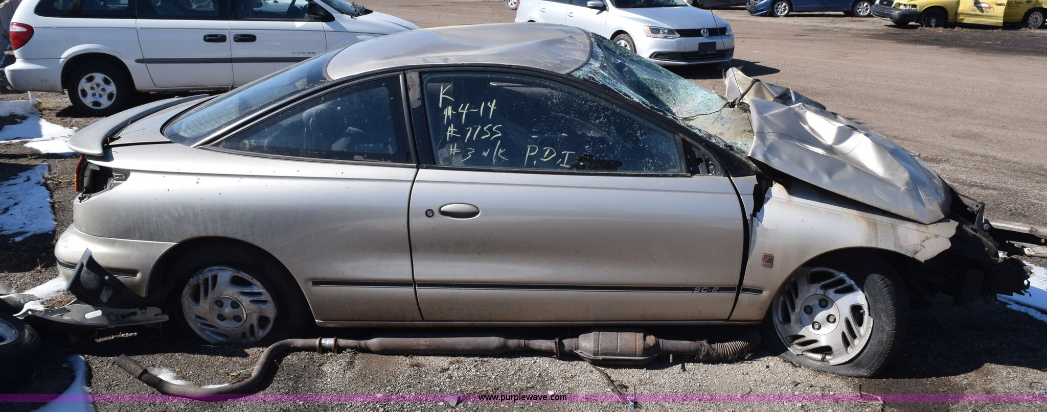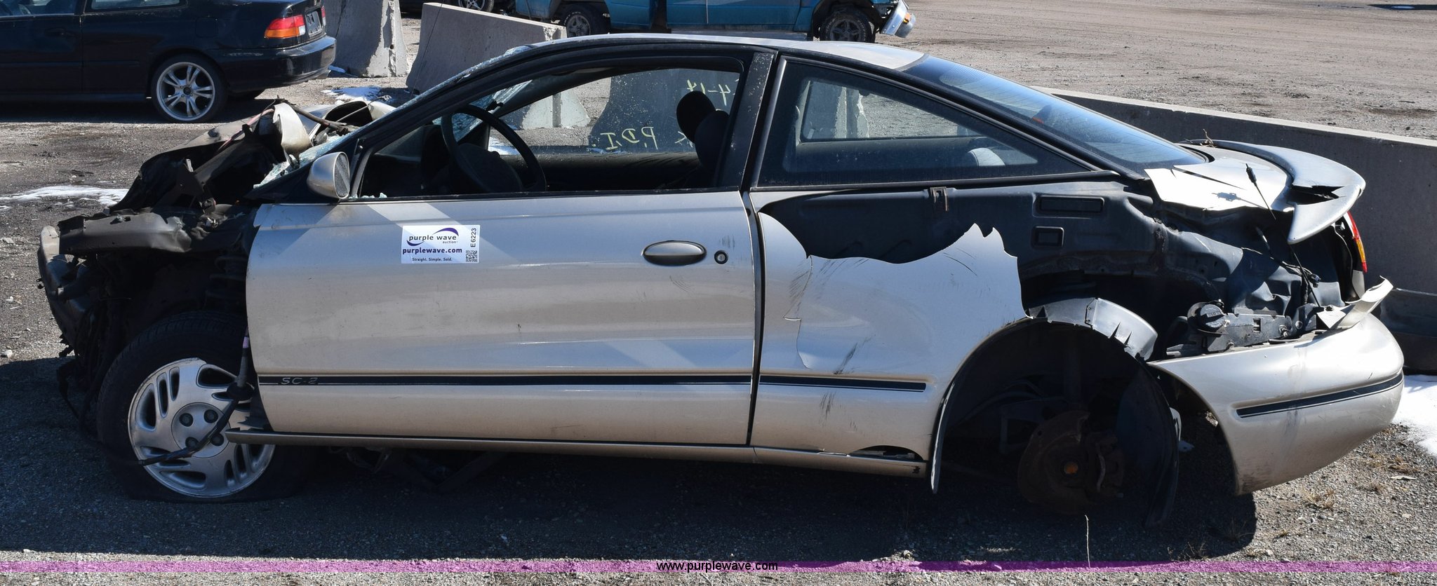 Purple Wave is selling a used Passenger Vehicle in Kansas. This item is a 1997 Saturn SC SC2 with the following: 164,084 miles on odometer, 1.9L L4 DOHC 16V gas engine, Automatic transmission, AC and heat, AM/FM/CD, Manual windows, Power locks, Cloth interior, 195/60R15 tires, Interior/exterior cosmetic damage, Collision damage, wrecked, Broken windshield, Taillights missing, One wheel removed, Door will not open, Case# 14C520297