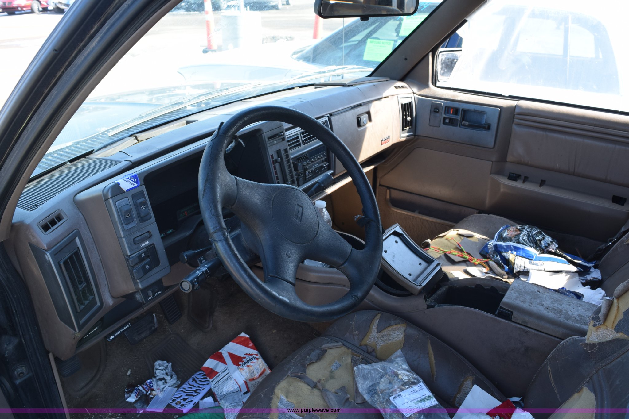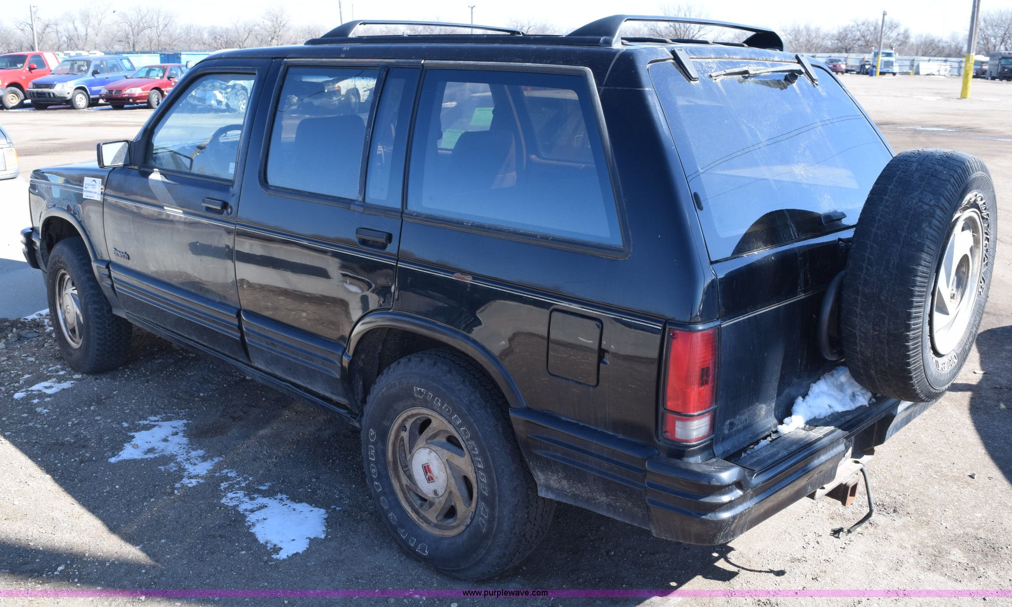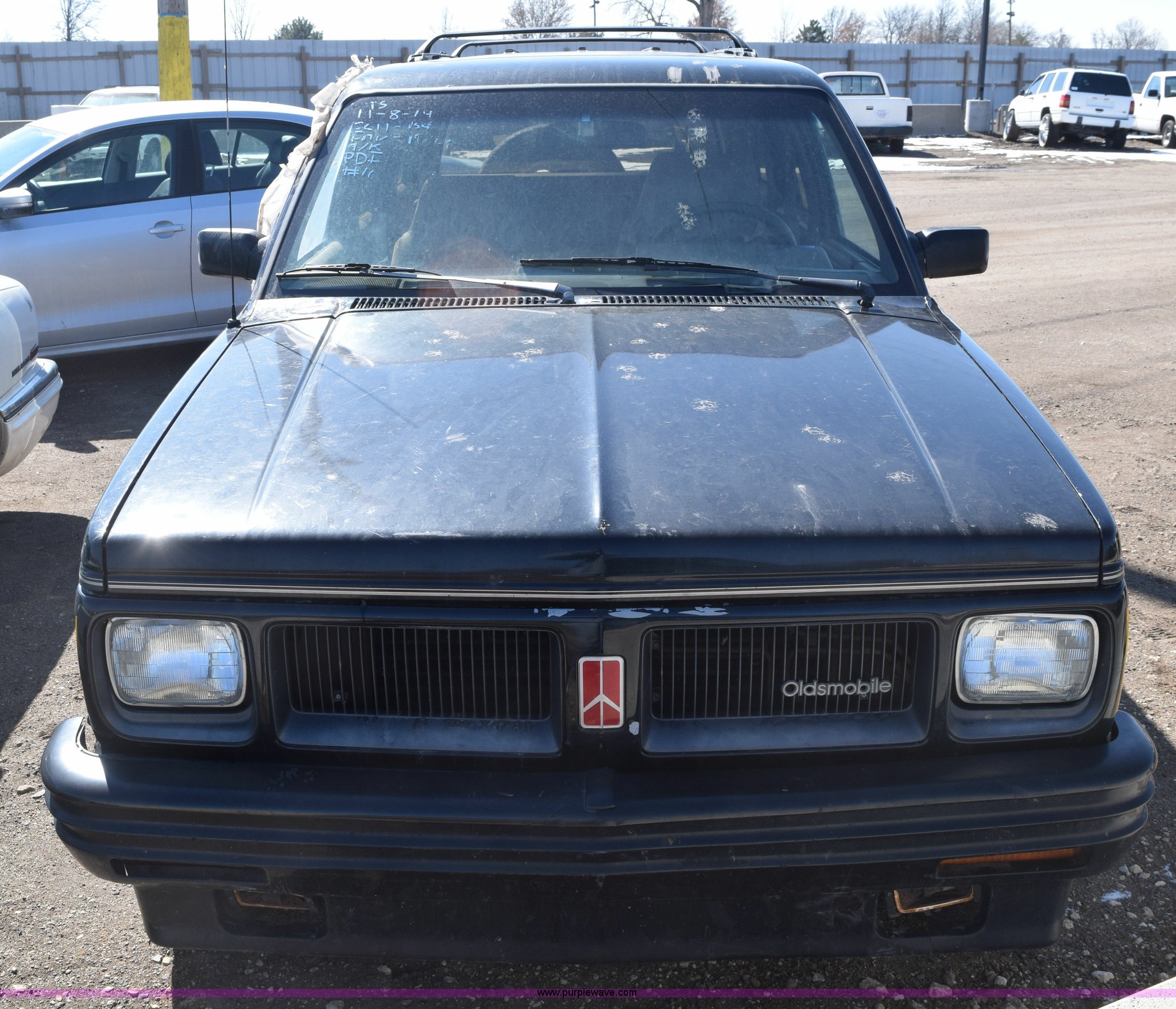 Purple Wave is selling a used Passenger Vehicle in Kansas. This item is a 1992 Oldsmobile Bravada SUV with the following: Unknown miles on odometer, 4.3L V6 OHV 12V gas engine, Automatic transmission, AC and heat, Cruise, AM/FM/cassette, Power windows, locks, and seats, Leather interior, Receiver hitch, Trailer wiring, P235/75R15 tires, Passenger window broken, Interior/exterior cosmetic damage, Seat torn, Rust, Dents and scratches, Contents included, Case# 14C075253