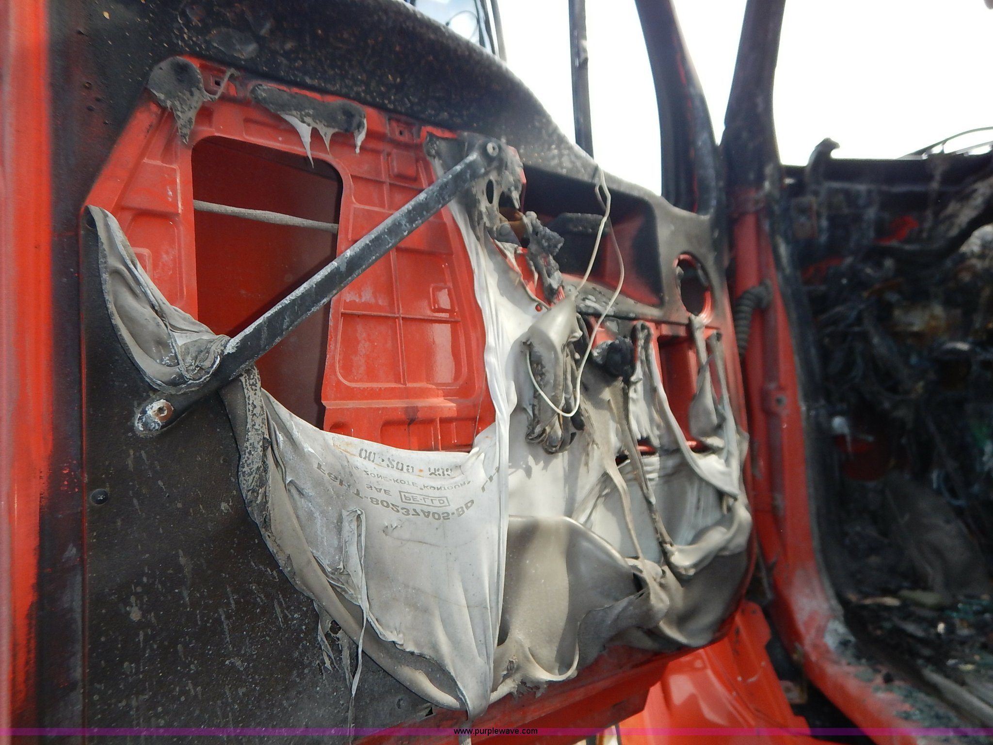 2001 Sterling LT7500 dump truck. 186,077 miles on odometer, Caterpillar 3126 7.2L L6 diesel engine, Automatic transmission, AM/FM/cassette, 13'L x 8'W dump bed Nine cubic yard capacity, Rear hydraulic connections, 9' spreader, Flink snow plow bracket Hydraulic connections, Underside storage box, Block heater, Trailer wiring, Pintle hitch, Walking beam suspension, 275/80R22.5 tires Tires flat, GVWR 53,200 lbs, FAWR 13,200 lbs, RAWR 20,000 lbs, Unit wrecked, Extensive interior fire damage, Taillights damaged, Spreader damaged, Rear axles bent, KDOT ID 263-1150. Titles will be distributed after confirmation of payment and removal. 2FZHATAK41AH88777. Kansas Department of Transportation - Topeka. 121 SW 21st Street. Topeka, KS 66612