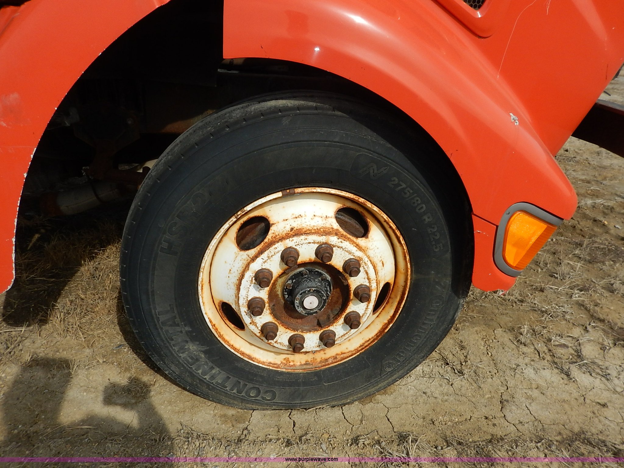 Purple Wave is selling a used Construction Dump Truck in Kansas. This item is a 2001 Sterling LT7500 dump truck with the following: 186,077 miles on odometer, Caterpillar 3126 7.2L L6 diesel engine, Automatic transmission, AM/FM/cassette, 13'L x 8'W dump bed, Nine cubic yard capacity, Rear hydraulic connections, 9' spreader, Flink snow plow bracket, Hydraulic connections, Underside storage box, Block heater, Trailer wiring, Pintle hitch, Walking beam suspension, 275/80R22.5 tires, Tires flat, GVWR 53,200 lbs, FAWR 13,200 lbs, RAWR 20,000 lbs, Unit wrecked, Extensive interior fire damage, Taillights damaged, Spreader damaged, Rear axles bent, KDOT ID 263-1150