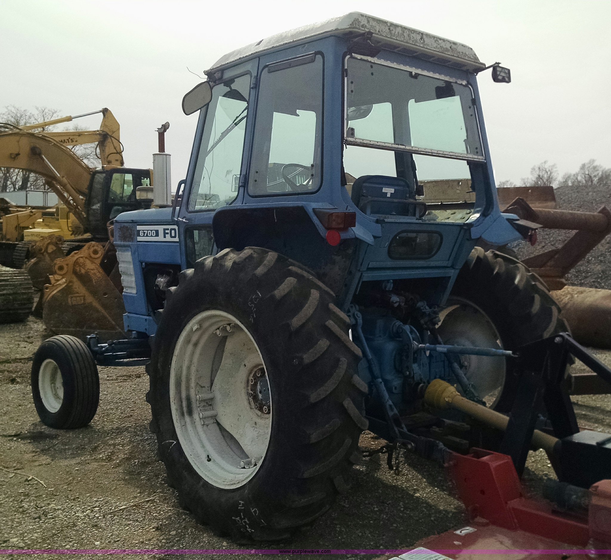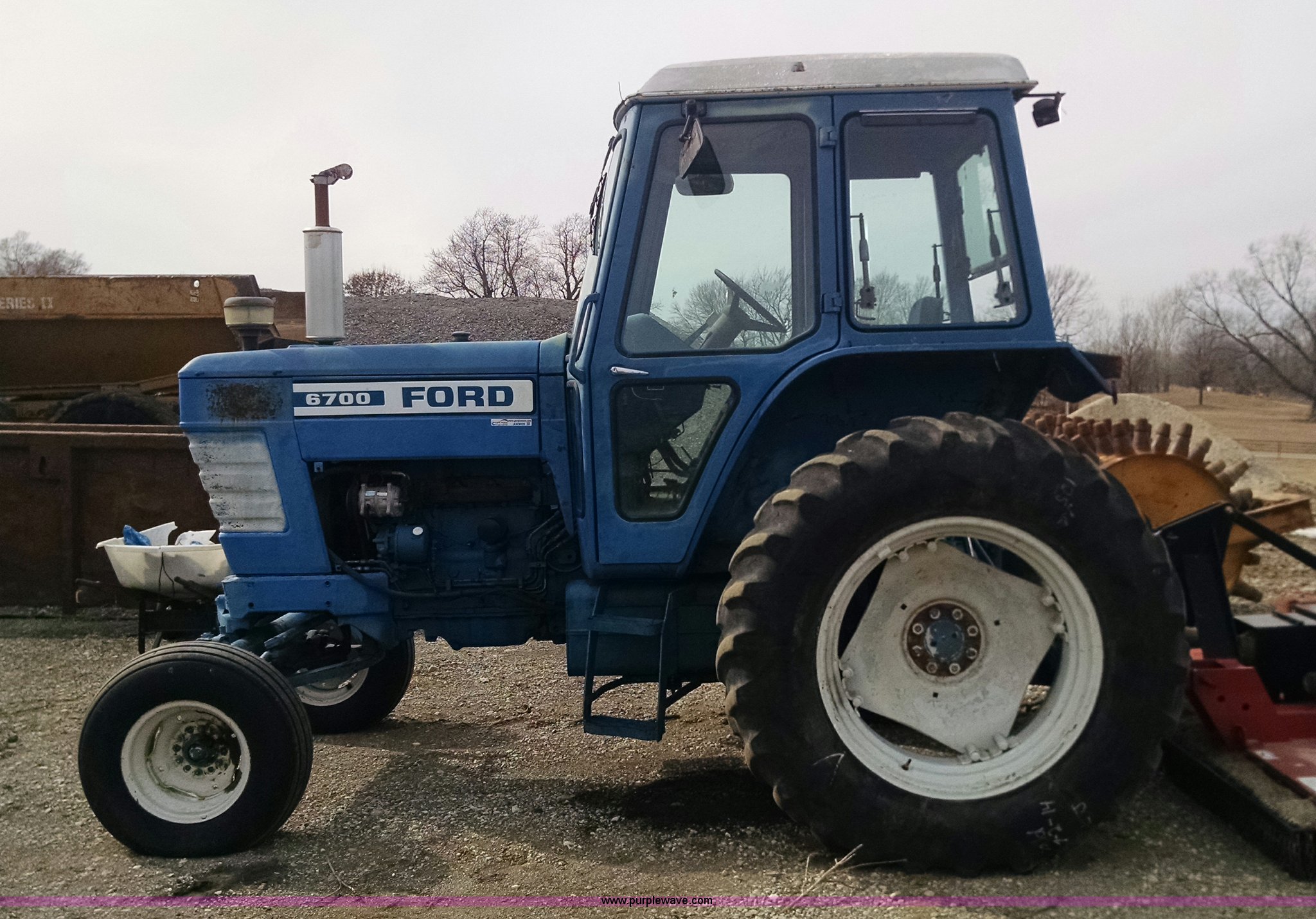 Purple Wave is selling a used Tractor in Missouri. This item is a Ford 6700 tractor with the following: 3,123 hours on meter, Ford 4.2L four cylinder diesel engine, Serial D5NN6015, Dual Power transmission, 16F-4R gears, Heat, Three point, Draw bar, 540 PTO, (2) rear hydraulic remotes, 11-15 front tires, 15.9-34 rear tires, Mower not included