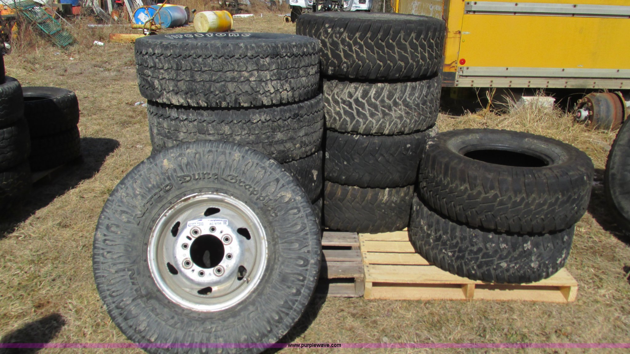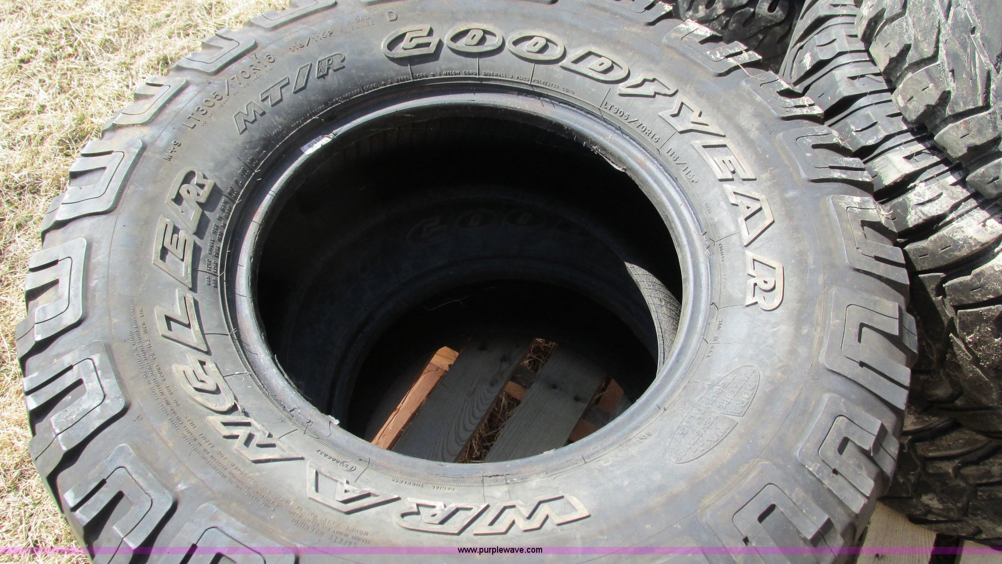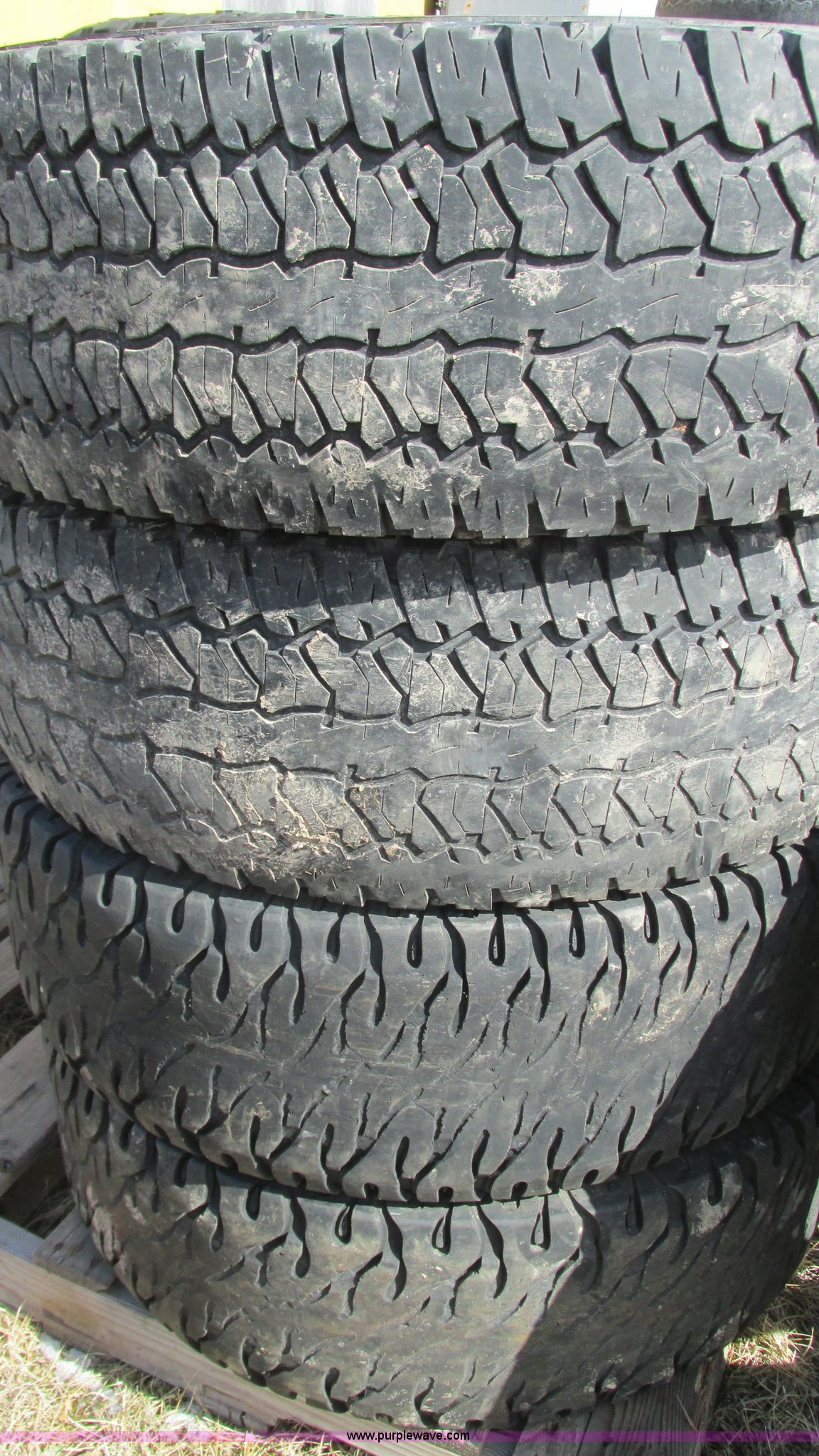 Purple Wave is selling a used Automotive Parts or Acces. in Missouri. This item is a Assorted tires with the following: (5) 315/75R16 tires, One Chevrolet aluminum wheel, (6) 305/70R16 tires