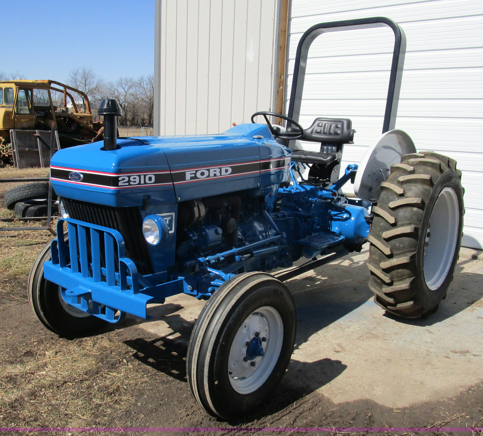 Purple Wave is selling a used Tractor in Kansas. This item is a Ford 2910 tractor with the following: 1,663 hours on meter, Ford three cylinder diesel engine, Serial 8L19, Manual transmission, 8F-2R gears, Recently replaced spring suspension seat, Three point, Top link included, Draw bar, 540 PTO, Recently replaced 6.50-16 front tires, Recently replaced 13.6-28 rear tires, Restoration completed 2015, Recently replaced seat, shift boot, steering wheel, clutch, decals, and paint, Engine overhauled, Serial BB84677