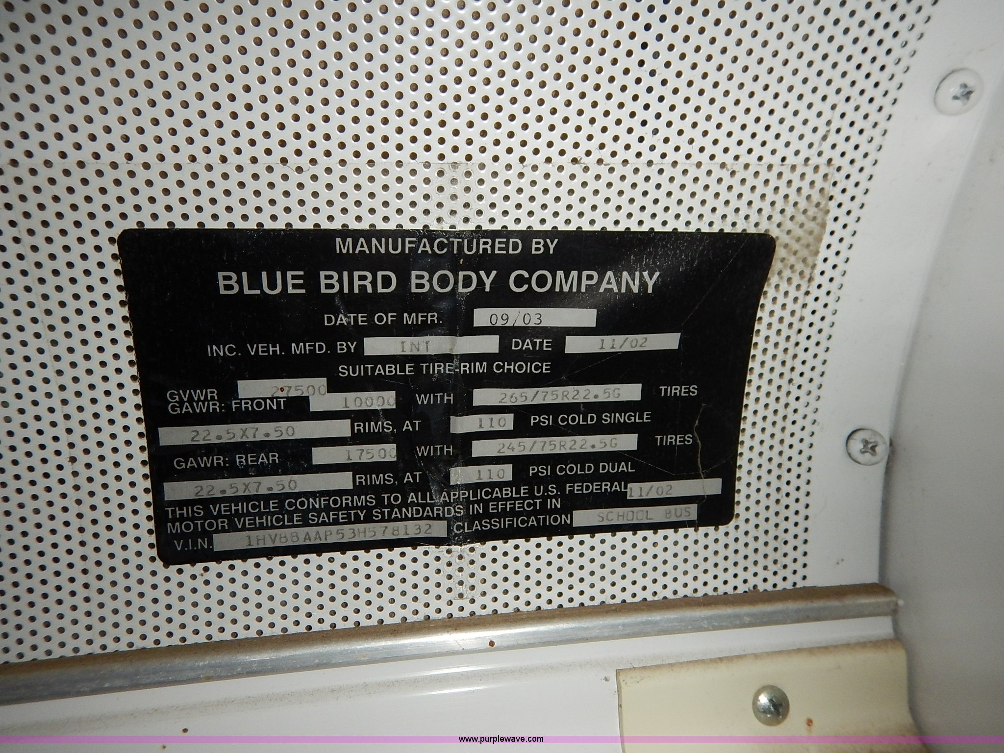 • I5068 image for item I5068 2004 International 3800 Blue Bird school bus