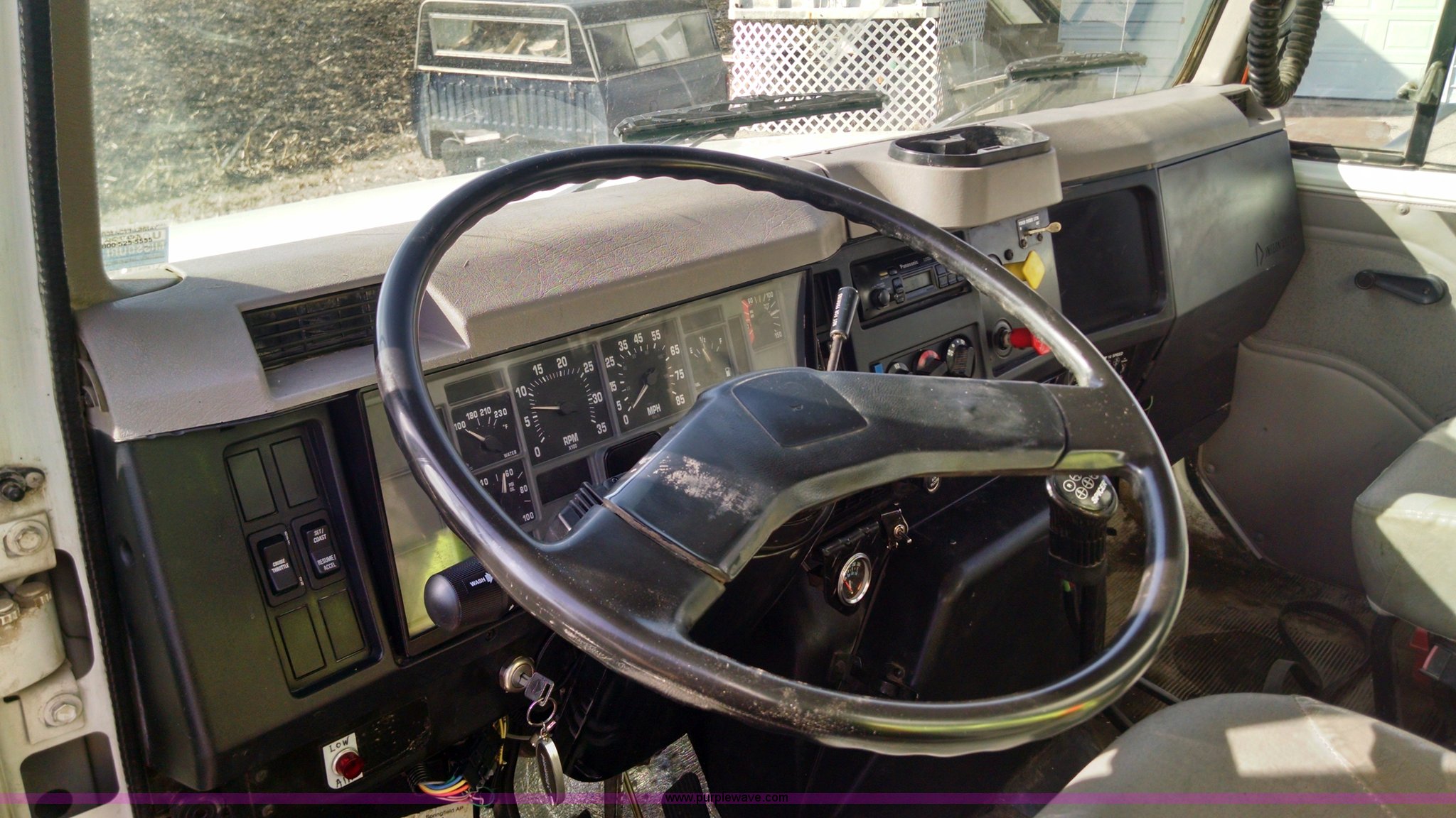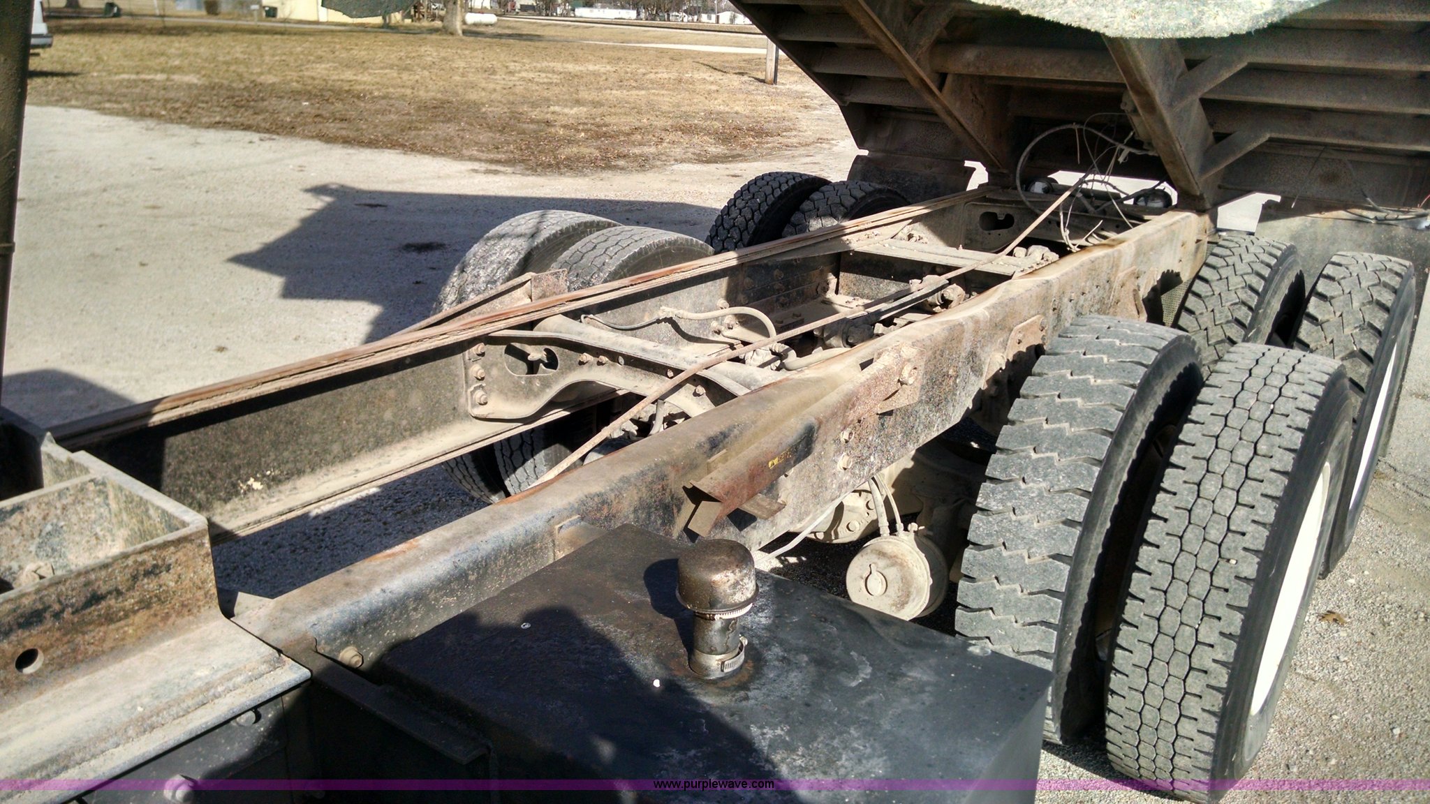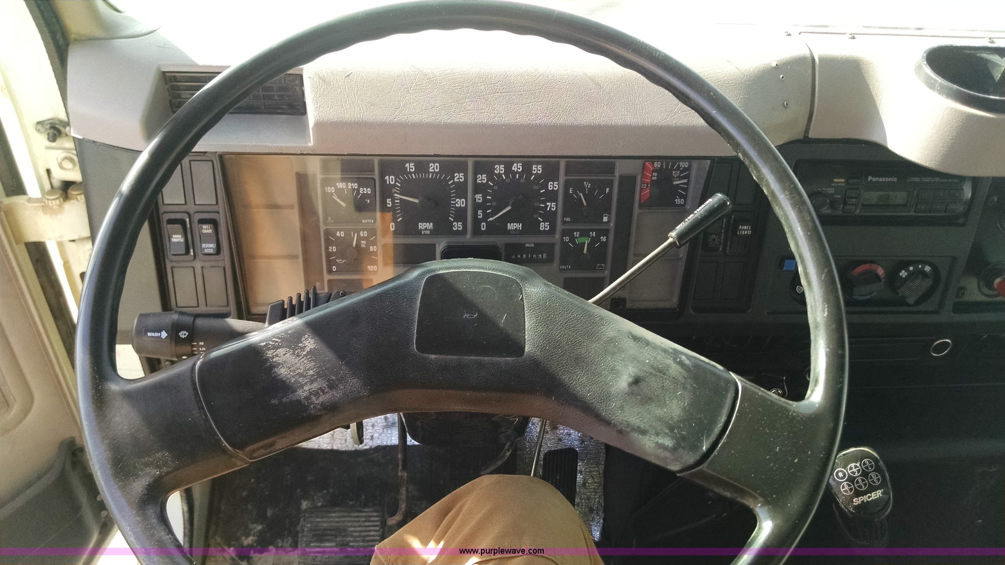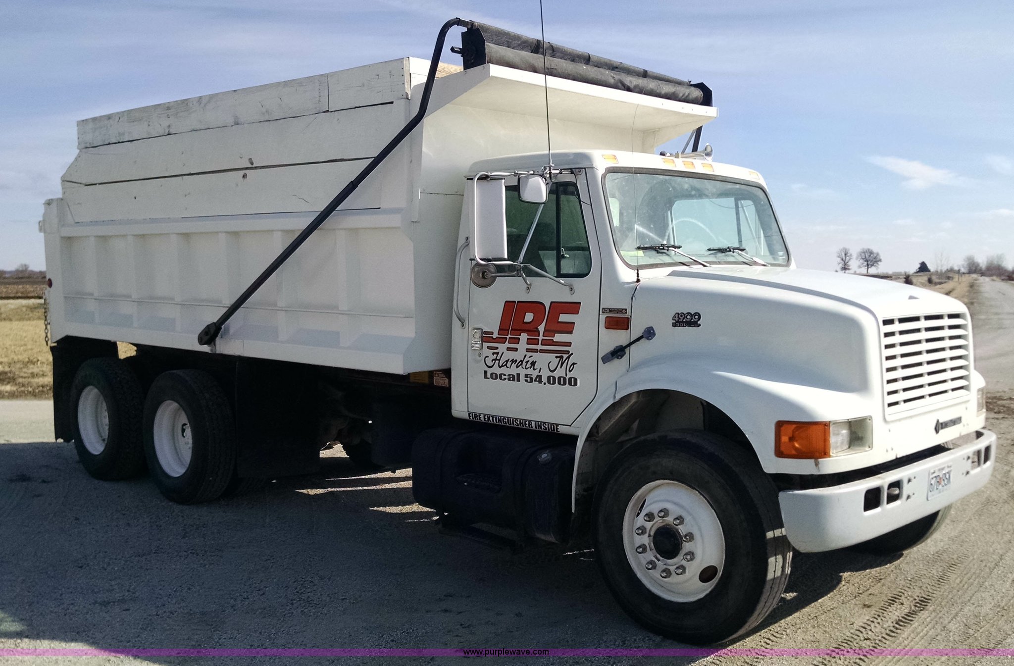 Purple Wave is selling a used Construction Dump Truck in Missouri. This item is a 1997 International 4900 dump truck with the following: 443,153 miles on odometer, International DT530 8.7L L6 diesel engine, Engine overhauled at approximately 250,000 miles, Spicer 10 speed manual transmission, AC and heat, Cruise, AM/FM, Air suspension seat, PTO, 16'L x 8'W dump bed, Air operated end gate, Rollover tarp, 80 gallon fuel tank, Spring suspension, Air brakes, 206" wheelbase, 11R22.5 tires, Radiator, AC compressor, steering gear box, and injectors replaced or repaired approximately two years ago.