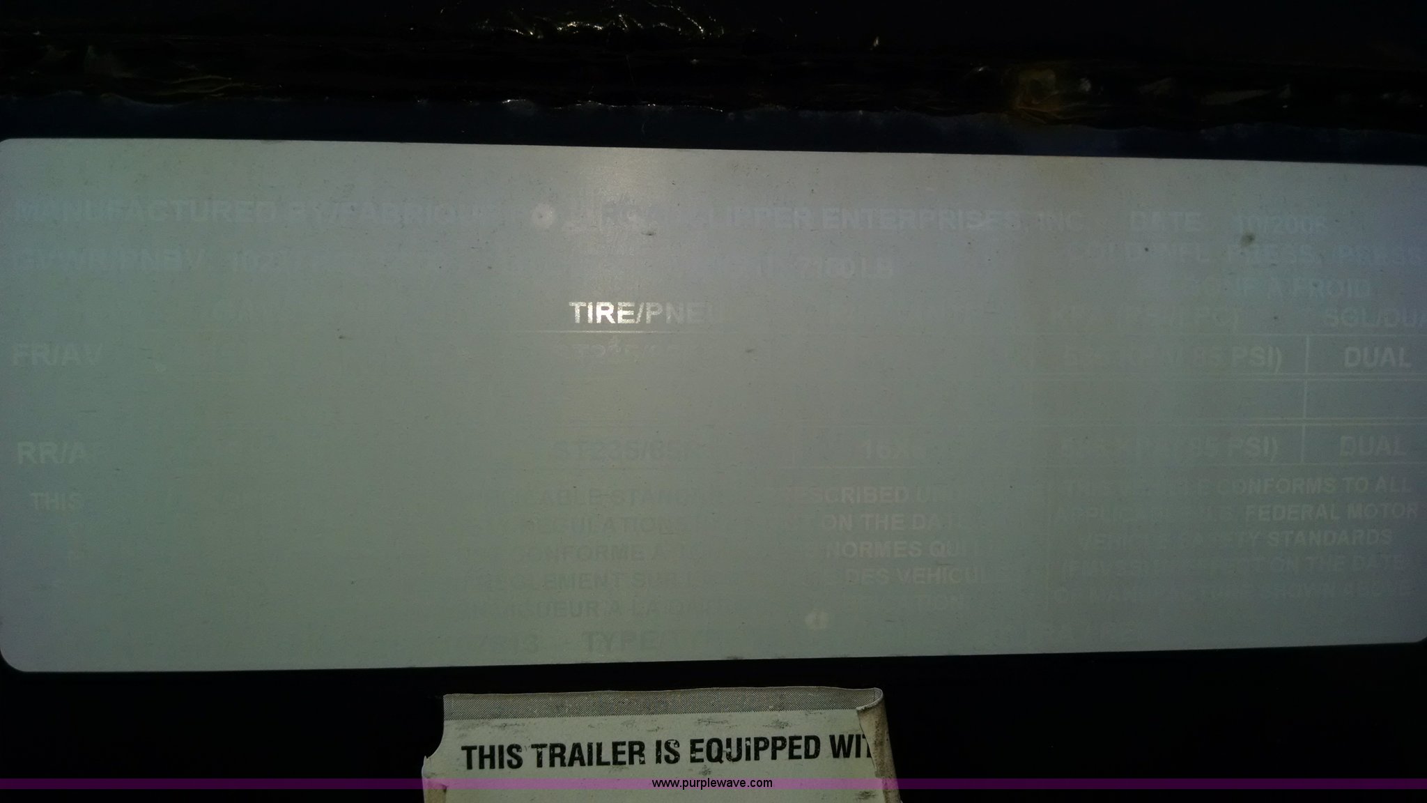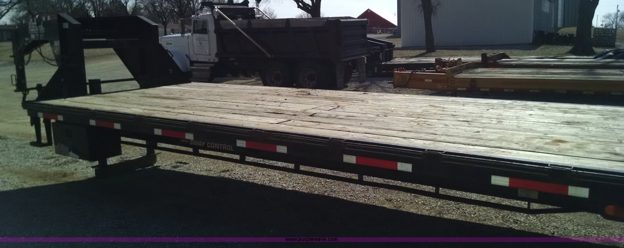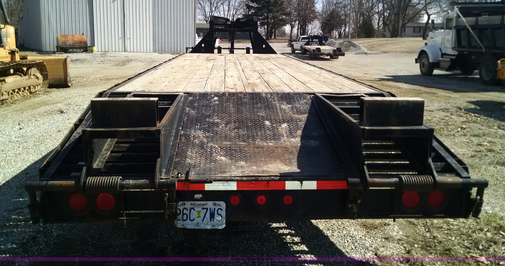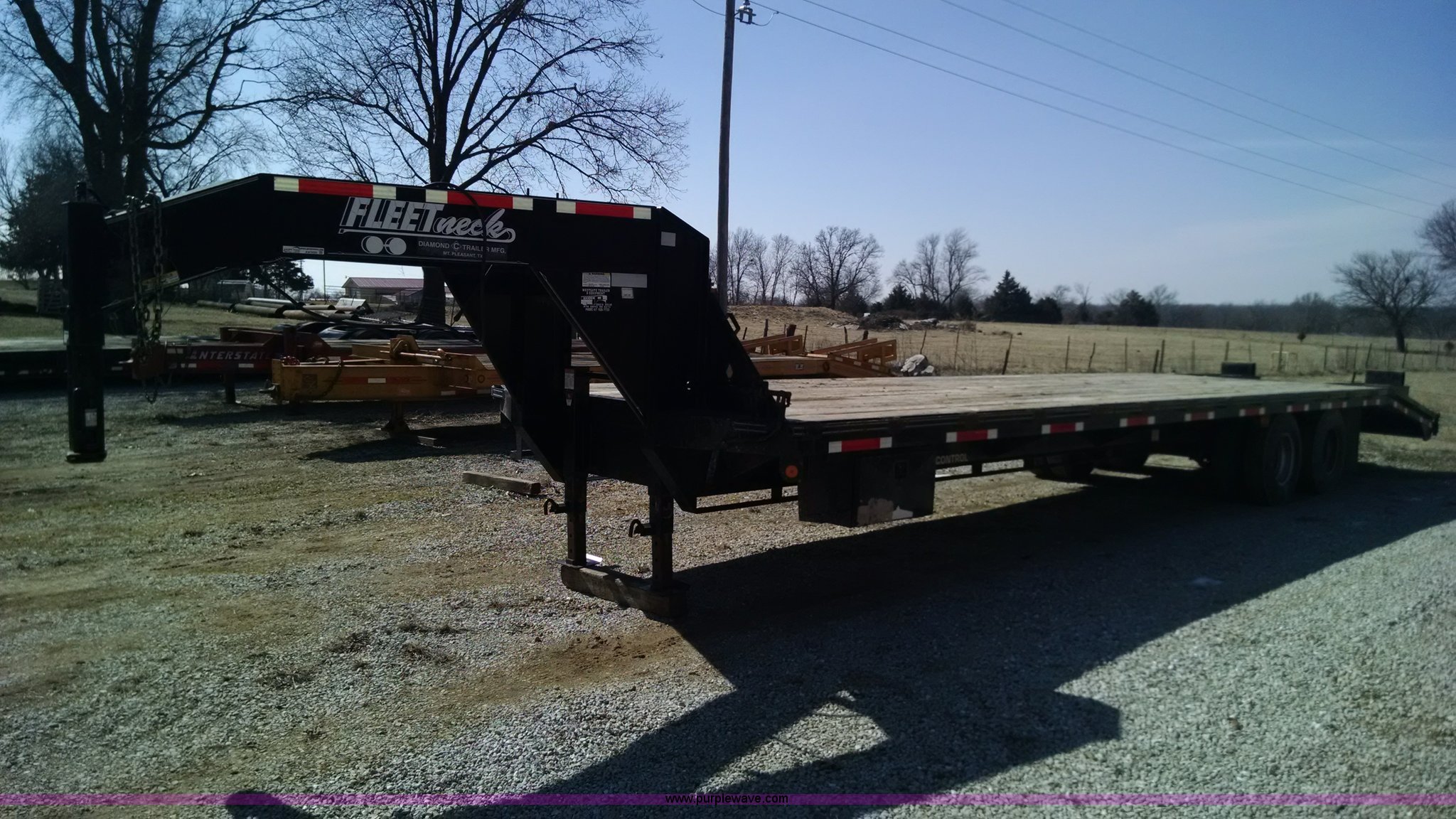 Purple Wave is selling a used Equip. Trailer in Missouri. This item is a 2007 Diamond C Fleetneck gooseneck trailer with the following: 27'L x 101"W deck, 5'L adjustable leveling dovetail, 32' overall length, Stake side pockets, Sway control, Manual jack, Adjustable gooseneck hitch, Electric brakes, 7.50R16 tires