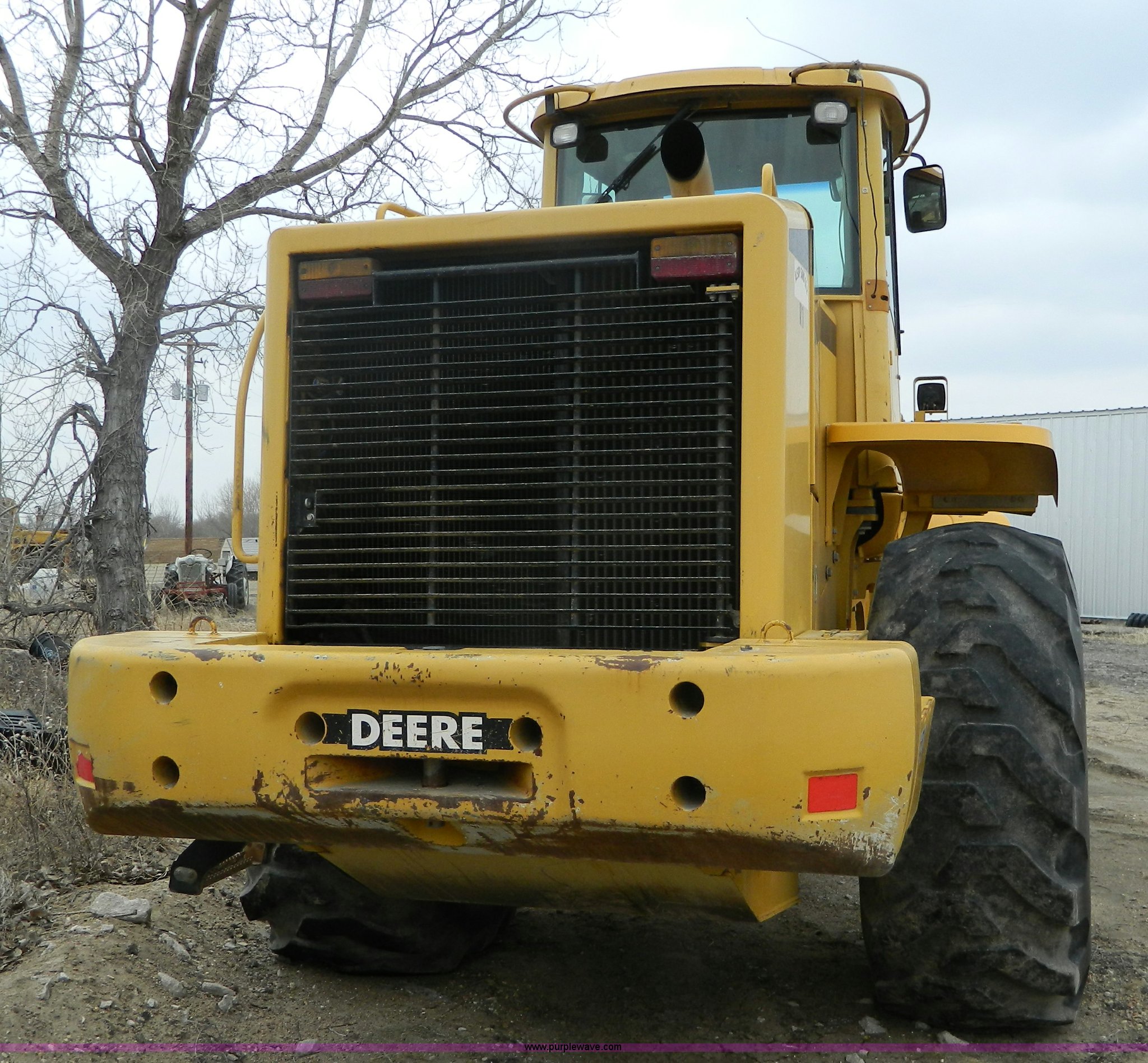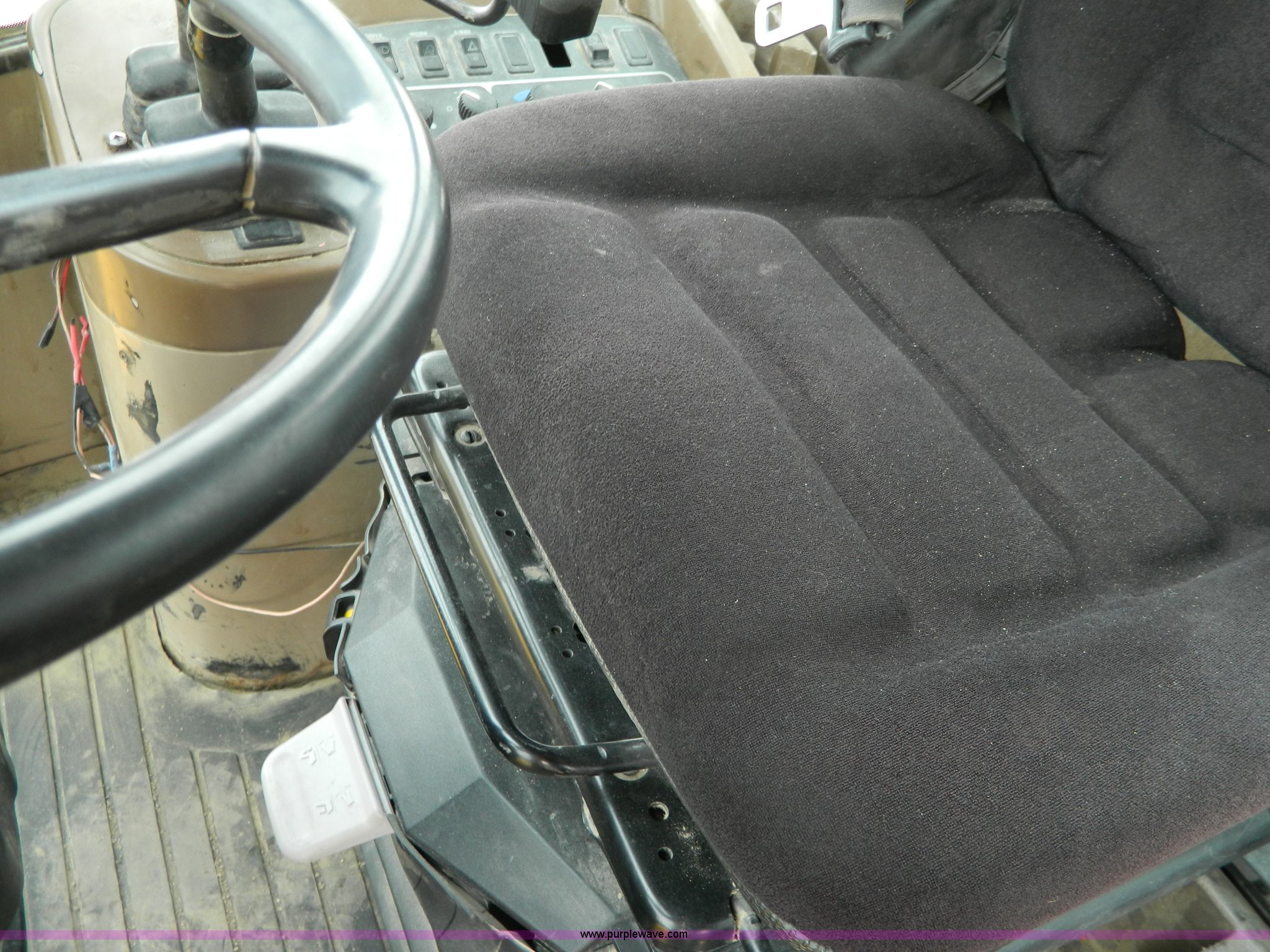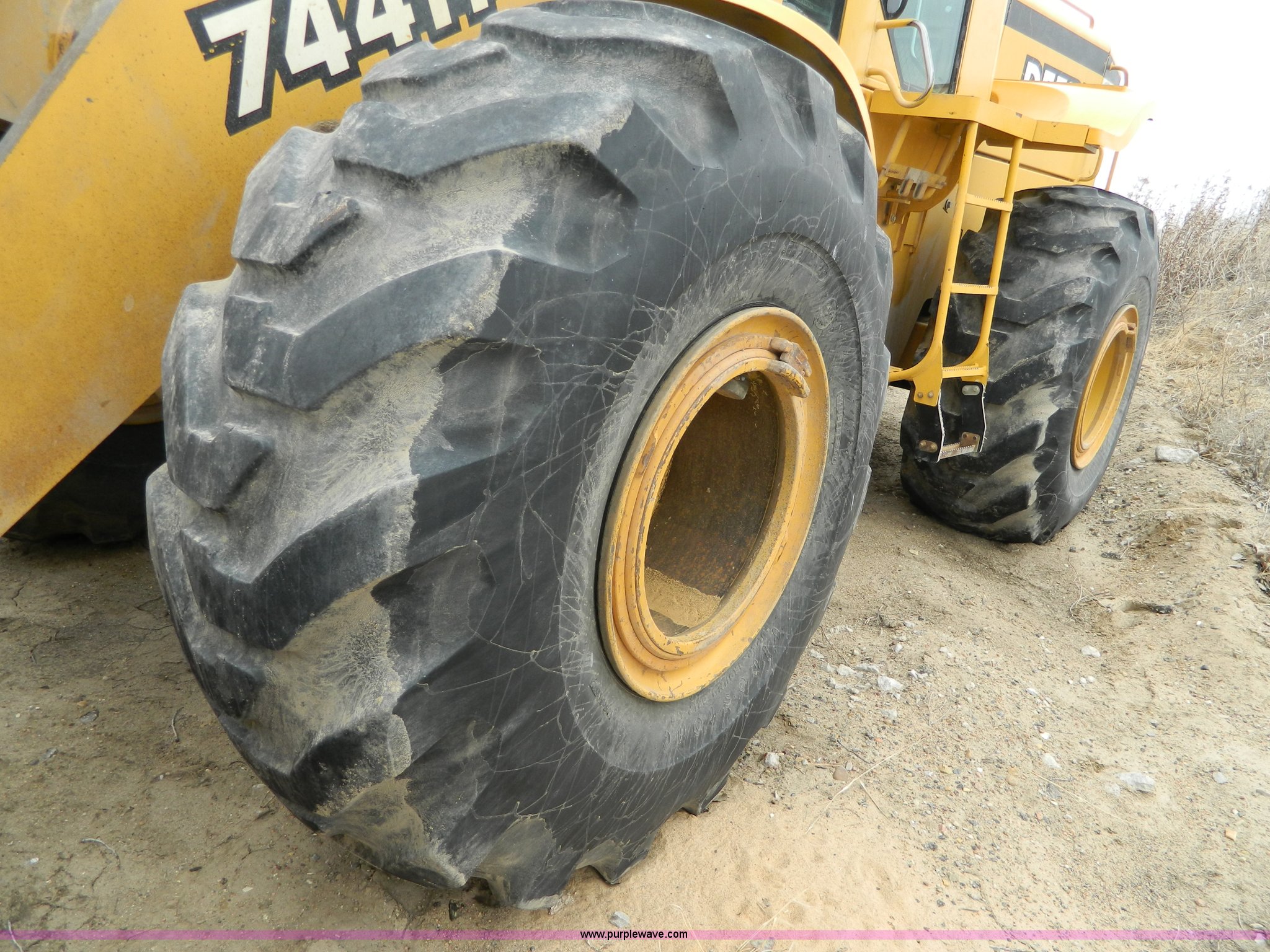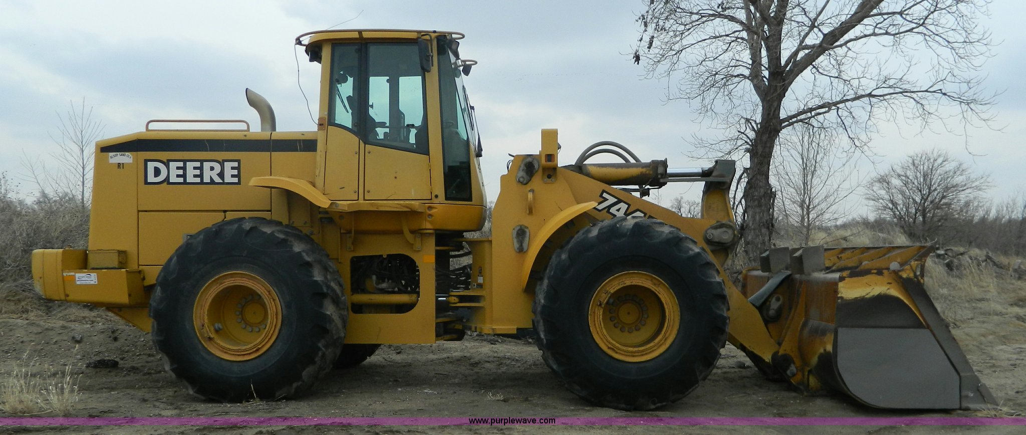 Purple Wave is selling a used Wheel Loader in Kansas. This item is a 2001 John Deere 744H wheel loader with the following: 20,073 hours on meter, John Deere six cylinder diesel engine, 260 HP, Engine overhaul completed at 11,250 hours by CTI Concordia, Powershift transmission, 4F-3R gears, ROPS, AC and heat, AM/FM/Weatherband, Tilt steering wheel, Air suspension seat, EMS panel, Joystick controls, Front and rear work lights, Windshield wipers, Engine enclosures, 129"W bucket, Bolt-on cutting edge, Block heater, Back-up alarm, Rear pin hitch, Firestone 26.5-25 tires, 50,300 lbs. base operating weight, New tires fall of 2014, Service records available, Serial DW744HM578692