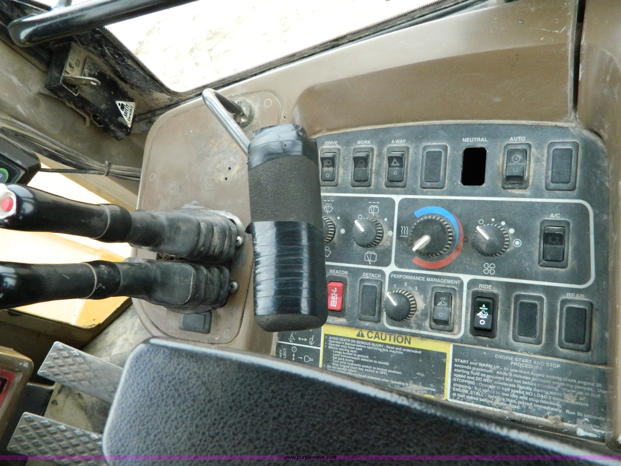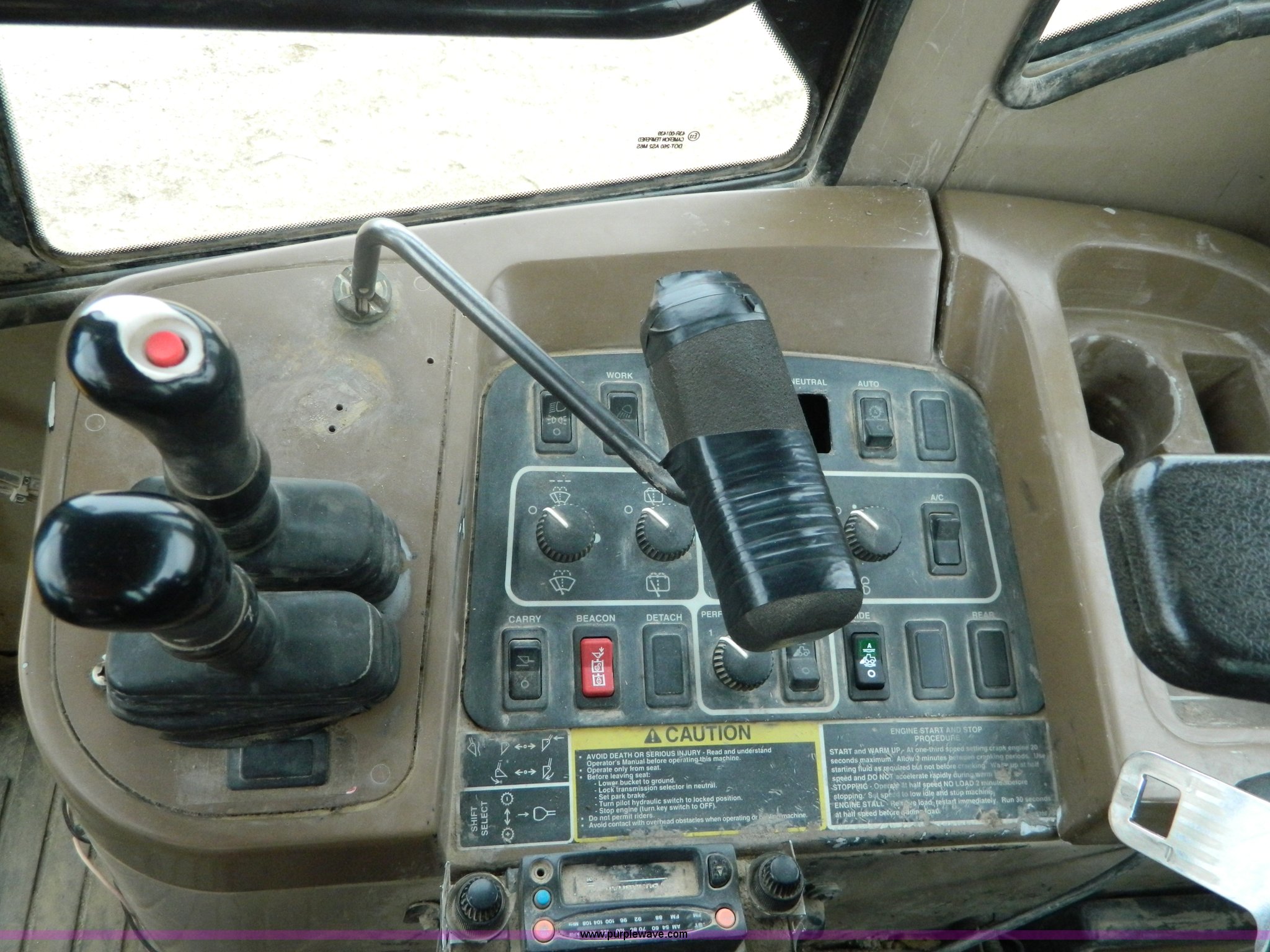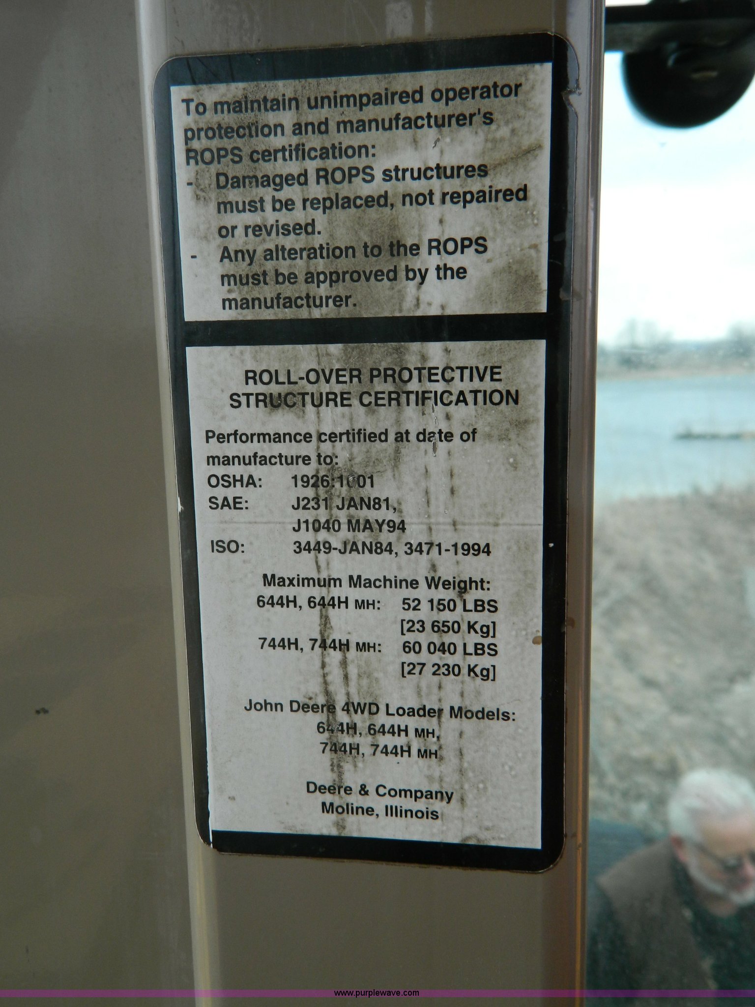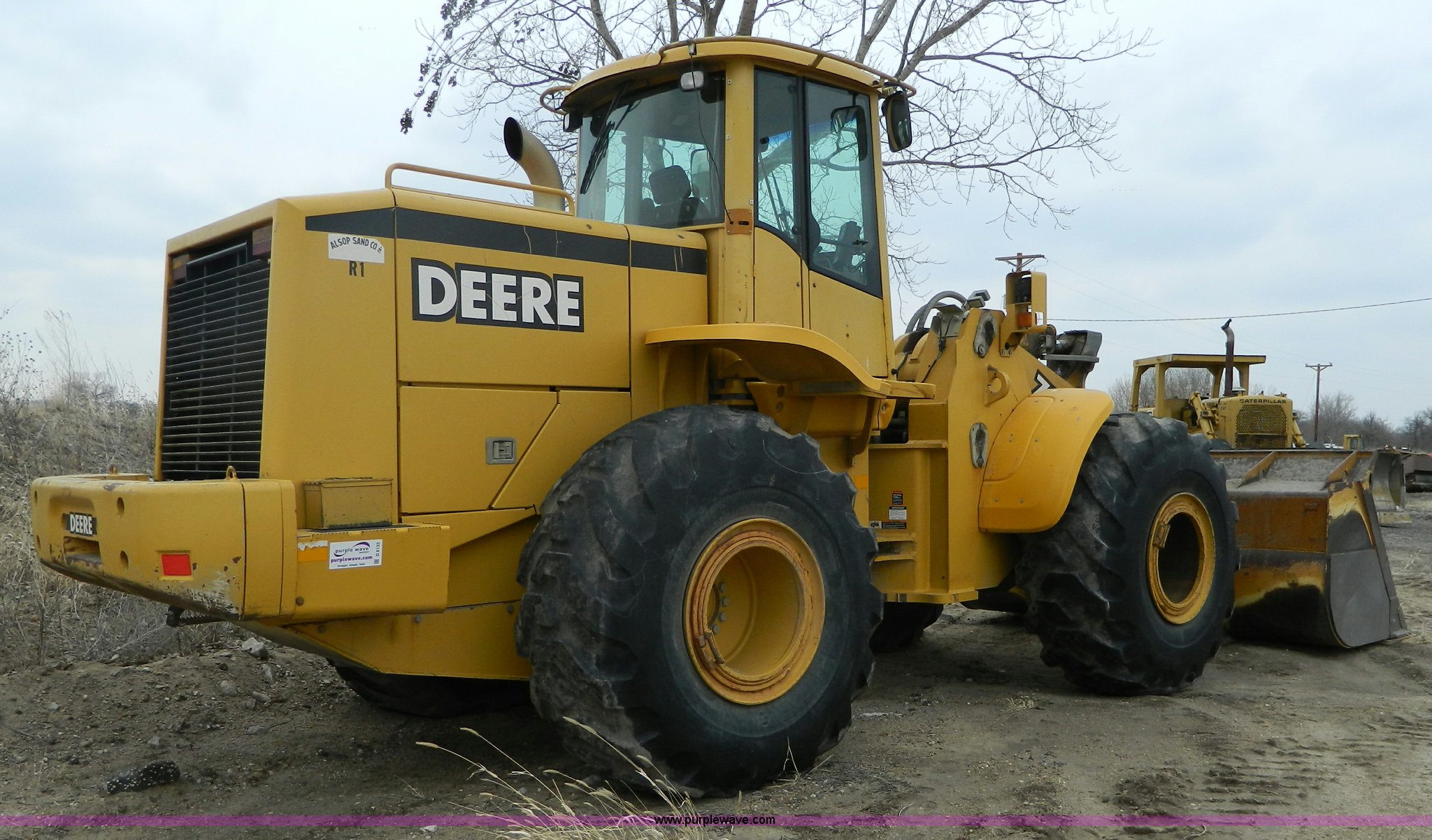 Purple Wave is selling a used Wheel Loader in Kansas. This item is a 2001 John Deere 744H wheel loader with the following: 20,073 hours on meter, John Deere six cylinder diesel engine, 260 HP, Engine overhaul completed at 11,250 hours by CTI Concordia, Powershift transmission, 4F-3R gears, ROPS, AC and heat, AM/FM/Weatherband, Tilt steering wheel, Air suspension seat, EMS panel, Joystick controls, Front and rear work lights, Windshield wipers, Engine enclosures, 129"W bucket, Bolt-on cutting edge, Block heater, Back-up alarm, Rear pin hitch, Firestone 26.5-25 tires, 50,300 lbs. base operating weight, New tires fall of 2014, Service records available, Serial DW744HM578692