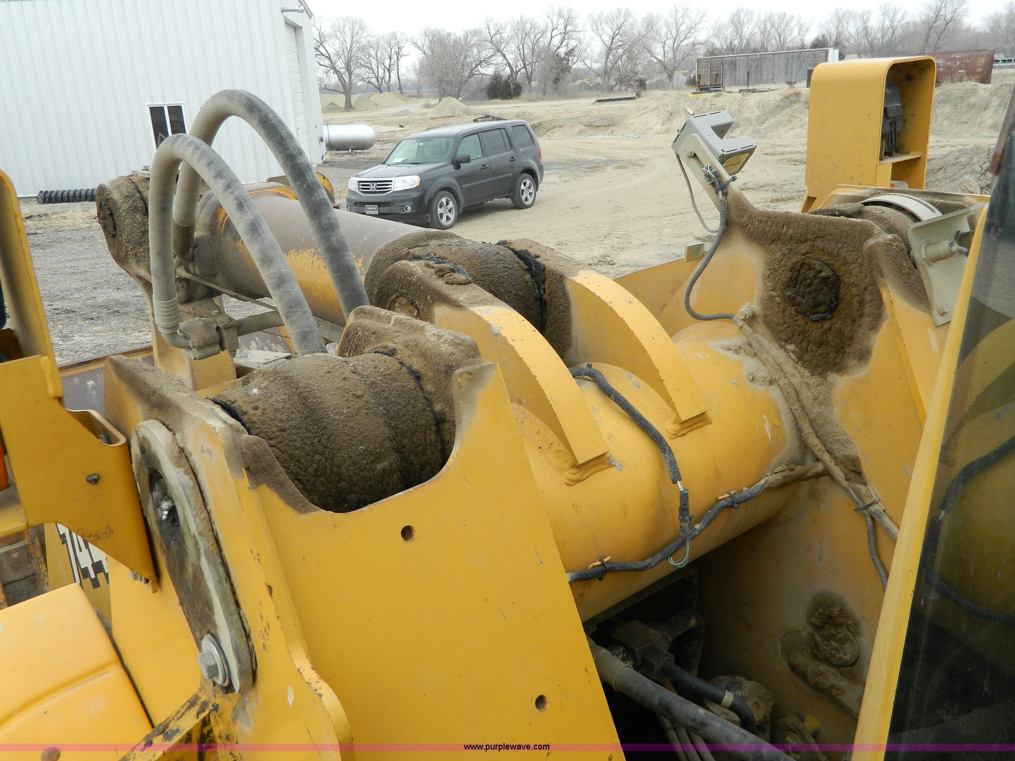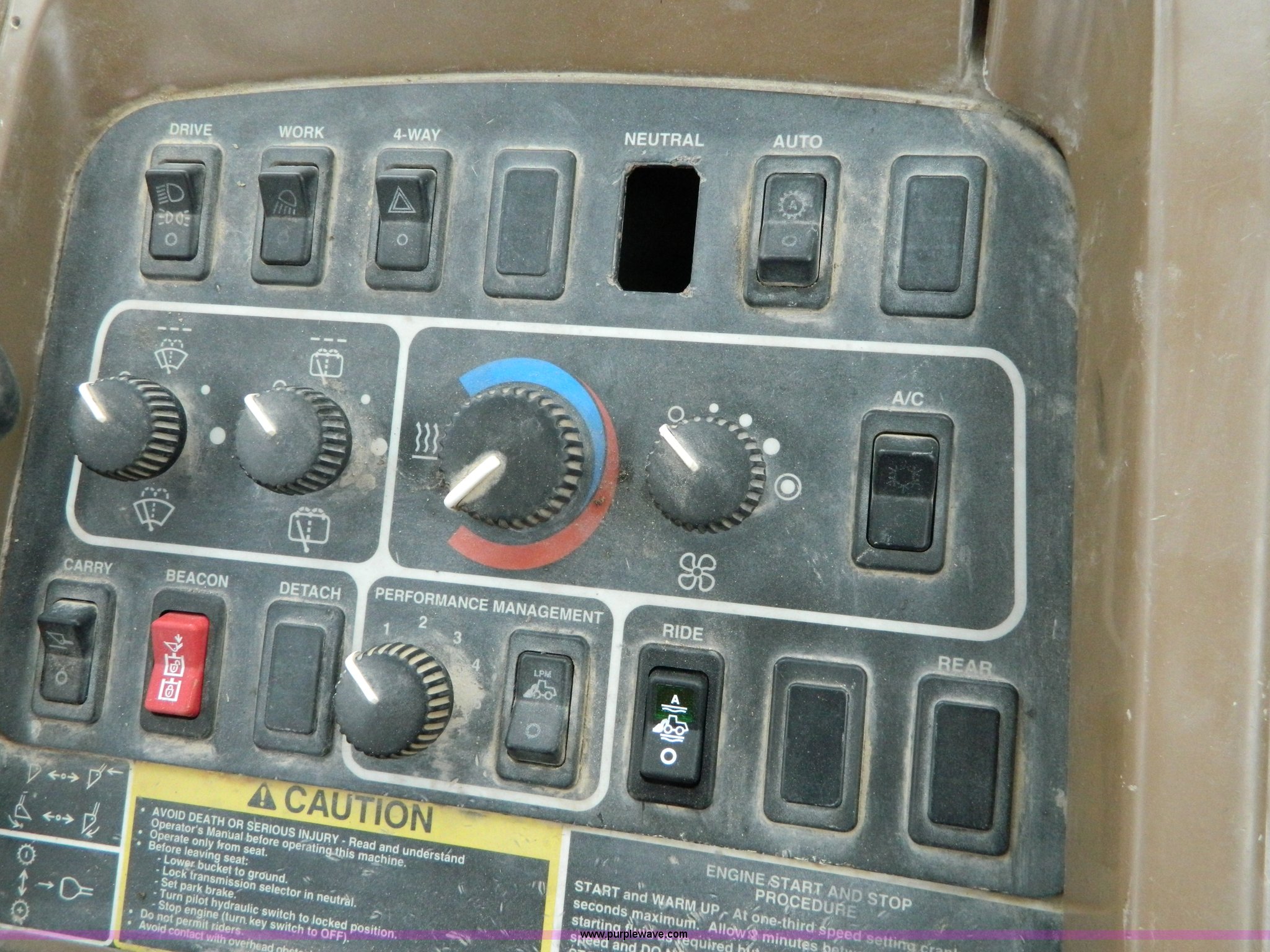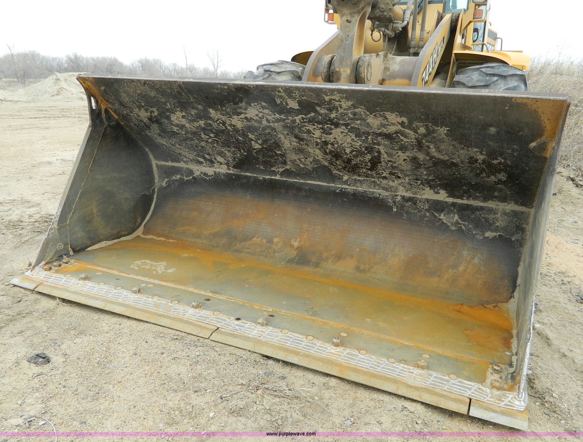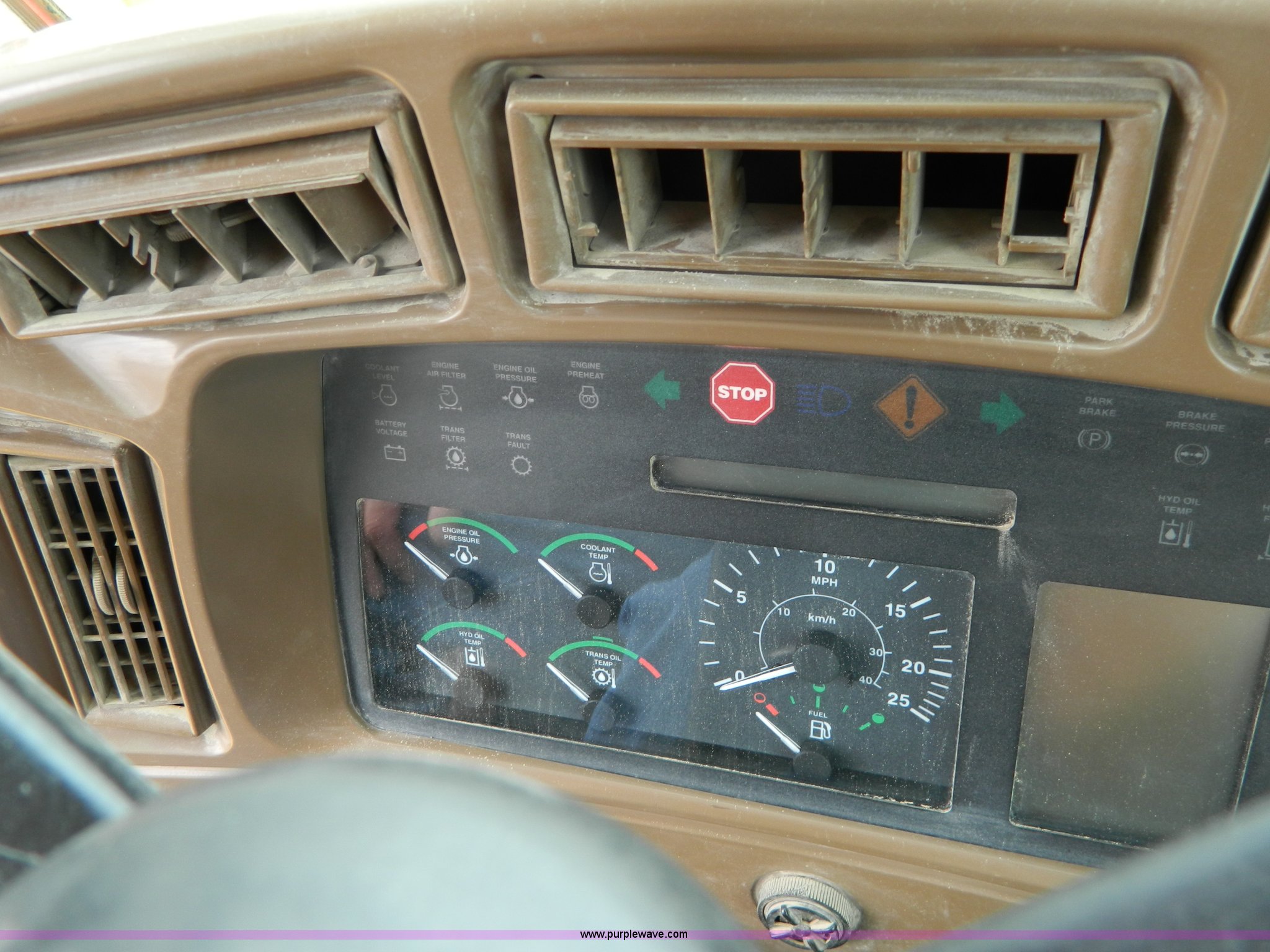 Purple Wave is selling a used Wheel Loader in Kansas. This item is a 2001 John Deere 744H wheel loader with the following: 20,073 hours on meter, John Deere six cylinder diesel engine, 260 HP, Engine overhaul completed at 11,250 hours by CTI Concordia, Powershift transmission, 4F-3R gears, ROPS, AC and heat, AM/FM/Weatherband, Tilt steering wheel, Air suspension seat, EMS panel, Joystick controls, Front and rear work lights, Windshield wipers, Engine enclosures, 129"W bucket, Bolt-on cutting edge, Block heater, Back-up alarm, Rear pin hitch, Firestone 26.5-25 tires, 50,300 lbs. base operating weight, New tires fall of 2014, Service records available, Serial DW744HM578692