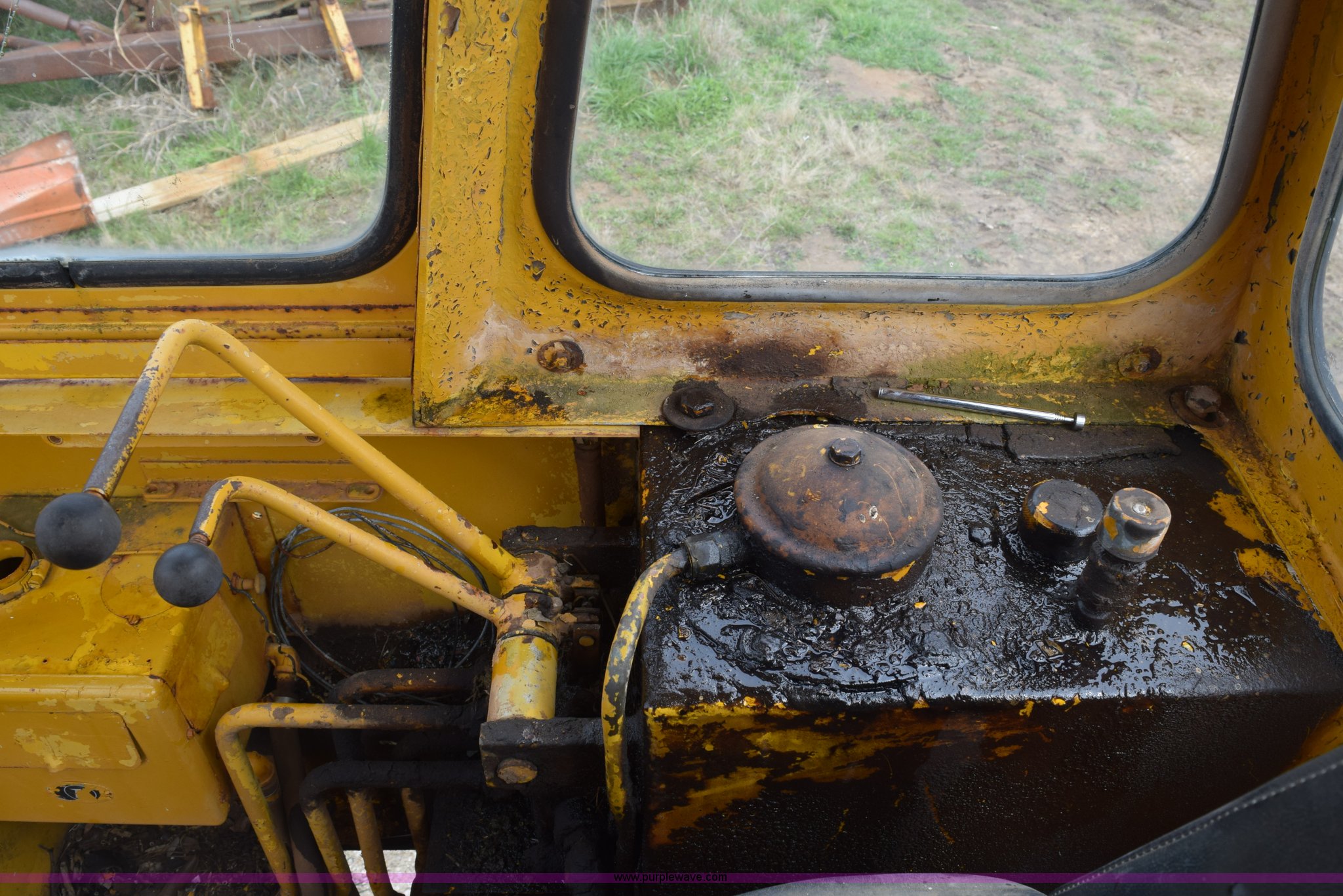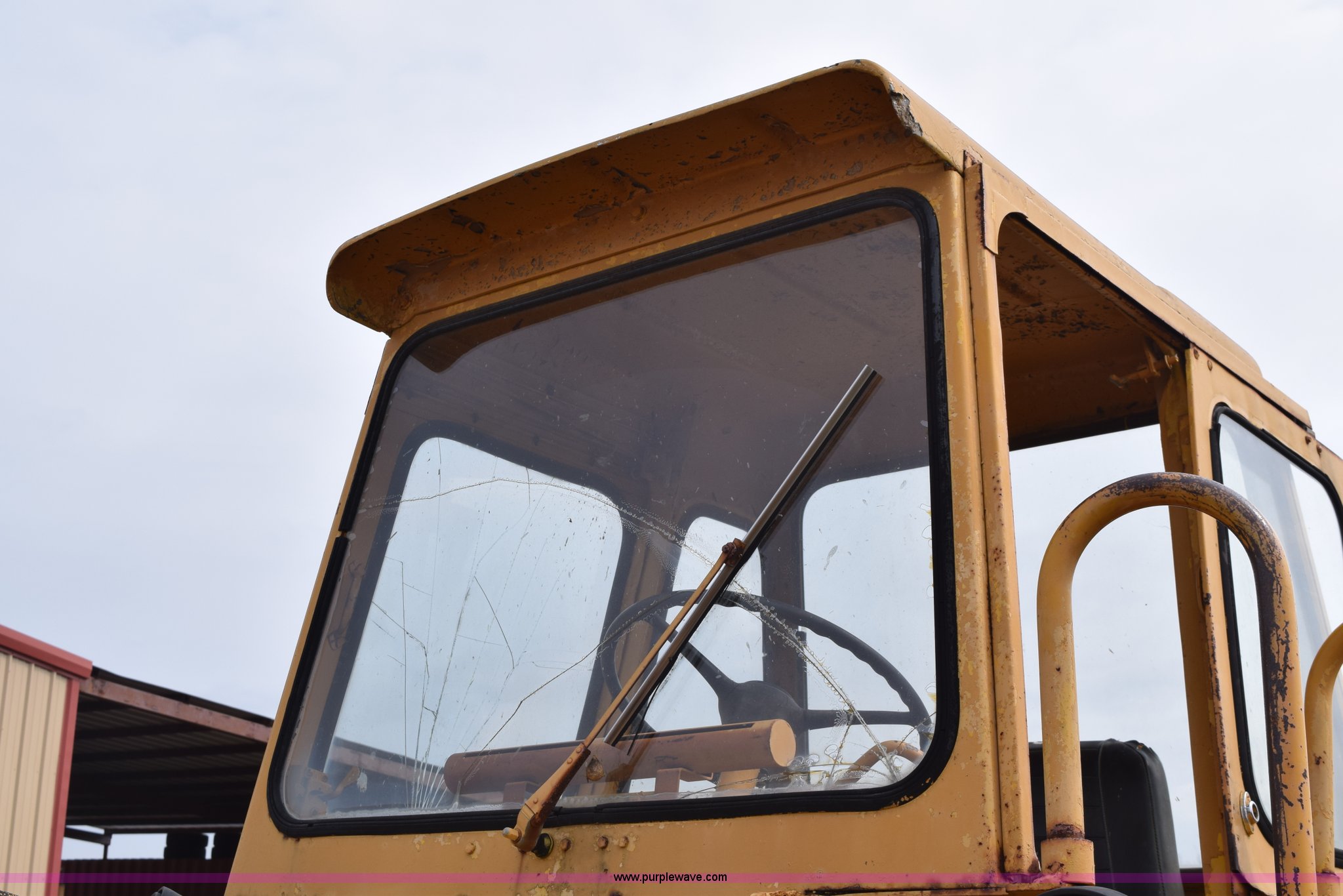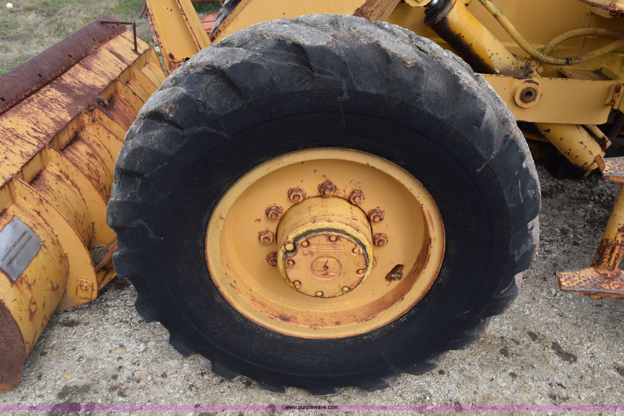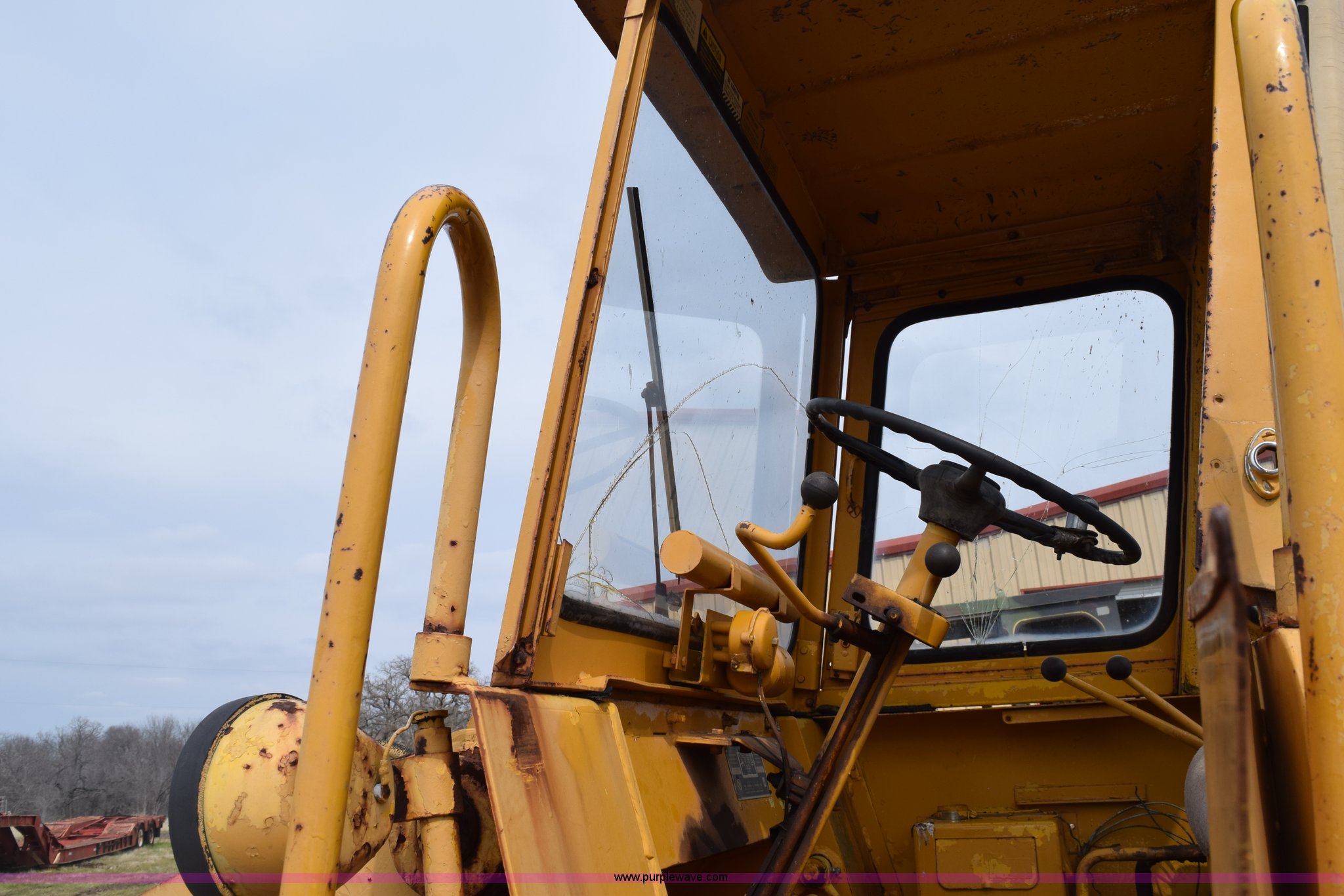 Purple Wave is selling a used Wheel Loader in Texas. This item is a Hough H30 wheel loader with the following: 5,012 hours on meter, International six cylinder gas engine, Three speed hydrostatic transmission, Four wheel drive, EROPS, Two stick loader control, 80"W toothed bucket, Serial 208091, Work lights, 13.00-24 tires, Rust, Window cracked, Non-operational hydraulic pump, Seat torn, Serial 27357