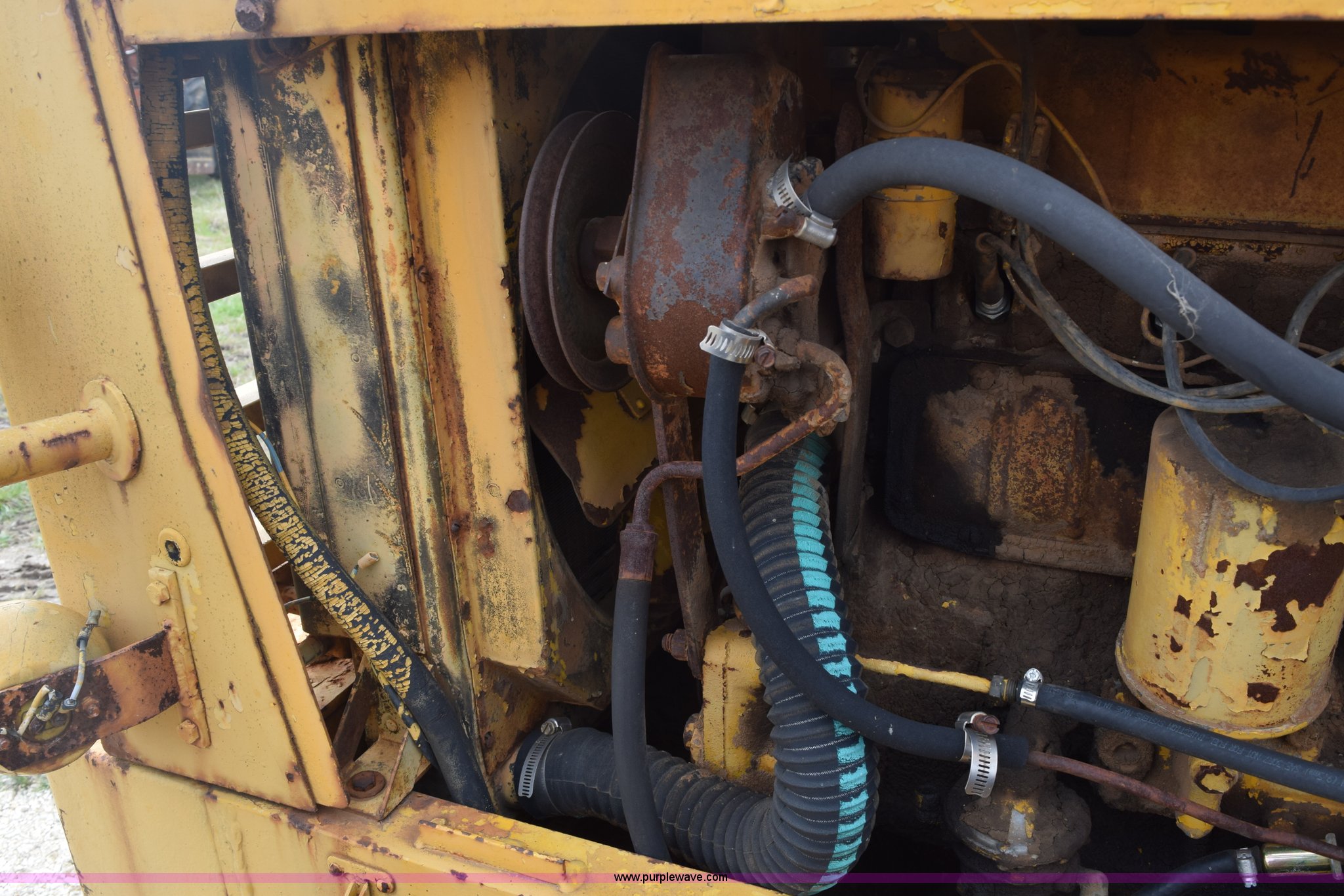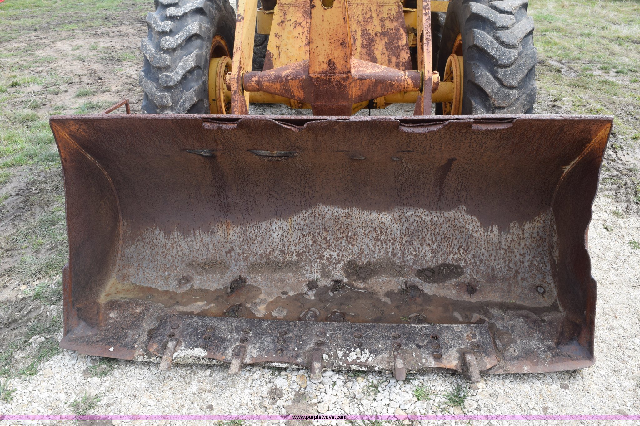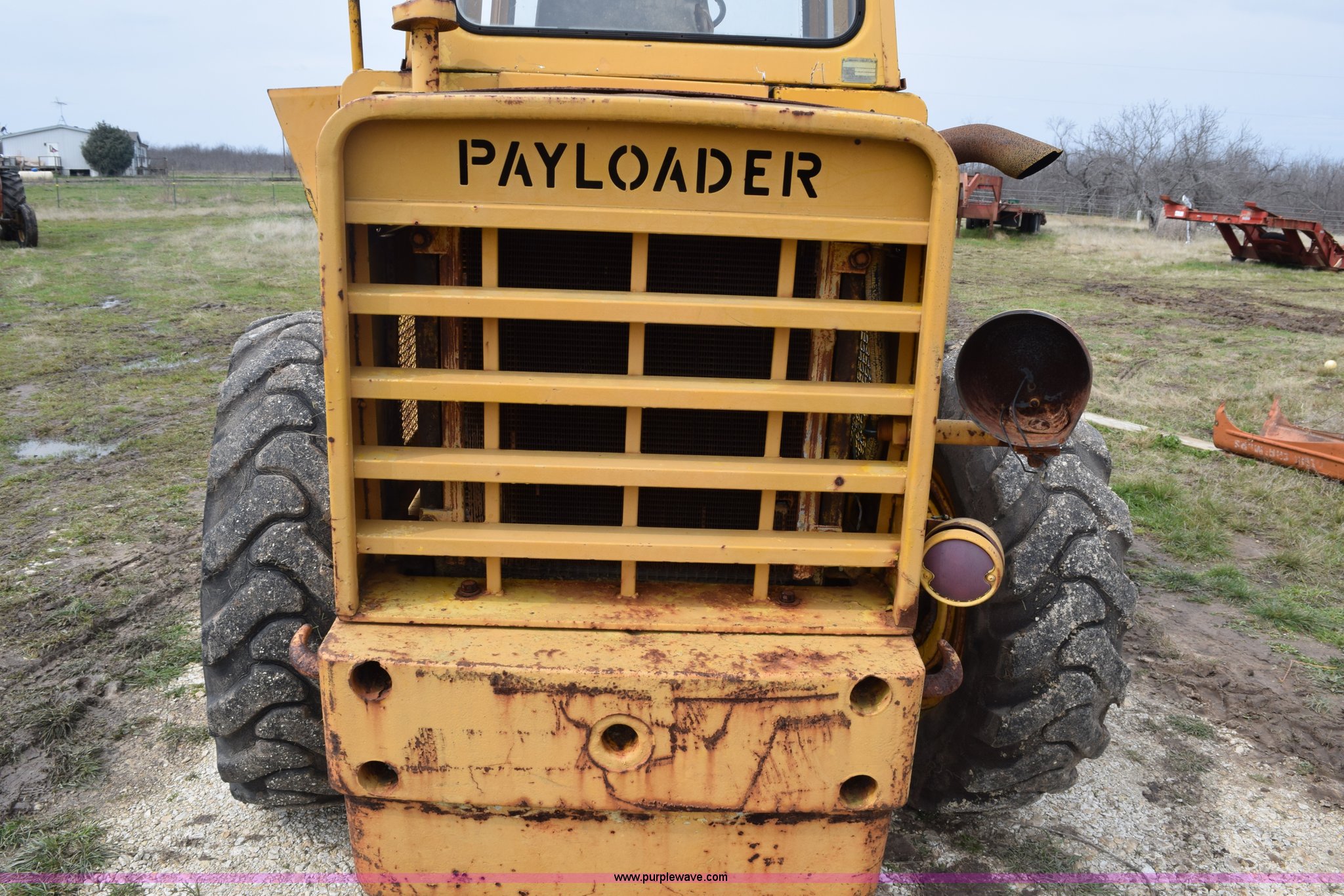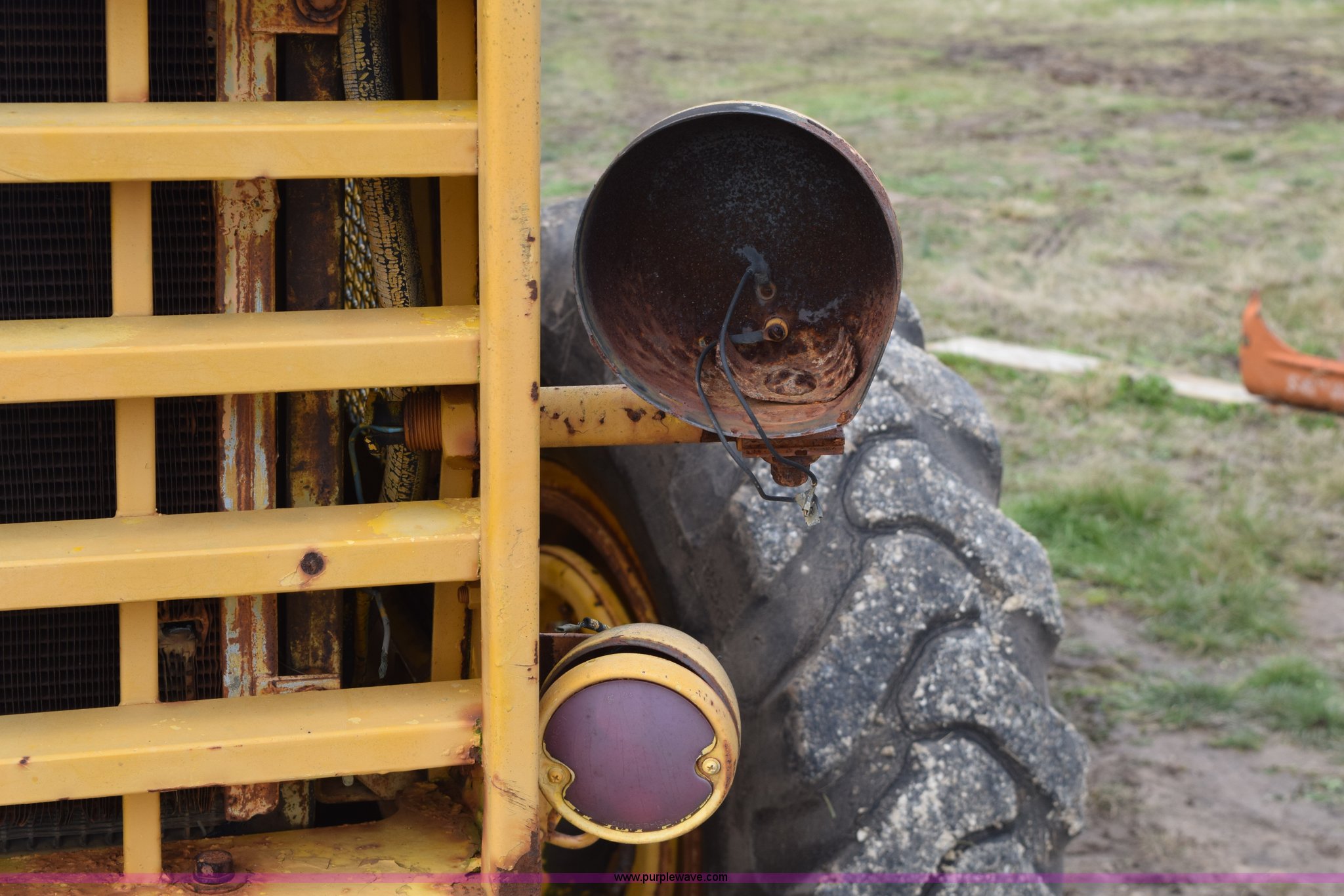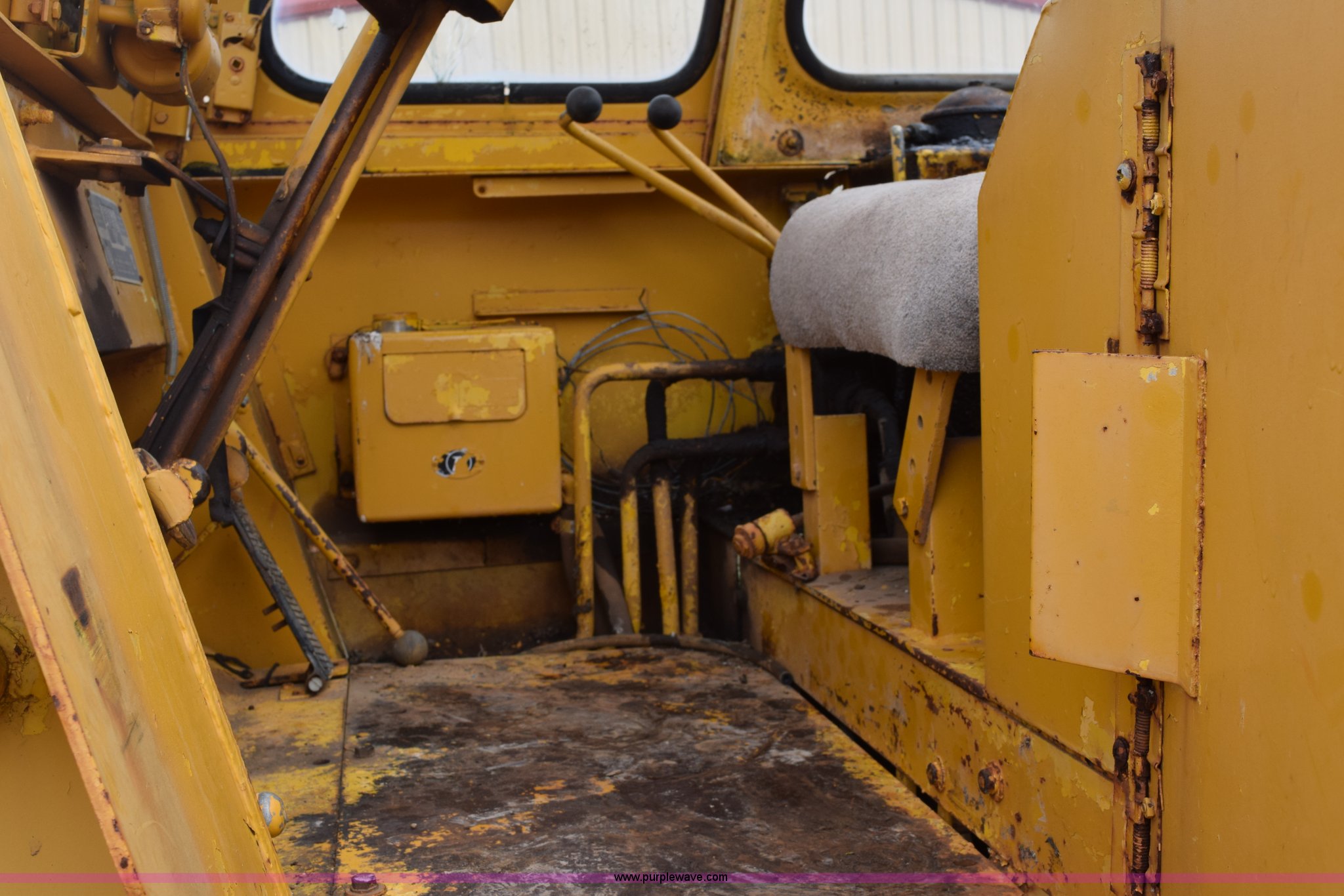 Purple Wave is selling a used Wheel Loader in Texas. This item is a Hough H30 wheel loader with the following: 5,012 hours on meter, International six cylinder gas engine, Three speed hydrostatic transmission, Four wheel drive, EROPS, Two stick loader control, 80"W toothed bucket, Serial 208091, Work lights, 13.00-24 tires, Rust, Window cracked, Non-operational hydraulic pump, Seat torn, Serial 27357