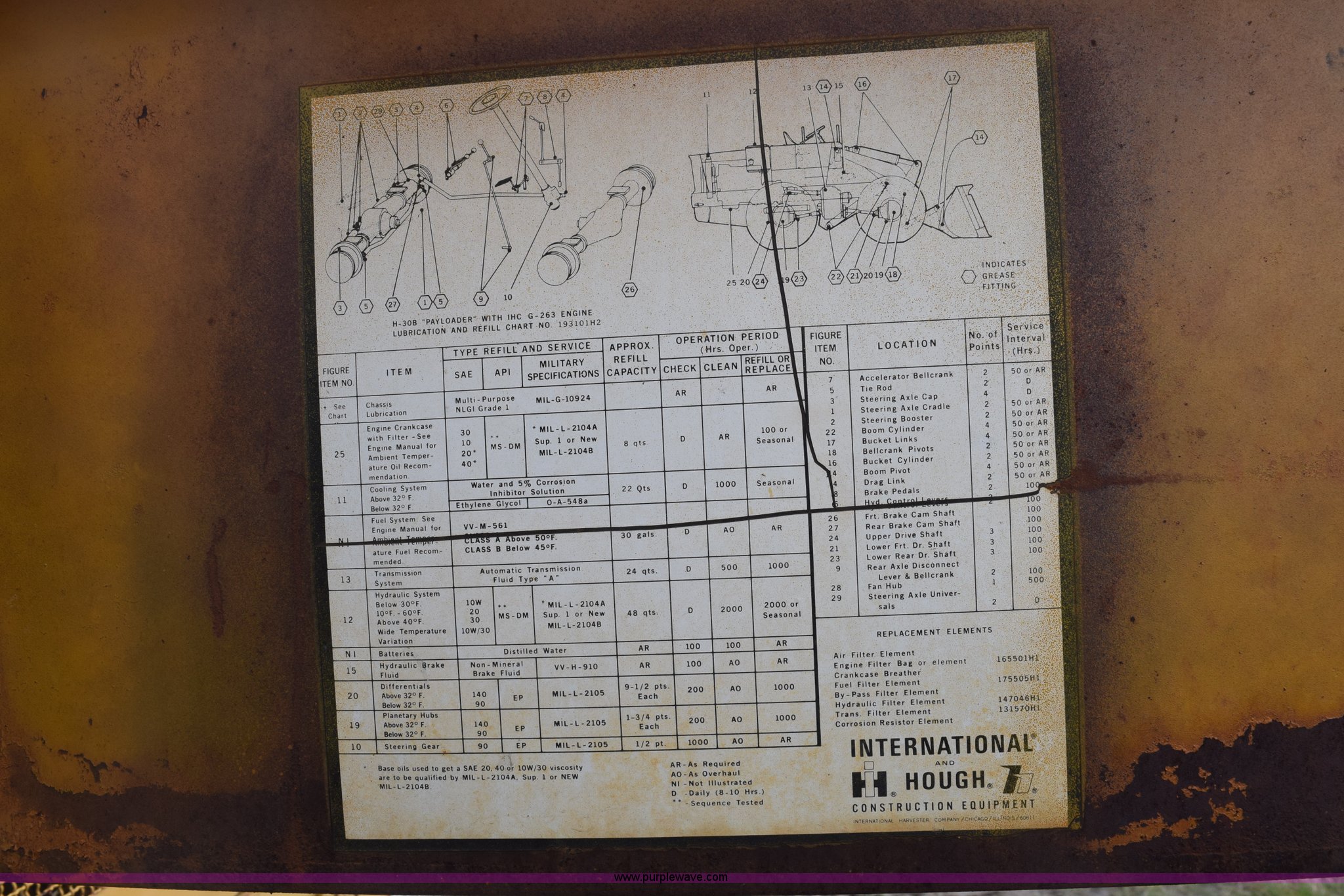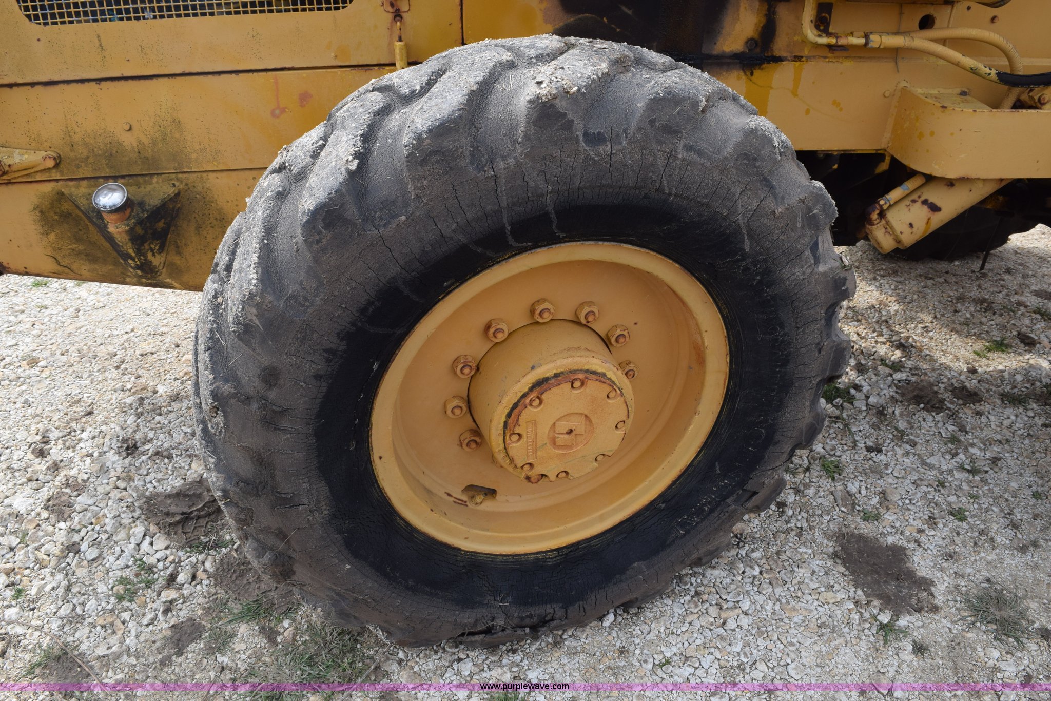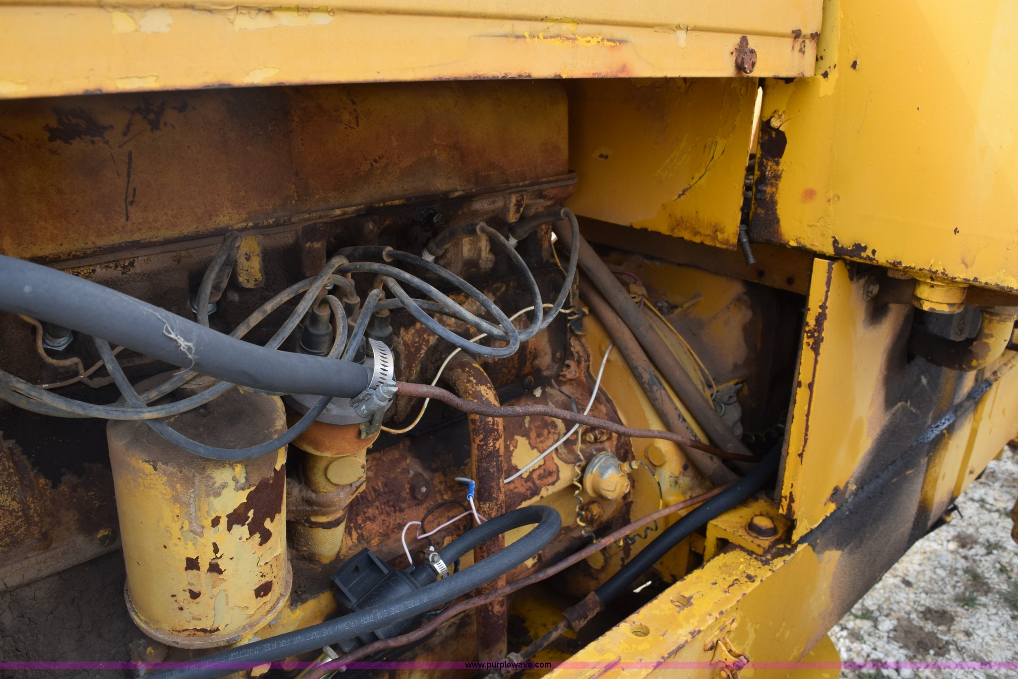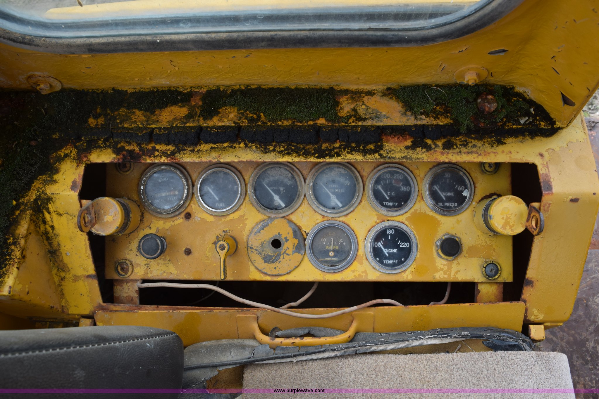 Purple Wave is selling a used Wheel Loader in Texas. This item is a Hough H30 wheel loader with the following: 5,012 hours on meter, International six cylinder gas engine, Three speed hydrostatic transmission, Four wheel drive, EROPS, Two stick loader control, 80"W toothed bucket, Serial 208091, Work lights, 13.00-24 tires, Rust, Window cracked, Non-operational hydraulic pump, Seat torn, Serial 27357