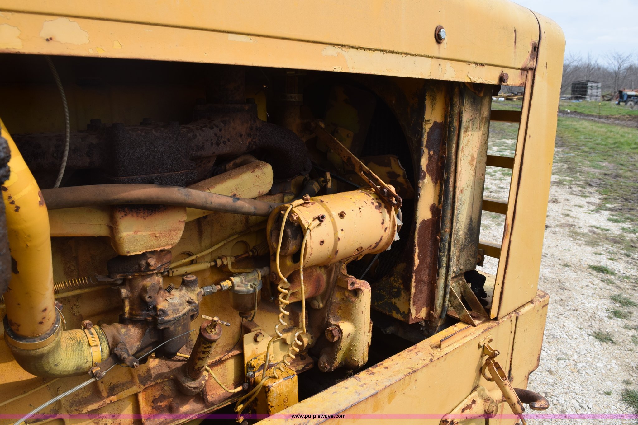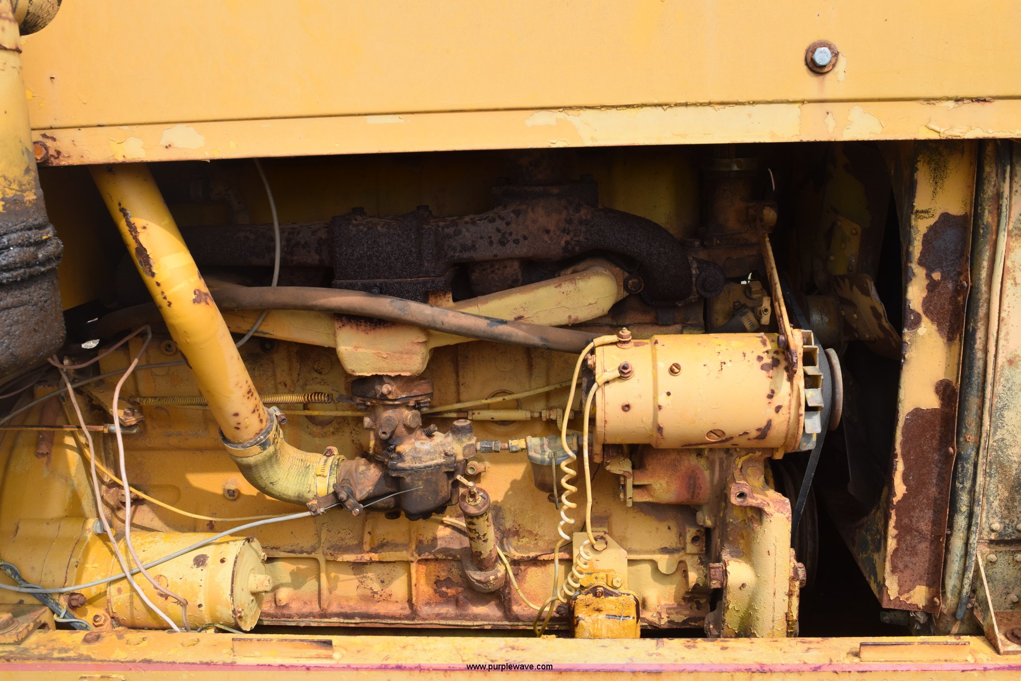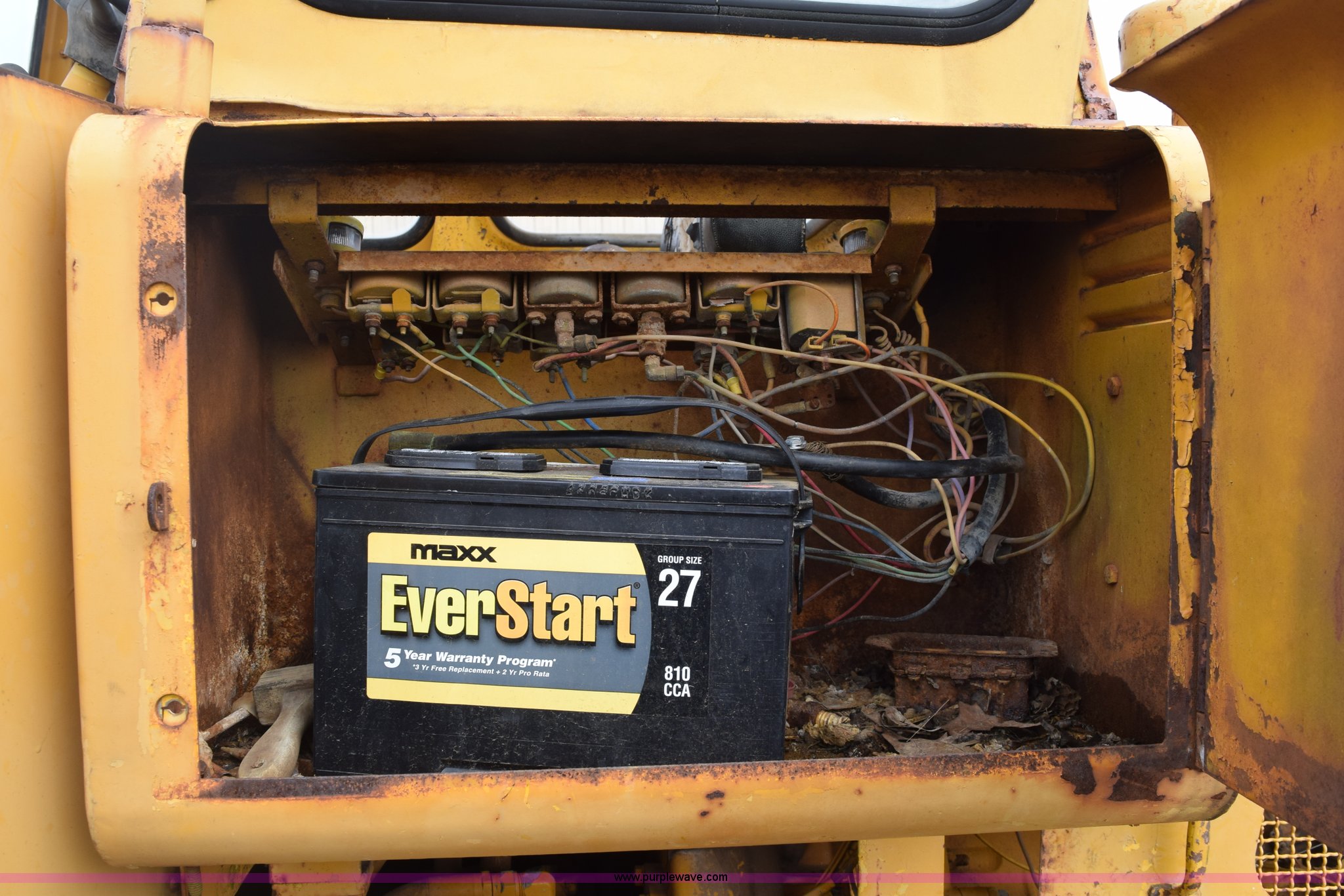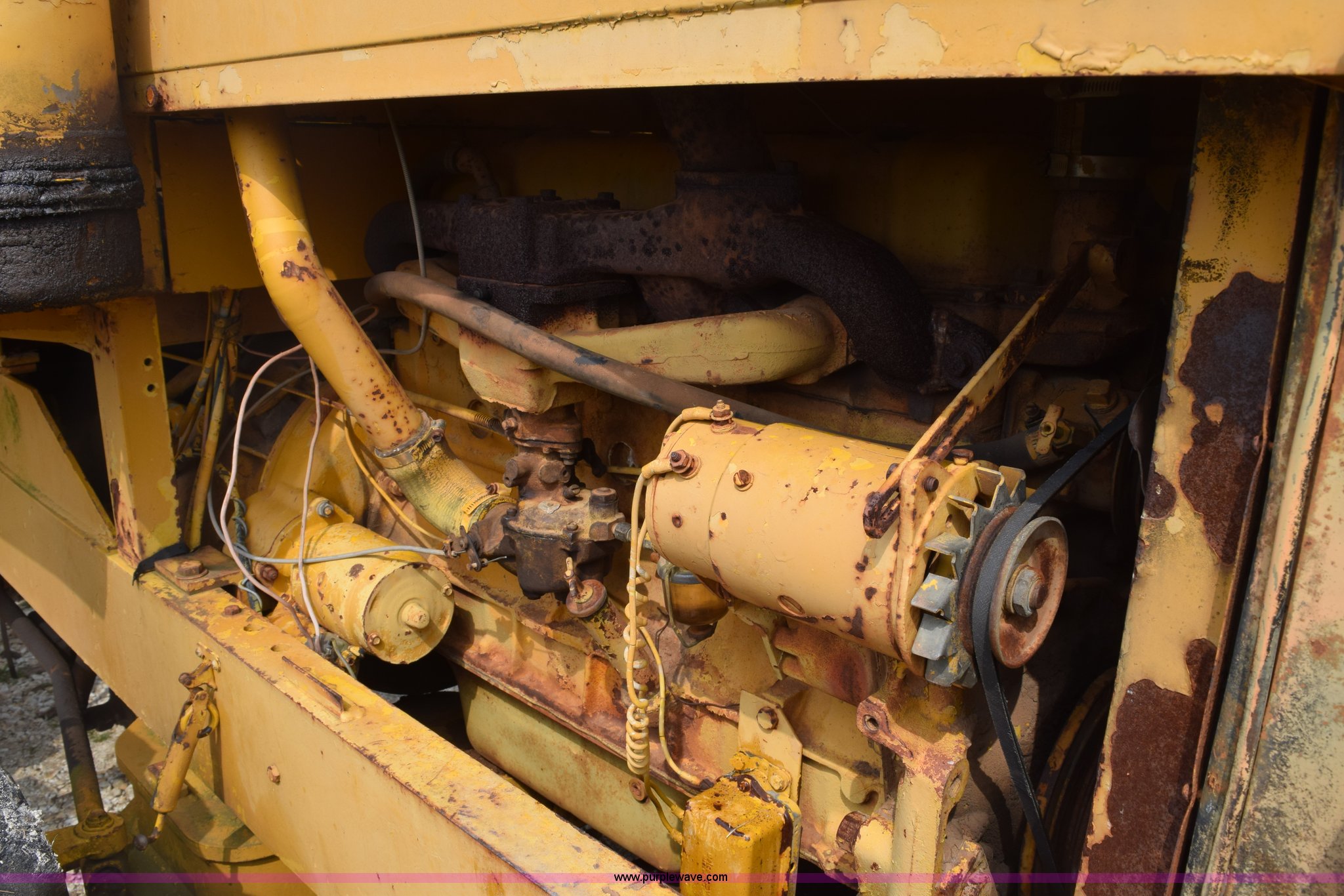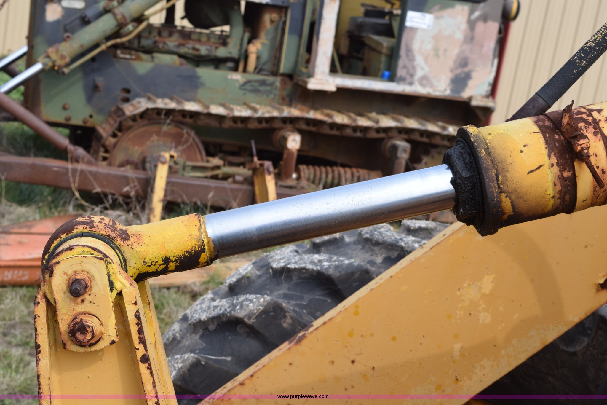 Purple Wave is selling a used Wheel Loader in Texas. This item is a Hough H30 wheel loader with the following: 5,012 hours on meter, International six cylinder gas engine, Three speed hydrostatic transmission, Four wheel drive, EROPS, Two stick loader control, 80"W toothed bucket, Serial 208091, Work lights, 13.00-24 tires, Rust, Window cracked, Non-operational hydraulic pump, Seat torn, Serial 27357