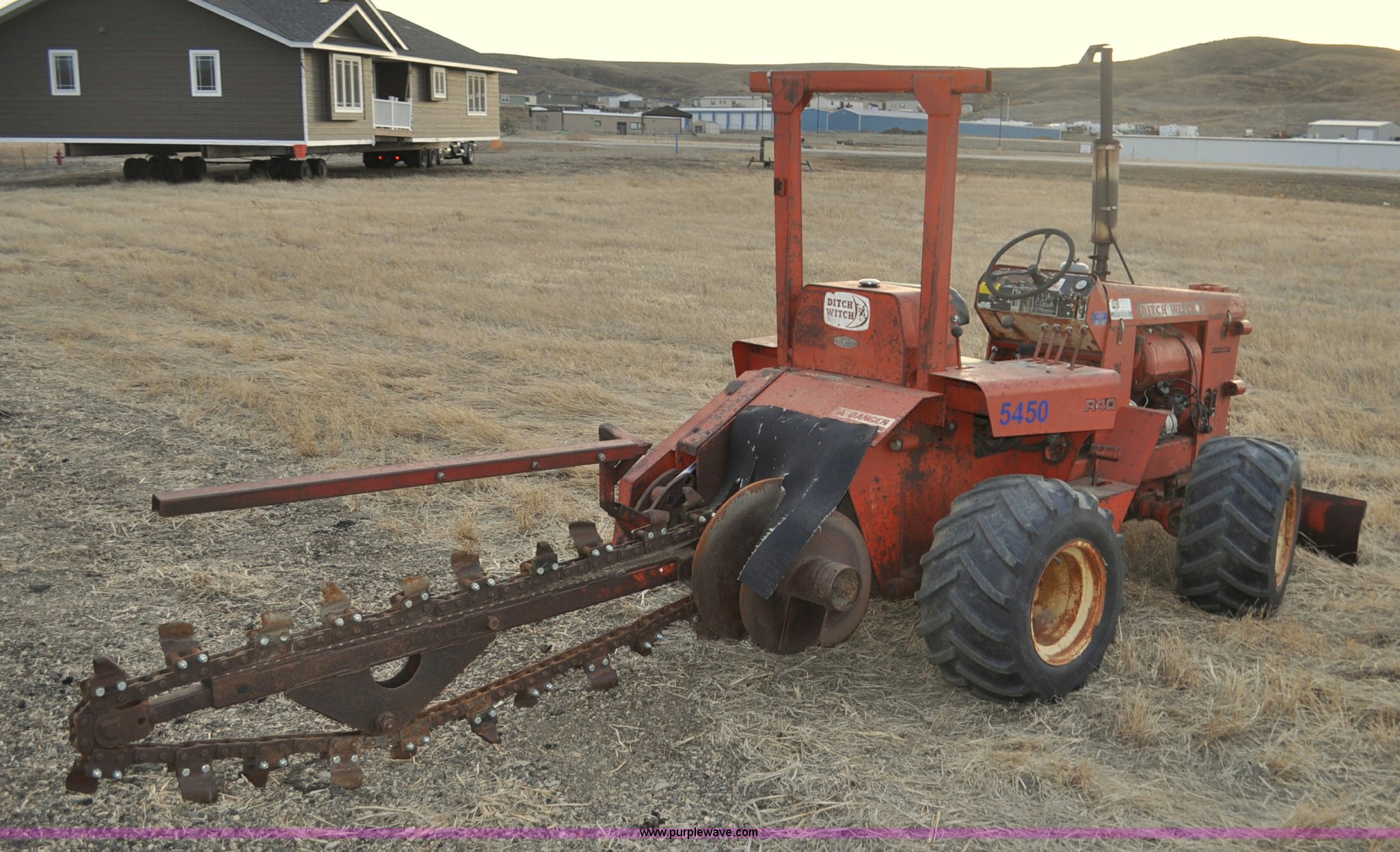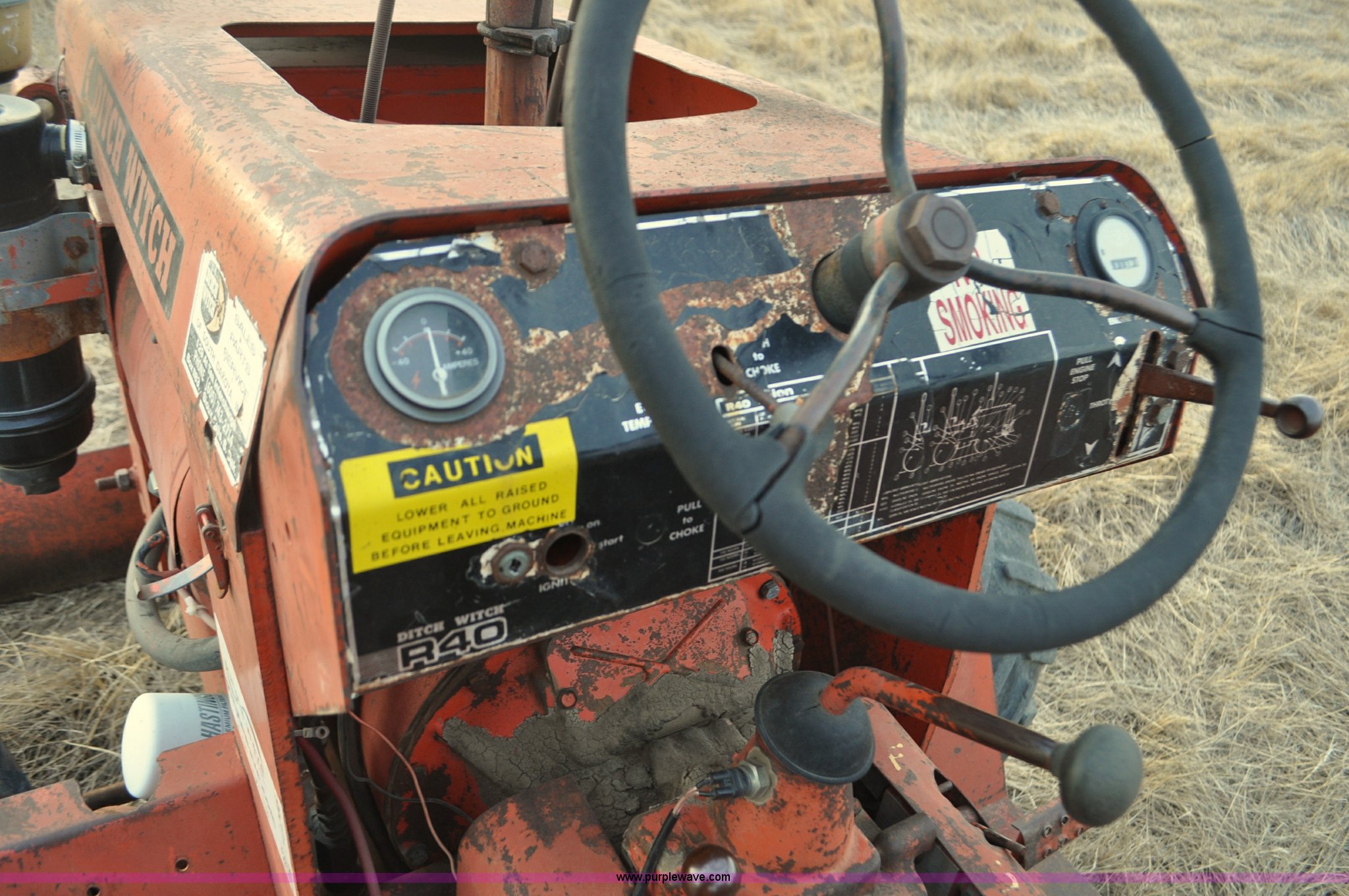 Purple Wave is selling a used Trencher or Rock Saw in South Dakota. This item is a Ditch Witch R40 trencher with the following: 3,015 hours on meter, Four cylinder gas engine, Three speed manual transmission, Four wheel drive, 4' maximum trenching depth, 5"W trench capacity, Four way back fill blade, Front auxiliary hydraulics, 26 x 12.00-12 tires, Serial 401504, Unit# 5450