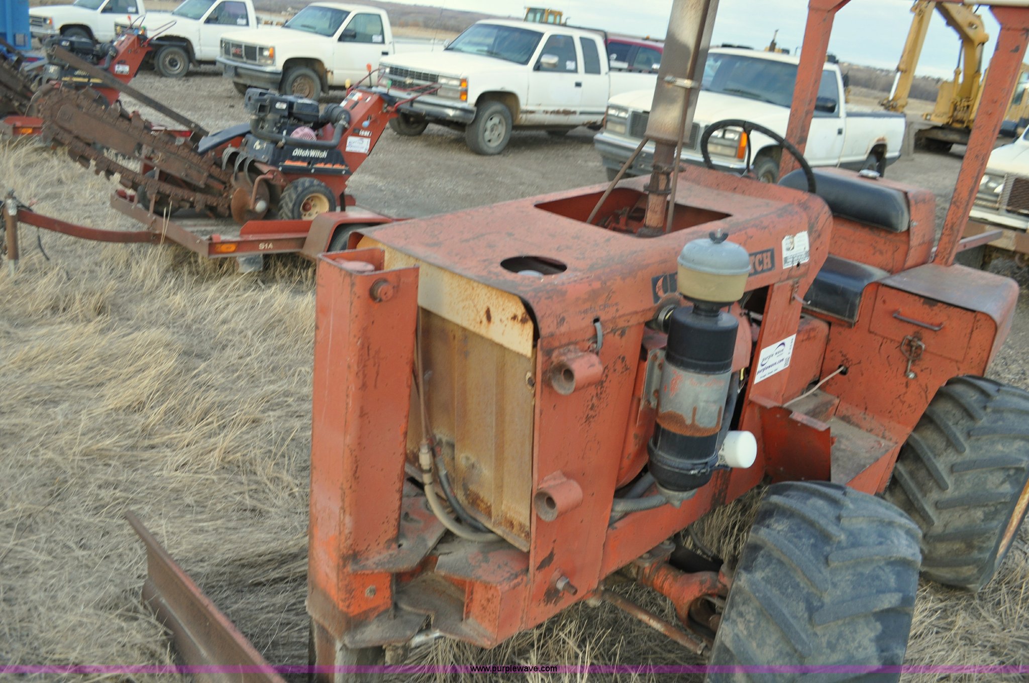 Ditch Witch R40 trencher. 3,015 hours on meter, Four cylinder gas engine, Three speed manual transmission, Four wheel drive, 4' maximum trenching depth 5"W trench capacity, Four way back fill blade, Front auxiliary hydraulics, 26 x 12.00-12 tires, Serial 401504, Unit# 5450. View equipment video. Morris Inc.. Ft. Pierre, SD 57532