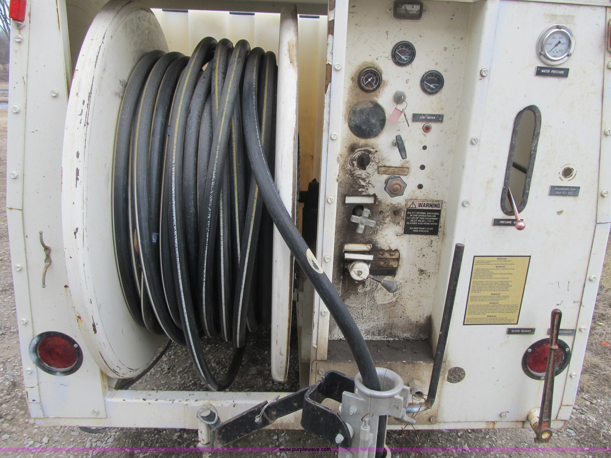 Purple Wave is selling a used Tools in Missouri. This item is a 1996 Sewer Equipment Co. of America 747 sewer jet machine with the following: Ford 2.3L four cylinder gas engine, 12V electric start, Approximately 800 gallon containment system, 400'L x 1" diameter jet hose, Retractable hose reel, High pressure water gauges, High pressure pump, Serial 452, Part No. 40298-00-X, Pump leaks, Rockford PTO, Serial 890561, Trailer, 2 5/16" ball hitch, Spring suspension, Electric brakes, Safety break-away system, 225/75R15 tires, Maintenance and operators manuals, Last used in 2014