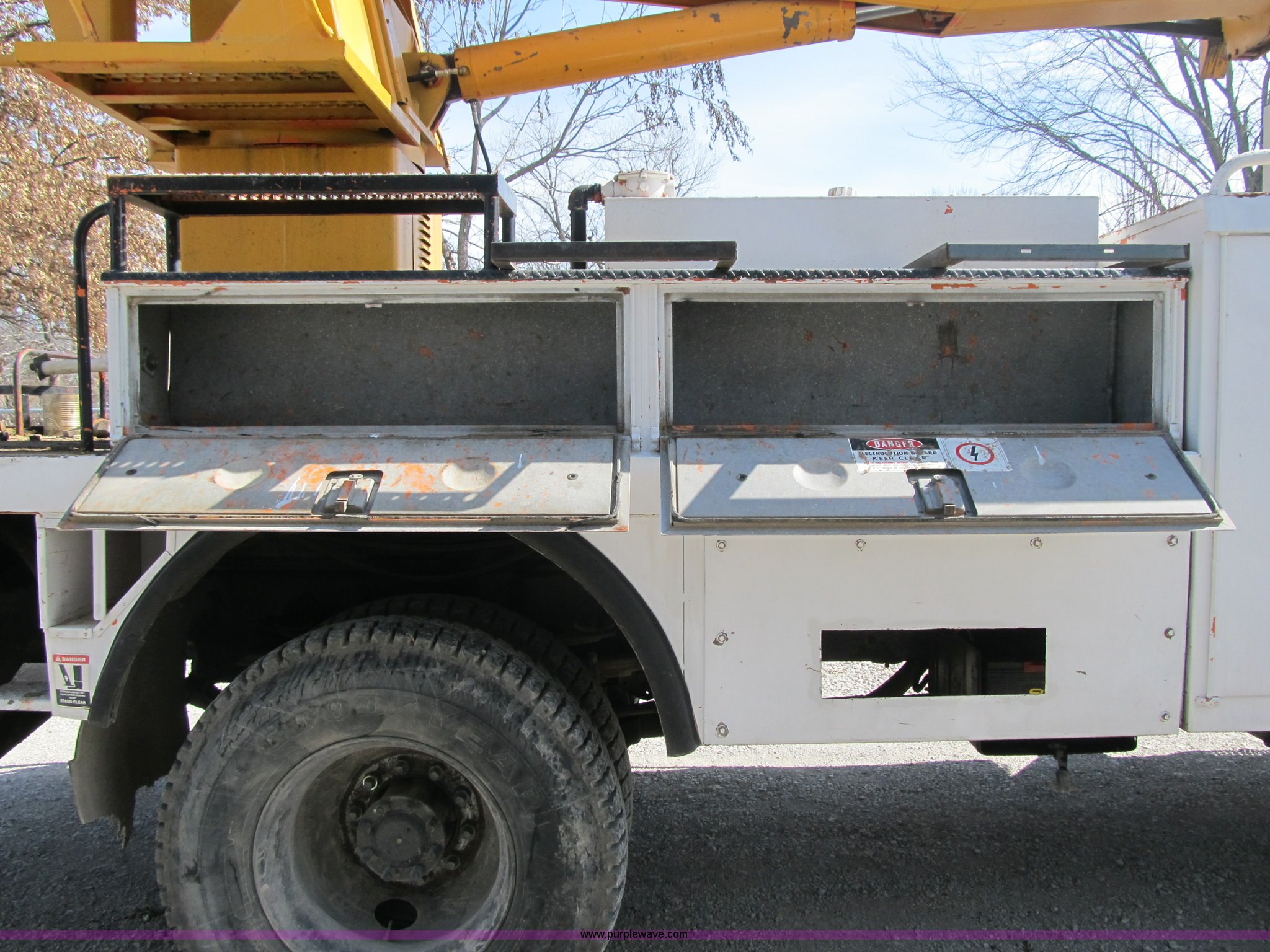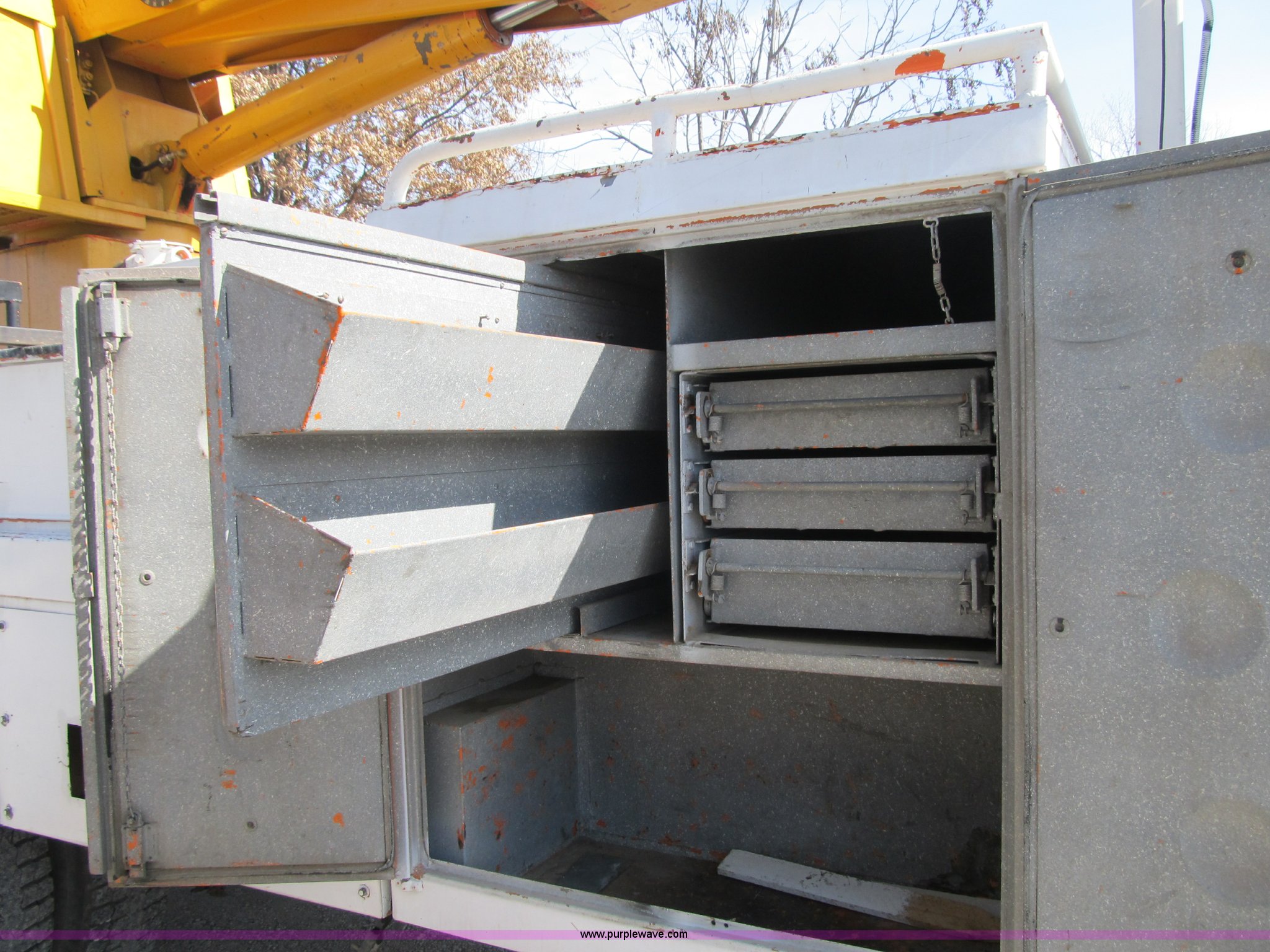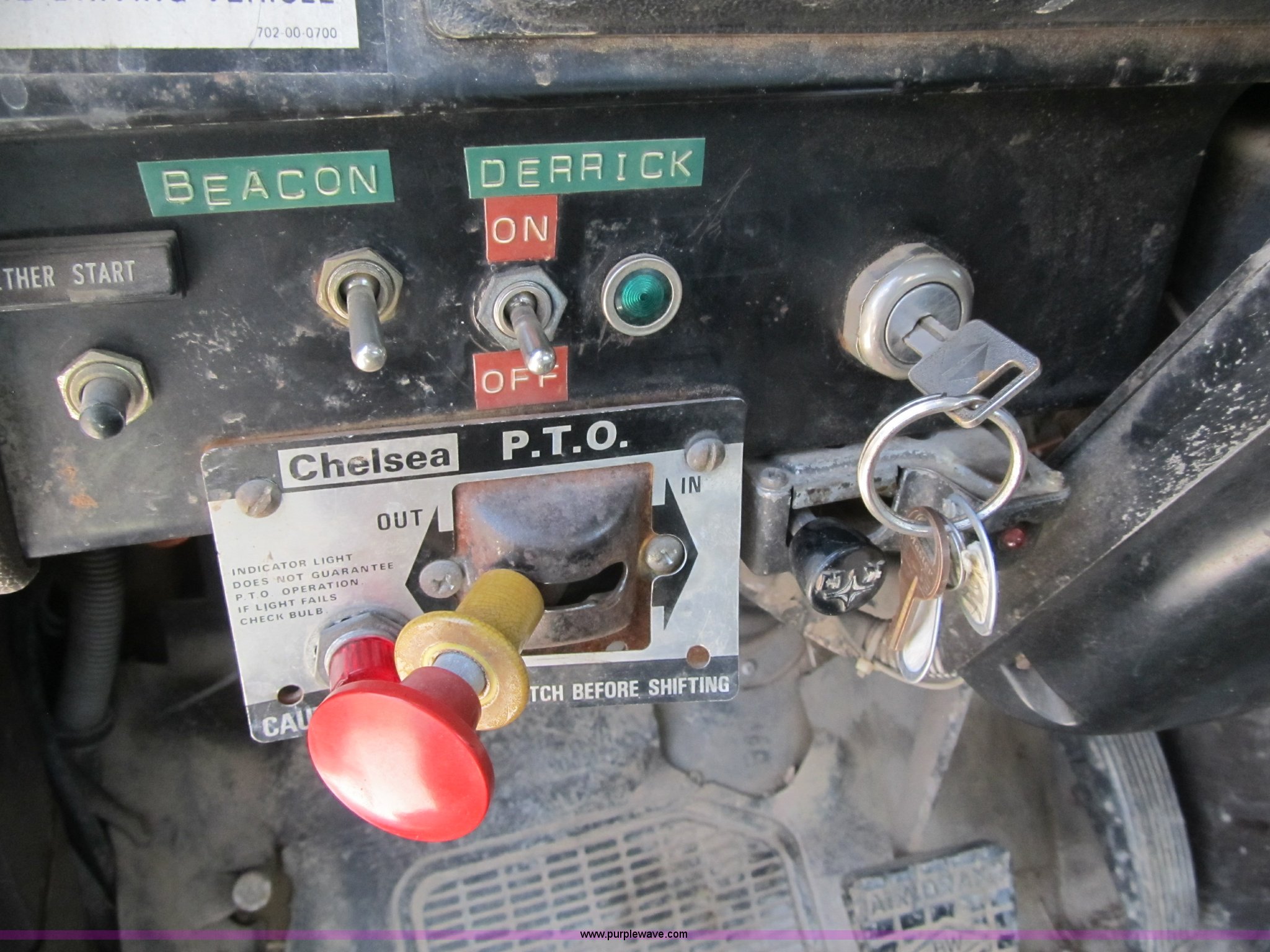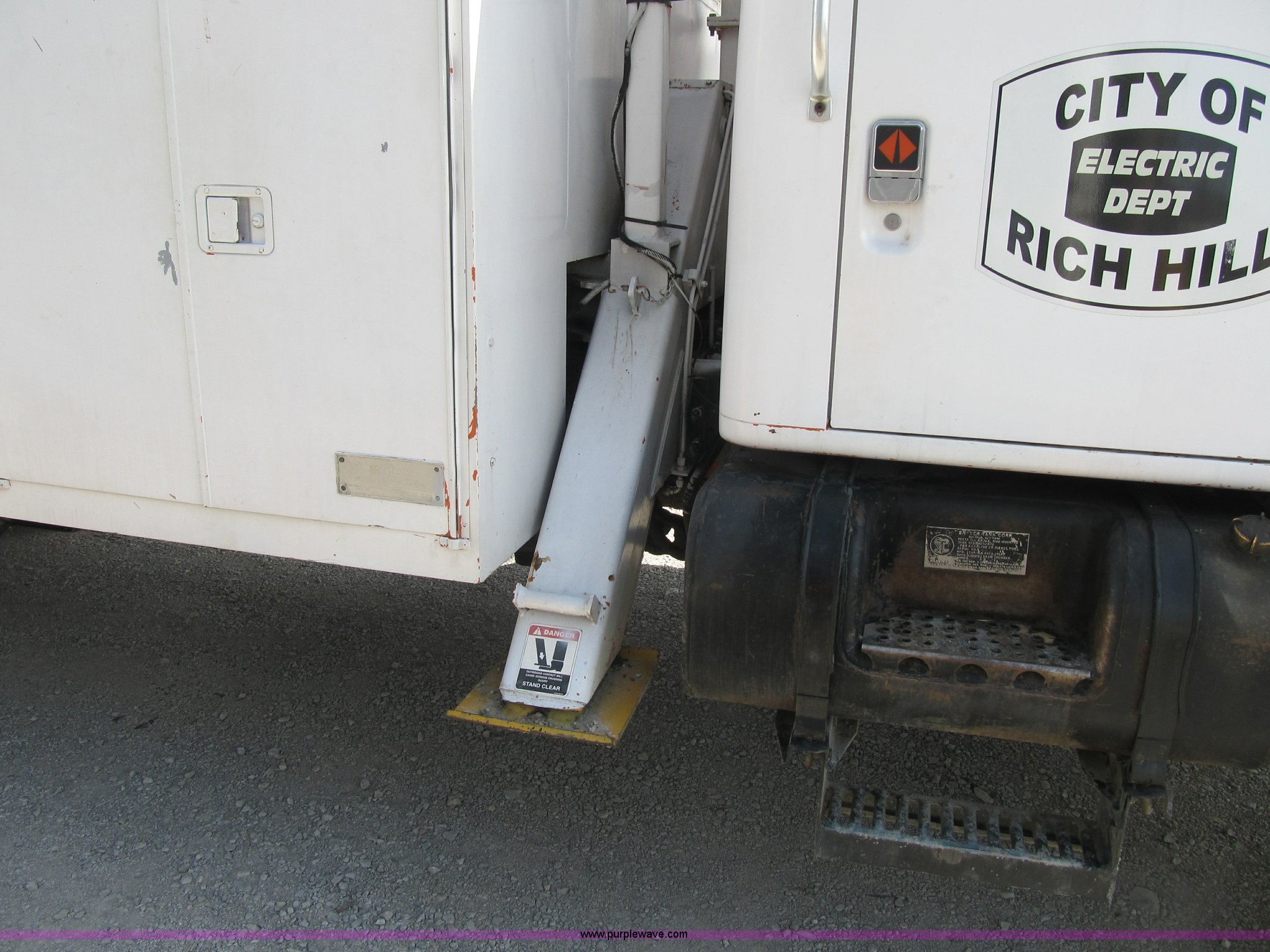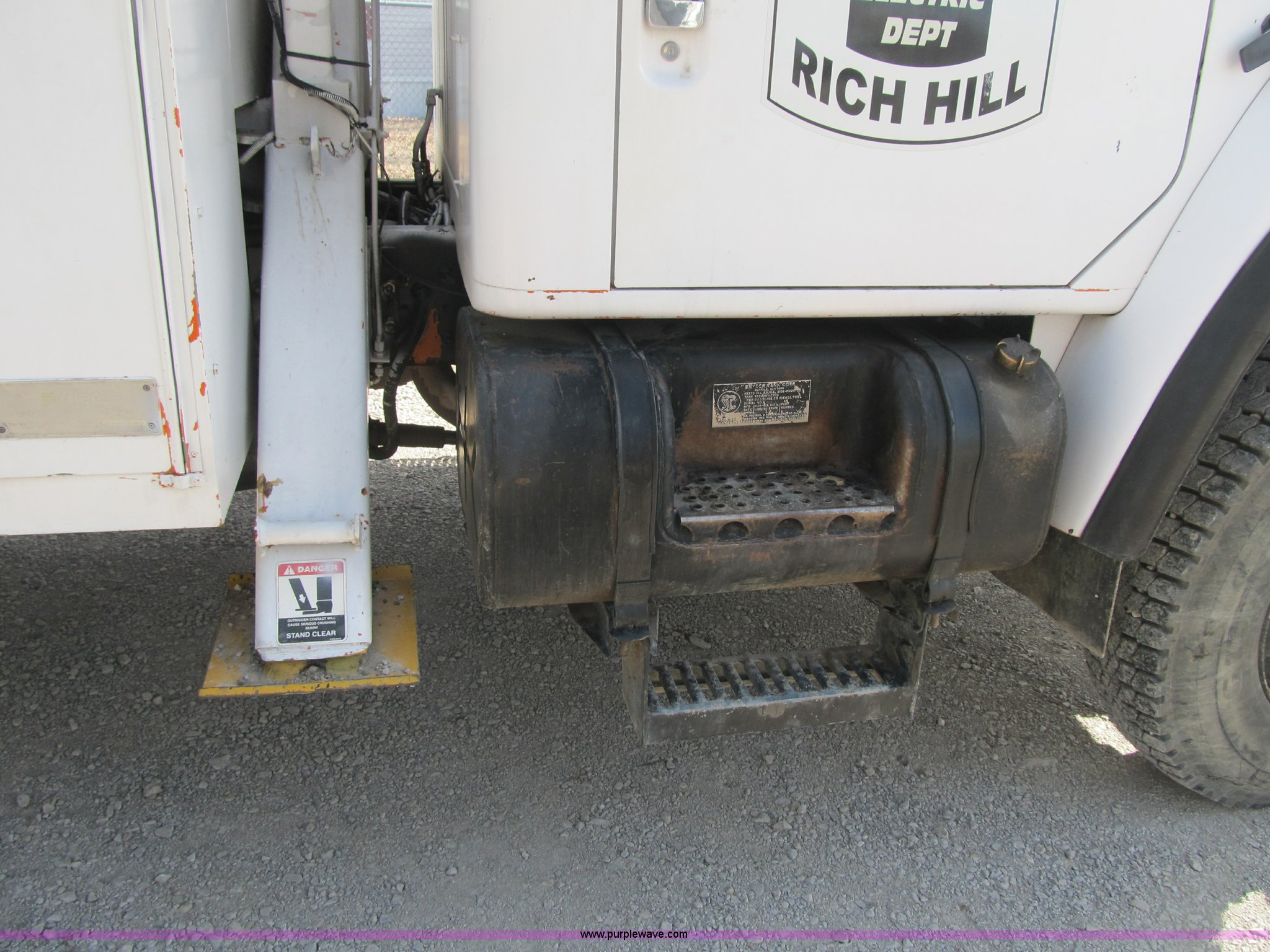 Purple Wave is selling a used Digger Derrick Truck in Missouri. This item is a 1988 International 1854 digger derrick truck with the following: 71,736 actual miles, International DT466 7.6L L6 diesel engine, Automatic transmission, Heat, PTO, Altec bed, (8) storage bay doors, Serial 17-4023011-84, D-1090-T digger derrick, 45'H, 10,800 lbs maximum lift capacity, Electric over hydraulic, Pole clamp, Auger shaft, Serial 0884-C0420, Front and rear hydraulic outriggers, Block heater, 50 gallon fuel tank, Pintle hitch, Trailer wiring, Spring suspension, Air brakes, 176" wheelbase, 12R22.5 tires