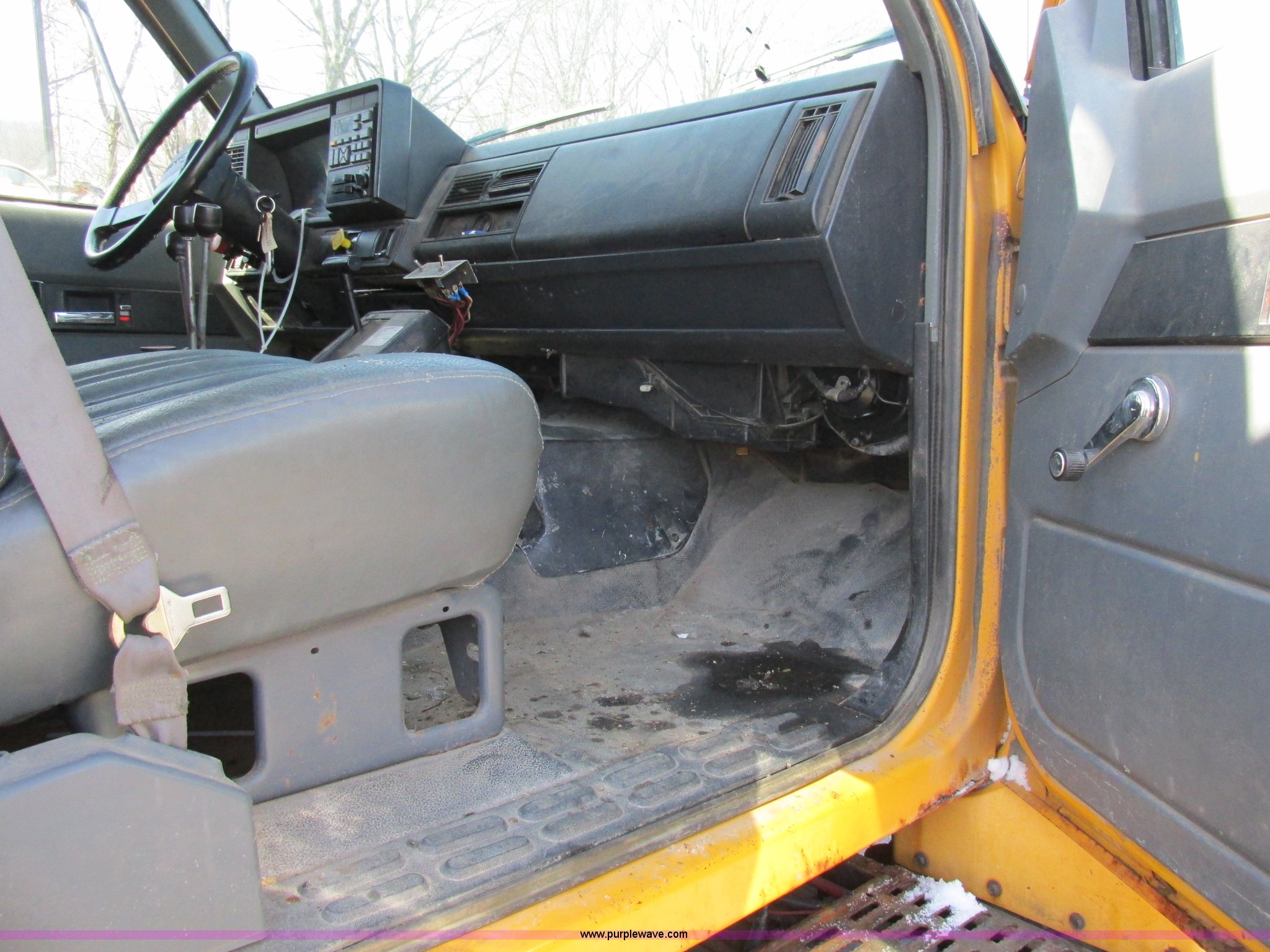 1994 GMC TopKick dump truck. 132,149 actual miles, 6,615 hours on meter, Caterpillar 3126 diesel engine, Automatic transmission Transmission rebuilt fewer than 200 miles ago, Heat, 11'L dump bed 34"H side boards, 10"H tip-top boards, Single ram three stage hoist, Air operated end gate, Manual rollover tarp, Front snow plow mount In-cab controls, Cab guard, Dual 35 gallon fuel tanks, Spring suspension, Air brakes, 11R22.5 tires, GVWR 44,300 lbs, FAWR 10,300 lbs, IAWR 17,000 lbs, RAWR 17,000 lbs, Recently replaced muffler, Rust. Title distribution may be delayed up to 14 days from verification of funds. 1GDS7H4J6RJ520681. Special Construction Services Inc.. 2133 Creve Coeur Mill Road. Maryland Heights, MO 63043