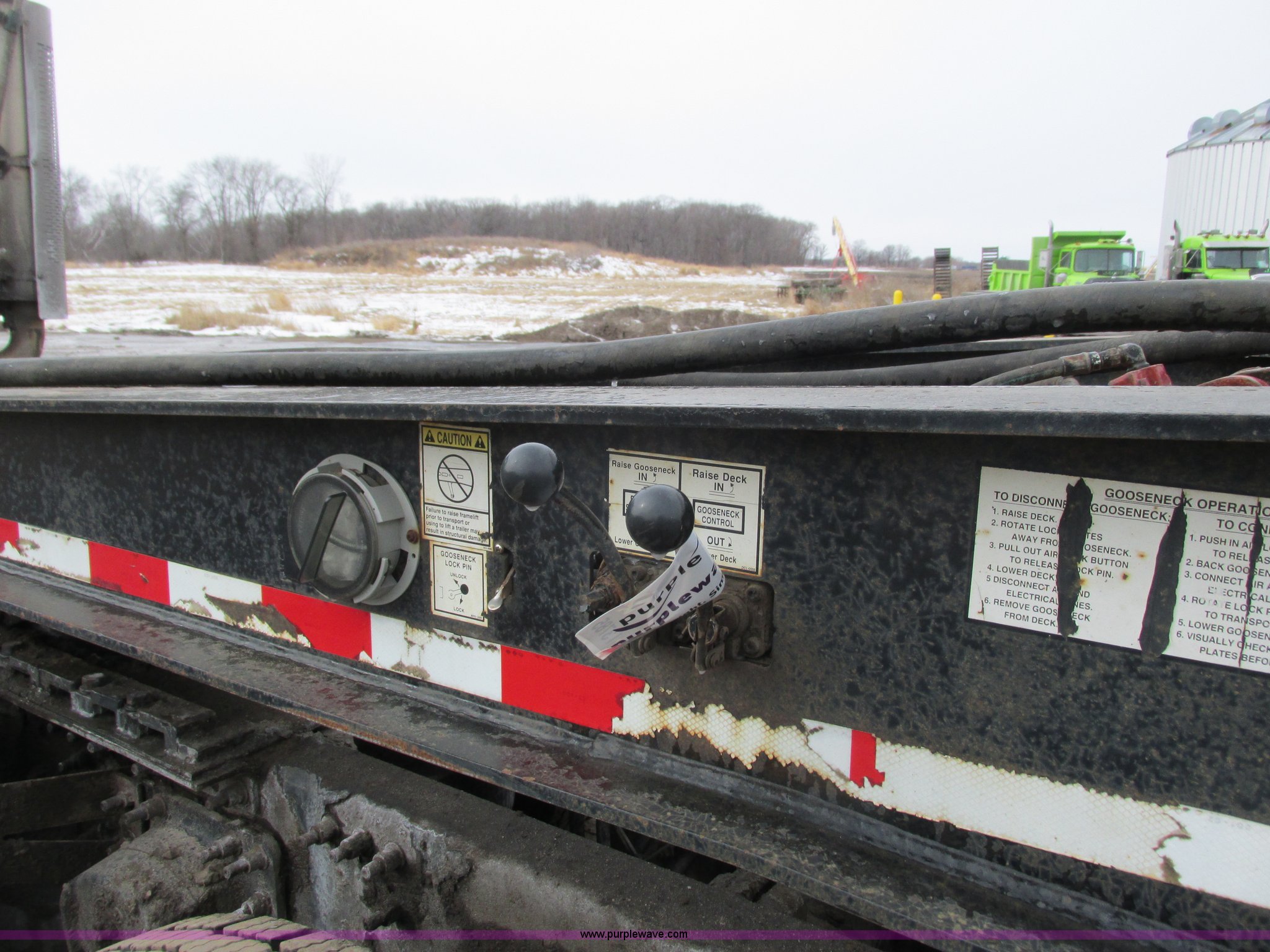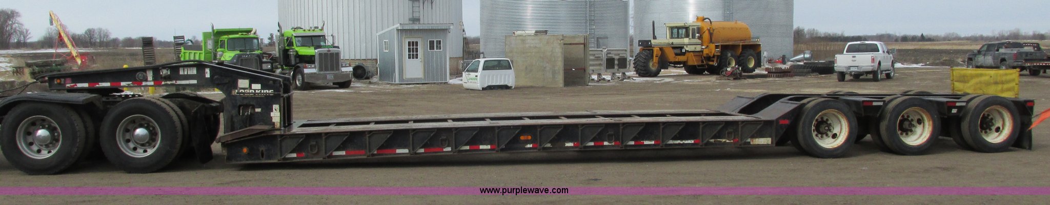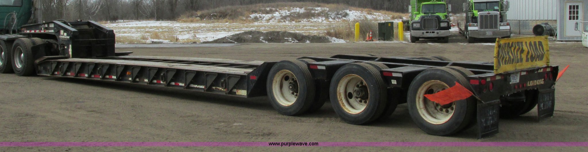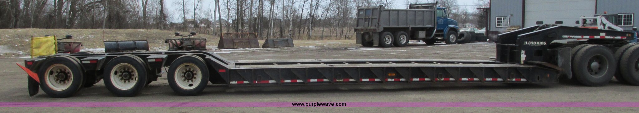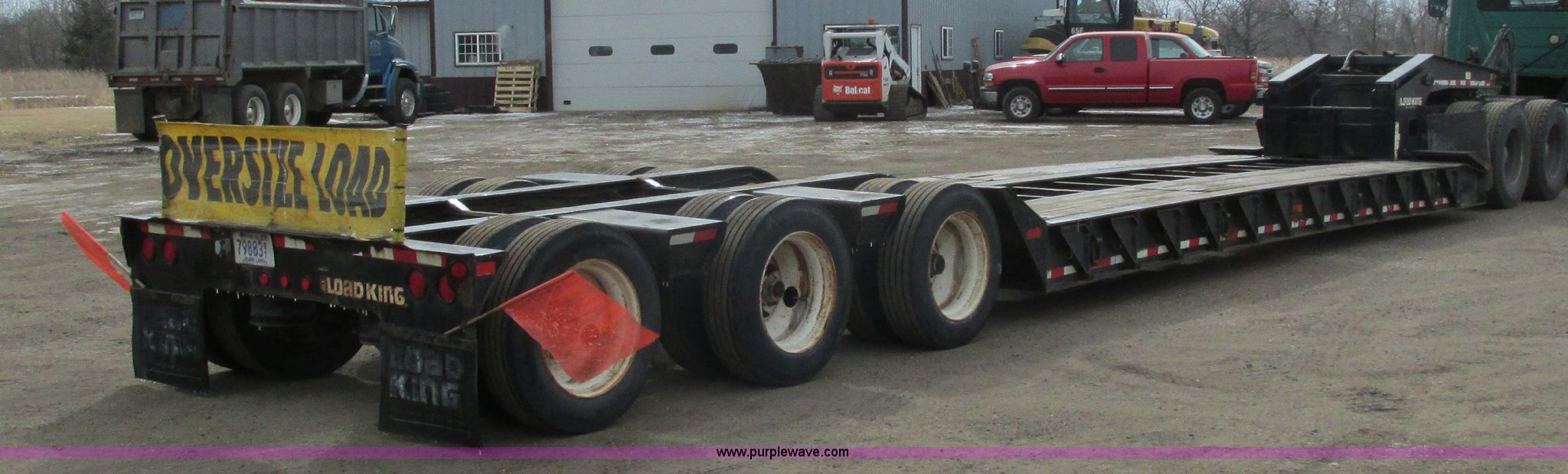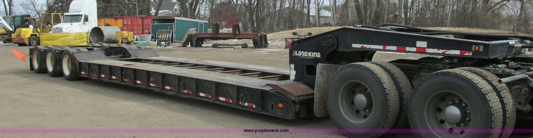 Purple Wave is selling a used Equip. Trailer in Minnesota. This item is a 2001 Load King lowboy trailer with the following: 23' well, 102"W, (4) D-ring tie downs per side, Hydraulic detachable neck, (12) outriggers per side, Air suspension, Air brakes, 255/70R22.5 tires, GVWR 127,100, Brakes replaced in February 2015