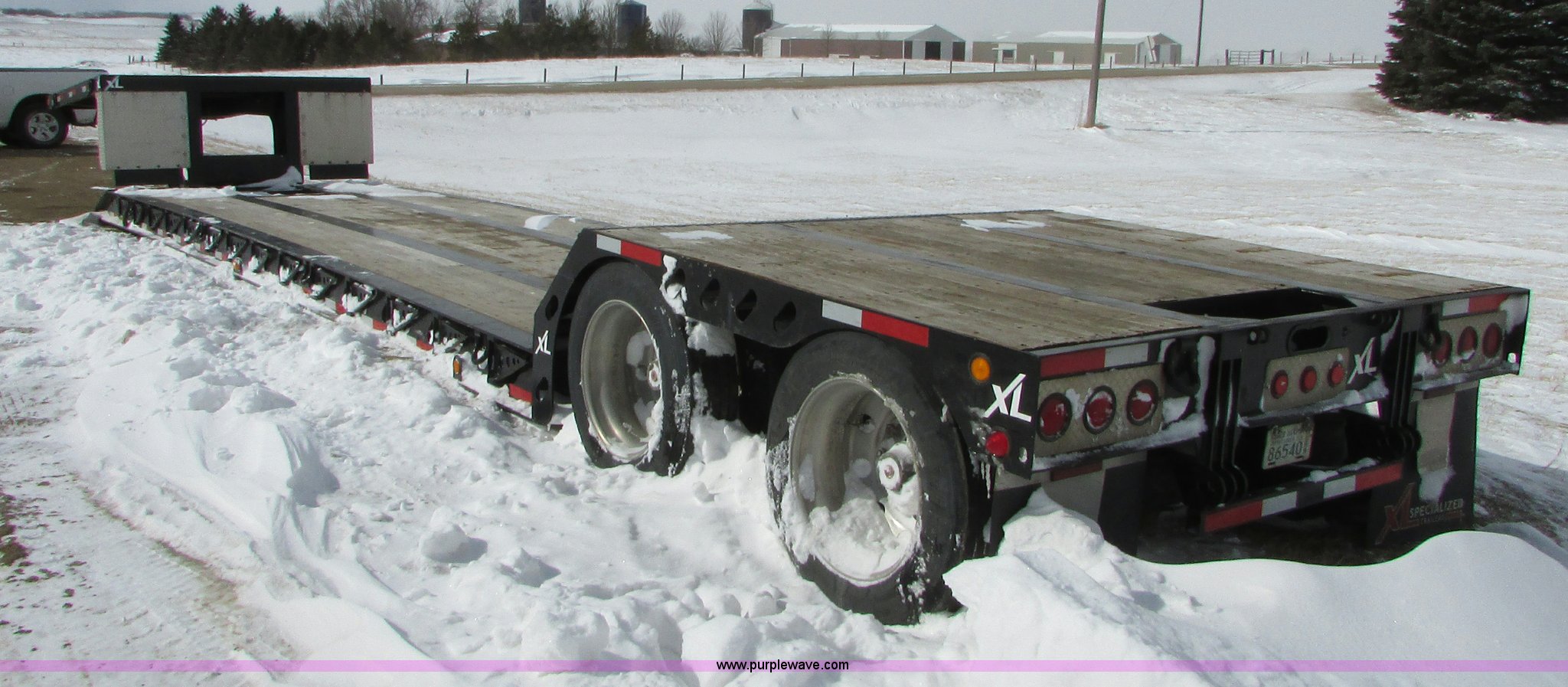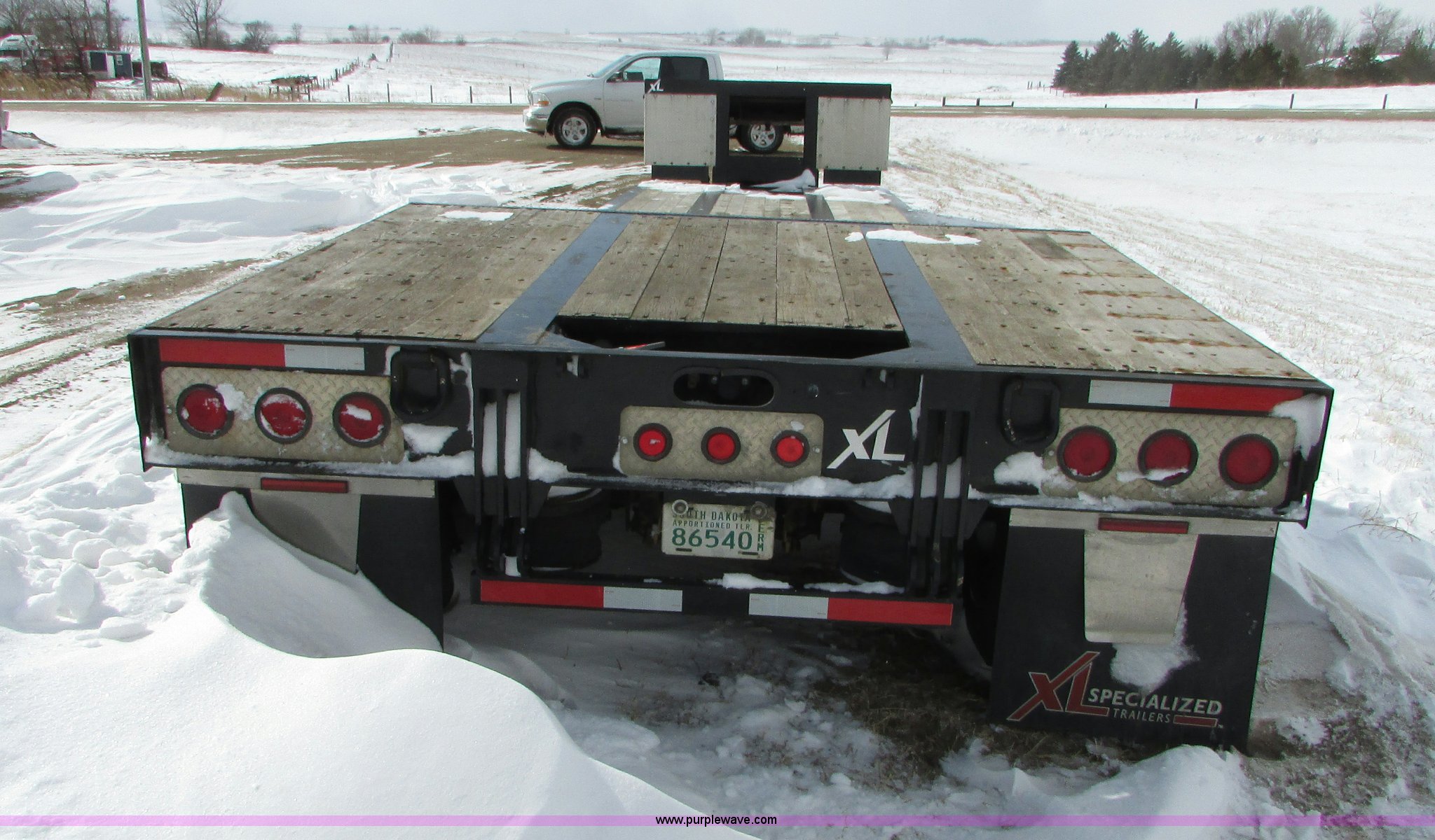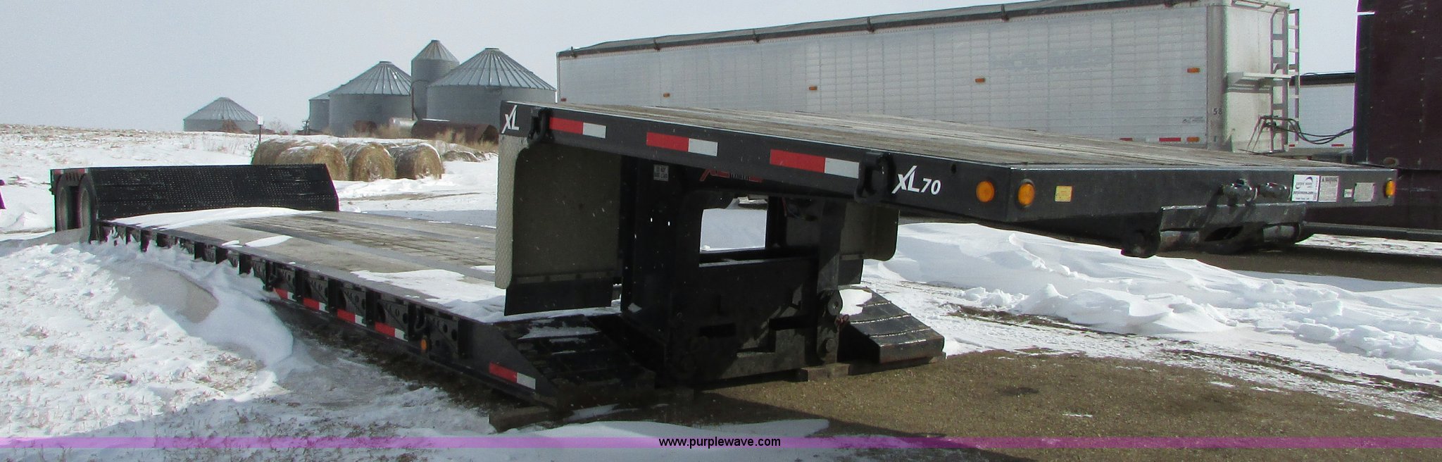 Purple Wave is selling a used Equip. Trailer in South Dakota. This item is a 2004 XL Specialized XL 70 lowboy trailer with the following: 48' overall length, 10'L x 102"W top deck, 29'L x 102"W well, 9'L x 102"W rear deck, Deck extenders, D-ring tie downs, Mechanical detachable neck, Rear air and auxiliary hookups, Air suspension, Air brakes, 255/70R22.5 tires, GVWR 85,940 lbs, GAWR 20,280 lbs per axle, Fourth axle selling as item I6586