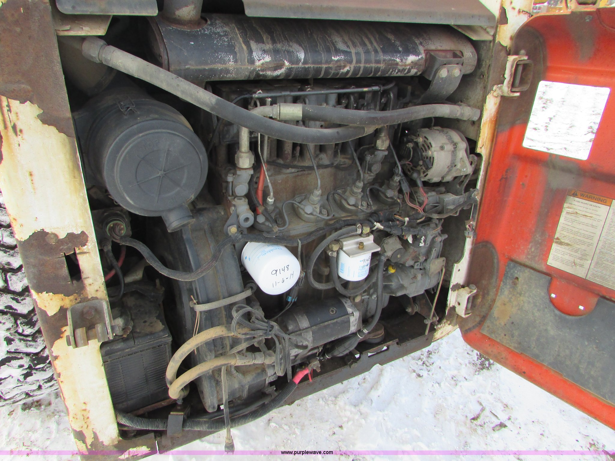 Purple Wave is selling a used Skid Steer Loader in South Dakota. This item is a 2000 Bobcat 863 skid steer with the following: 9,156 hours on meter, Kubota four cylinder diesel engine, 73 HP, Hydrostatic transmission, Enclosed cab, AC and heat, EMS panel, Hand and foot controls, Windshield wipers, Glow plugs, 68"W bucket, Weld-on cutting edge, High flow auxiliary hydrualics, Front work lights, 12-16.5 NHS tires, 7,045 lbs. base operating weight, Interior/exterior cosmetic damage, Serial 514441333