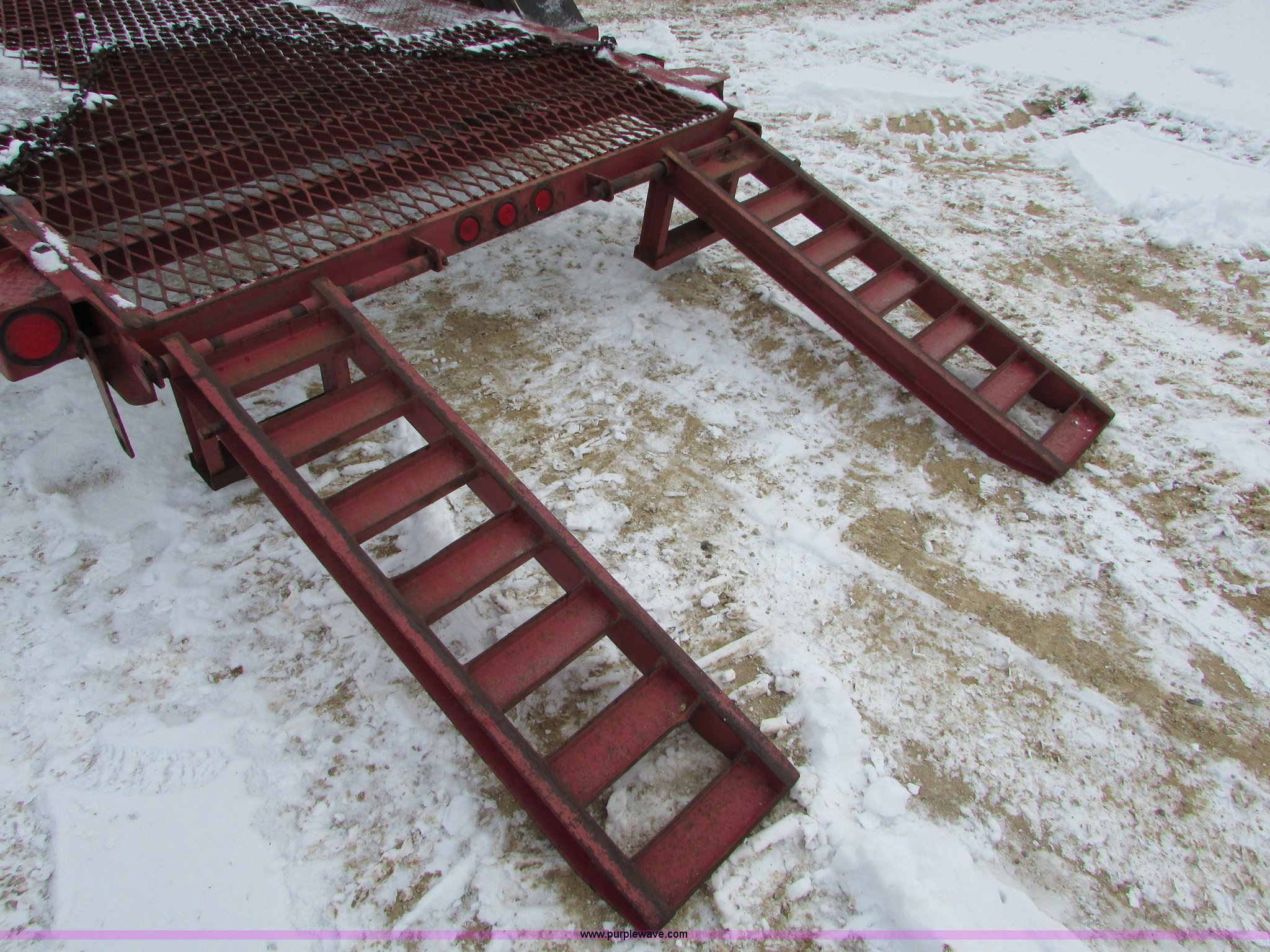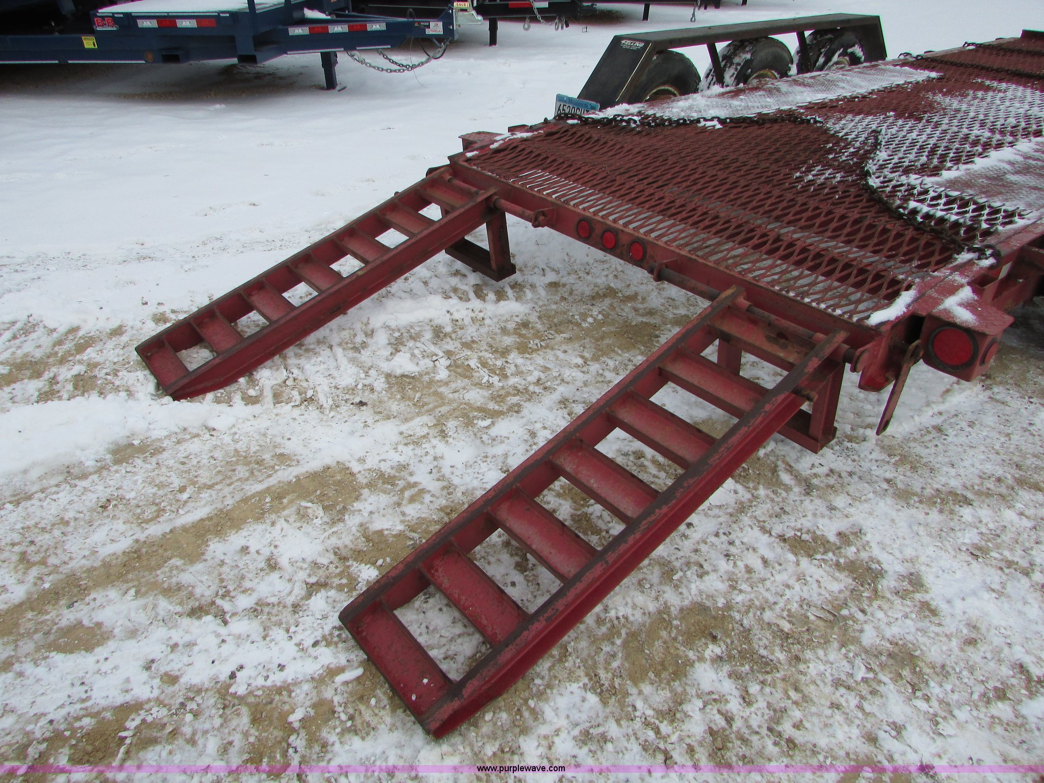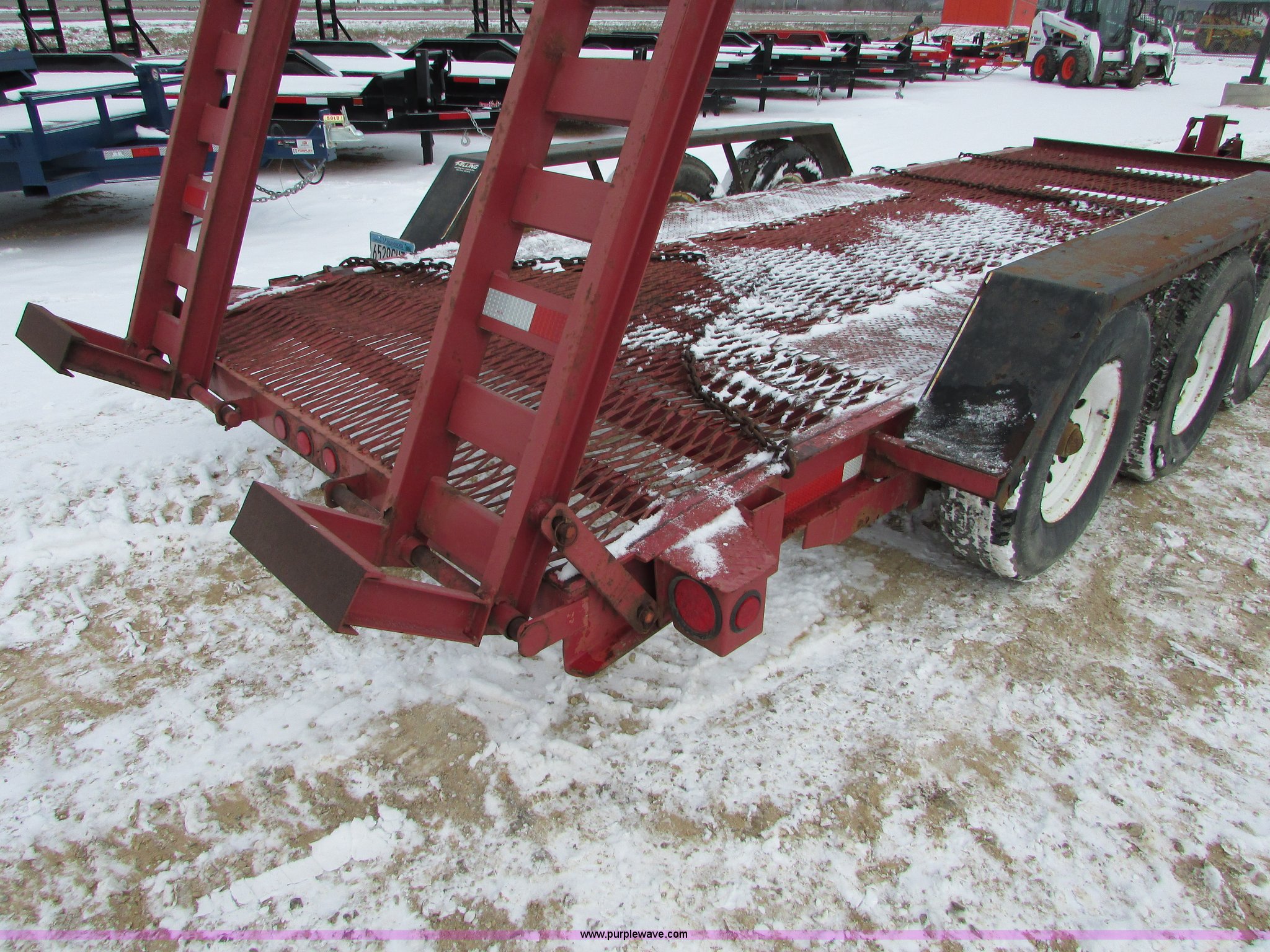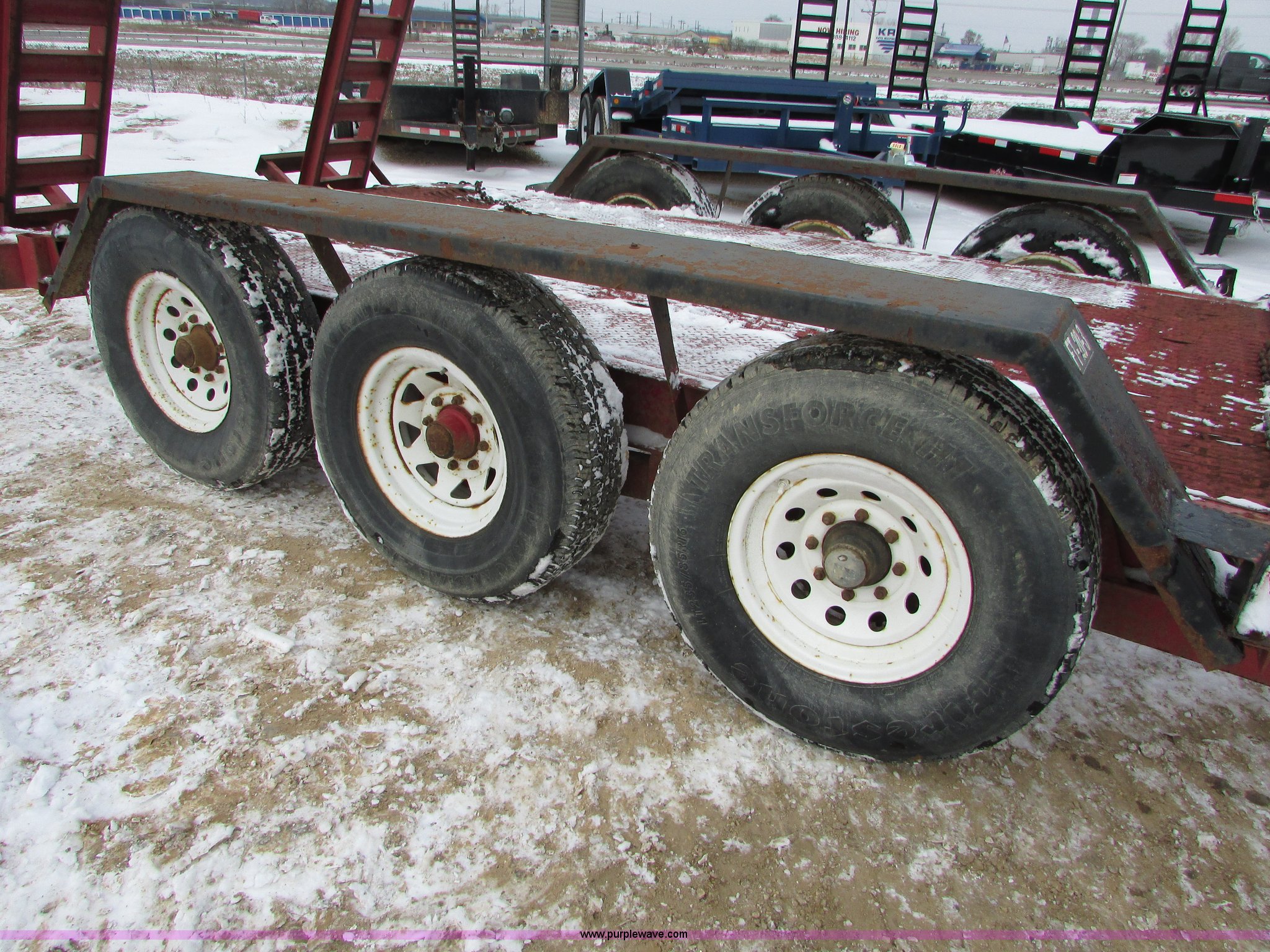 Purple Wave is selling a used Equip. Trailer in Minnesota. This item is a 1994 Felling FT-20-3 equipment trailer with the following: 18'L x 80"W deck, 2'L beavertail, Approximately 26'L x 103"W overall dimensions, 56"L x 15"W ramps, Stake side pockets, Fork holder, Jack stand, 2 5/16" ball hitch, Electric brakes, LT235/85R16 tires, GVWR 21,000 lbs, GAWR 6,000 lbs per axle