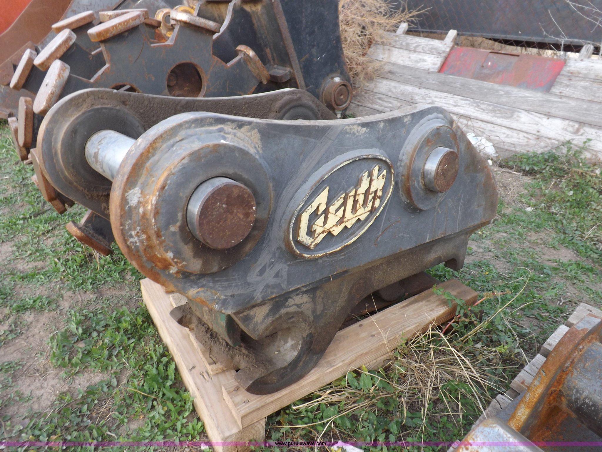 Purple Wave is selling a used Excavator Attach. in Kansas. This item is a Geith excavator quick coupler with the following: 3 1/4" pins, 18" on center
