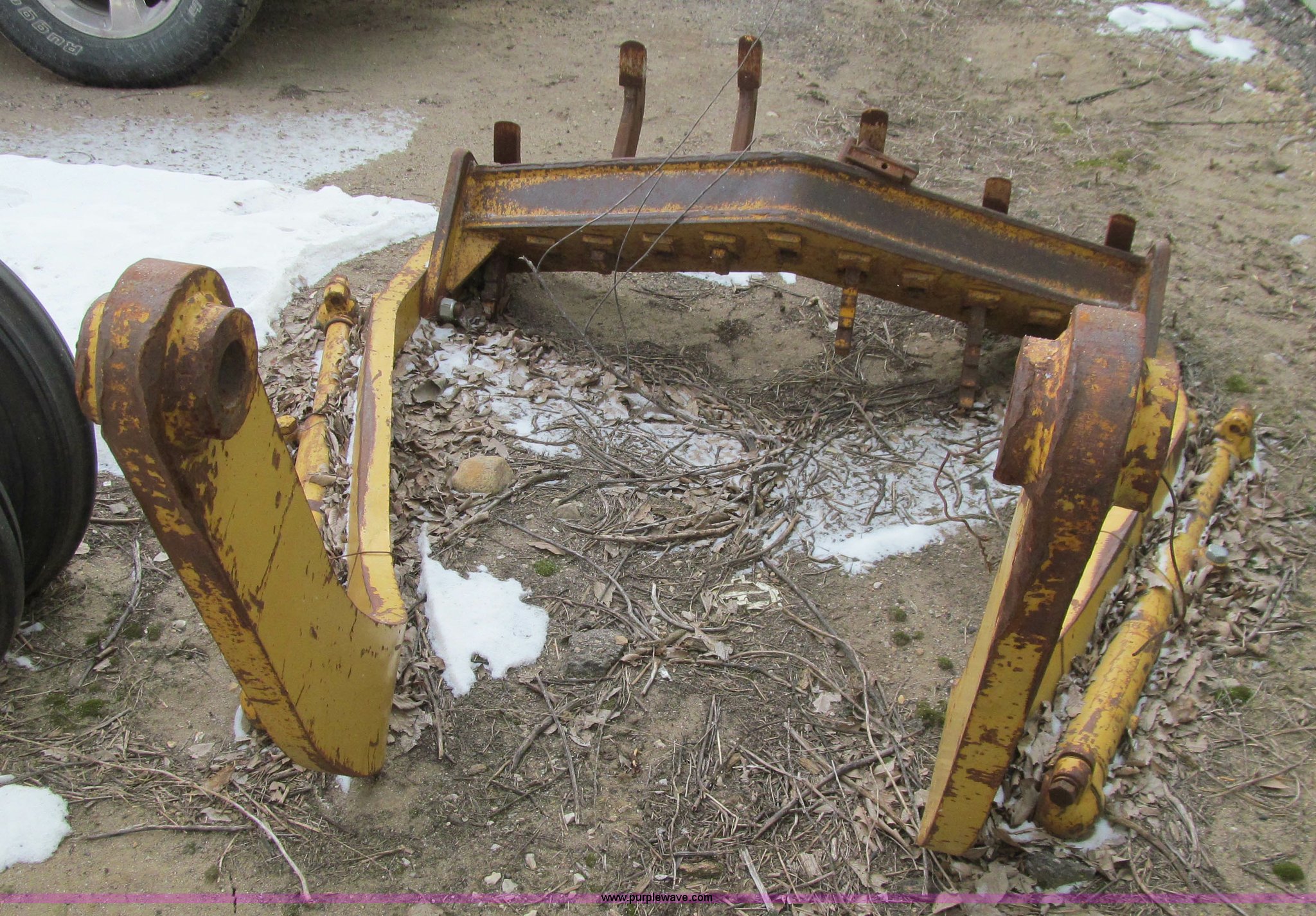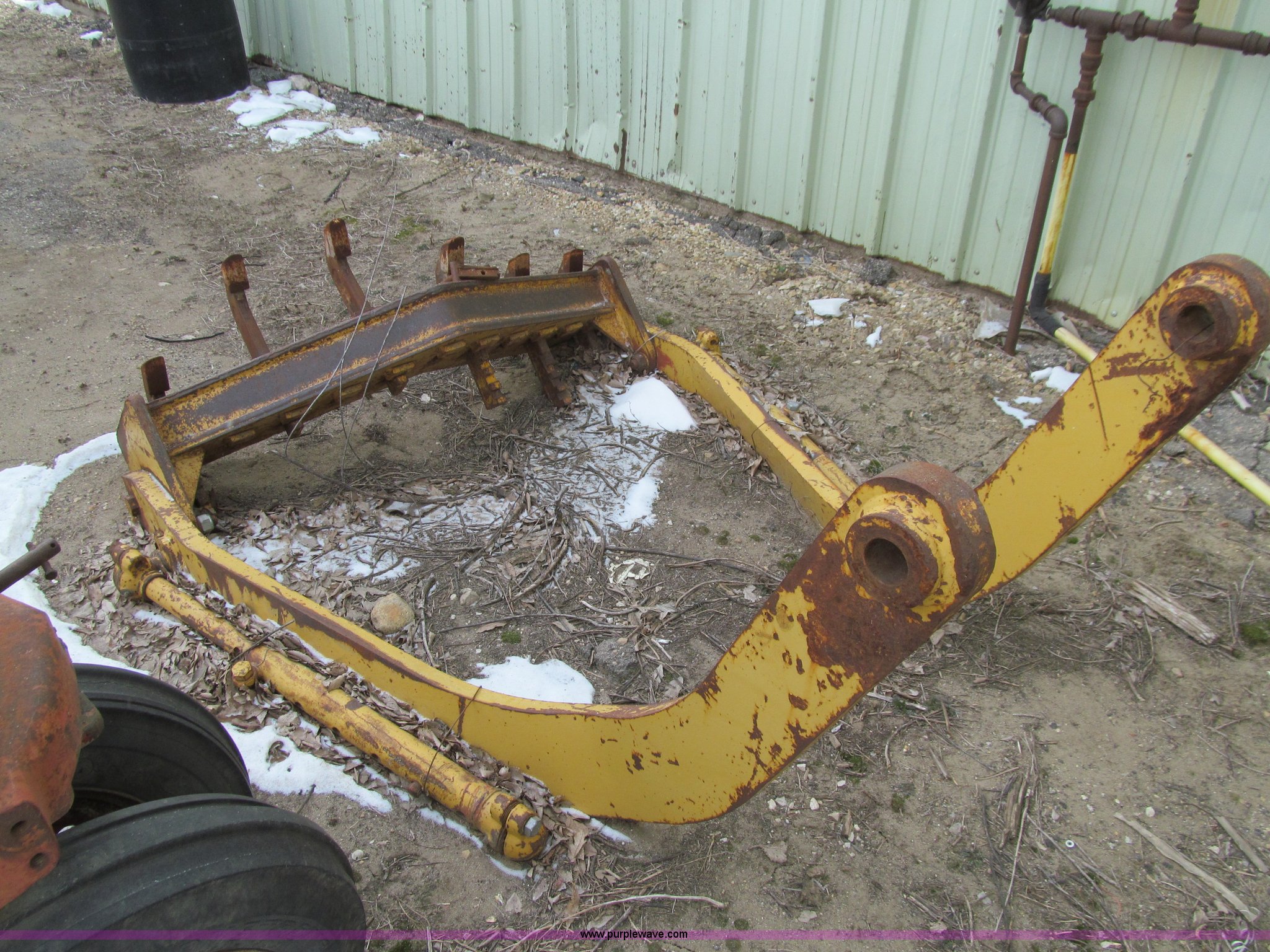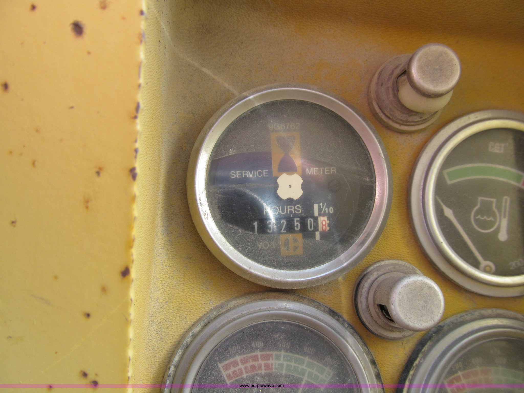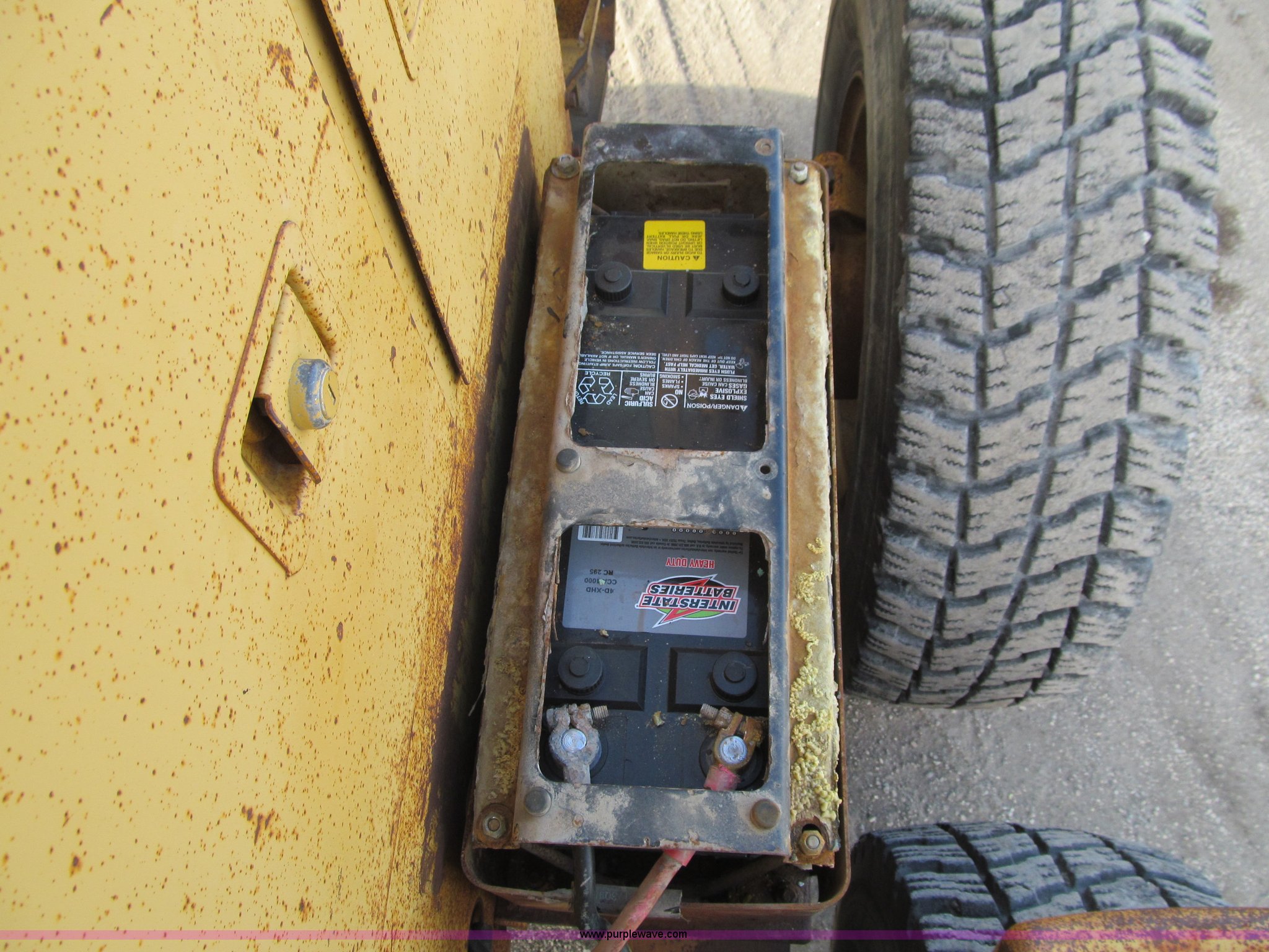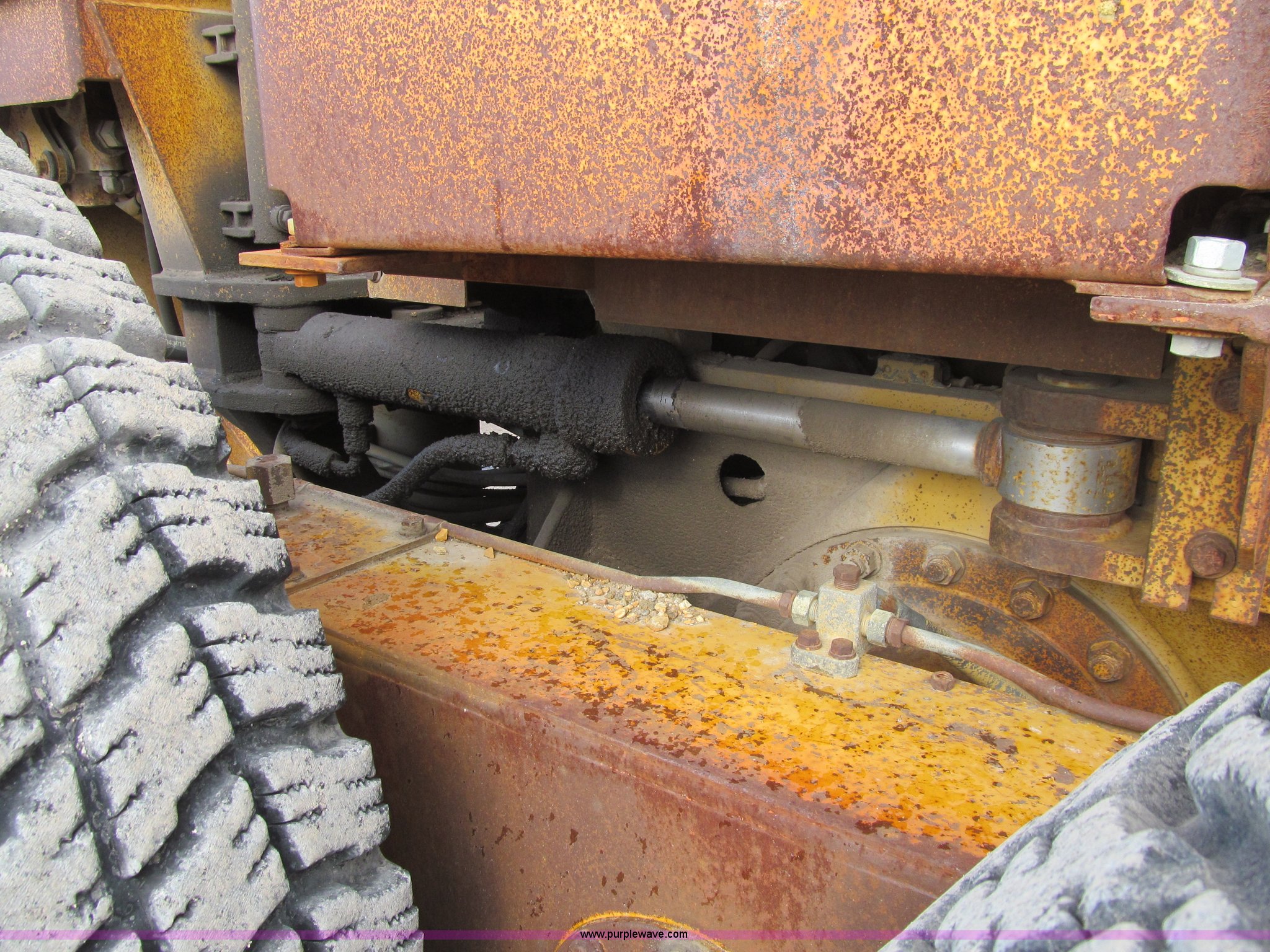 Purple Wave is selling a used Motor Grader in Iowa. This item is a 1984 Caterpillar 140G articulated motor grader with the following: 13,250 hours on meter, Caterpillar 3306 six cylinder turbo diesel engine, Powershift transmission, 6F-6R gears, EROPS, Heat, EMS panel, Suspension seat, High cab profile, Front work lights, Front and rear wipers, 12'W moldboard, Tip control, Side shift, Right and left moldboard bank slope, Mid-mount scarifier, (6) shanks, Unattached unit, 14.00-24 tires, 29,175 lbs. base operating weight, Moldboard lift cylinders seeping, Cab entry step bent, Door glass cracked, Headliner loose, Serial 72V07232