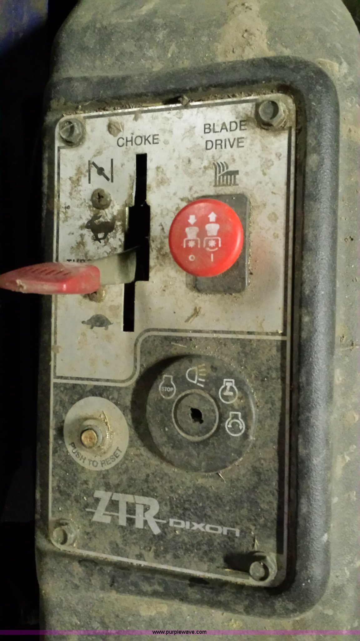 Purple Wave is selling a used Lawn Mower in Missouri. This item is a Dixon Speed 42 ZTR lawn mower with the following: 42"W deck, Briggs & Stratton gas engine, 16.5 HP, Electric start, Hydrostatic transmission, Serial 064900049